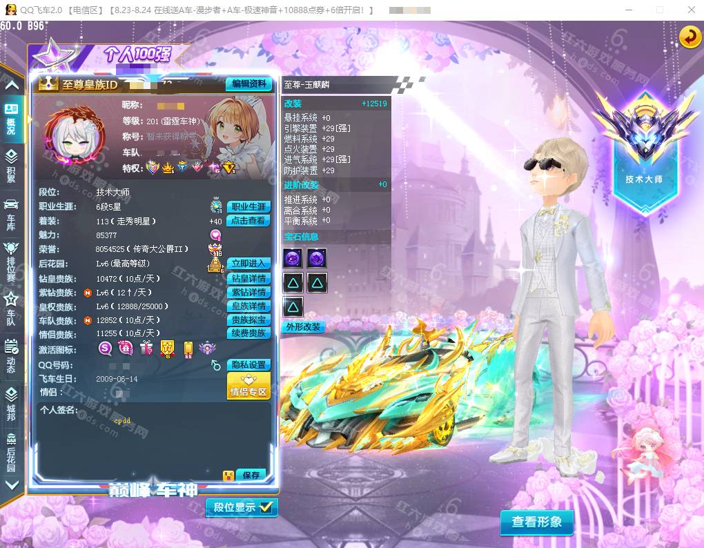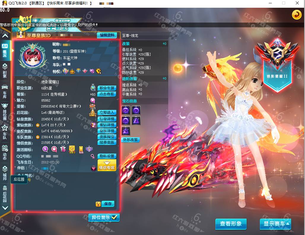 DS4303,红六更号裙762771576【电信一区】,一稀世明日之诗,红六自营,魅力8.8w,荣誉823W,紫钻6级,皇族6级,S车*10:双四至尊玉麒麟+29,三四至尊烛龙+29,双四爆天甲/曜影10阶+29,超核玩家雷蛇+29,终极迈凯伦/赵云,圣骑士Remake,T1*2:噬魂金甲,至尊青龙,A车*25:黄金雷诺,单四烛龙弄焰+29,蓐收雷诺,单四雷诺/幻夜3阶,骑宠5页:人鱼公主+10,甜心公主+8,喜羊羊+10,小兰仙+10,幻海之萤+10,仙兽白虎,小吕布+10,座椅3页,套装女30页:微光幻蝶/浪漫苏打/龙之传人/应龙驭风/烛龙弄焰/童梦嘉年华/空谷幽兰/赤炎战警,绮丽梦游发饰,套装男66页:浪漫苏打/赤霞相思/龙之传人/熊猫警探/璀璨星芒/青龙占星/冰夷踏浪/应龙驭风/烛龙弄焰/微光幻蝶/甜心喵喵/梅染琼枝/童梦嘉年华/冰雪幻想/空谷幽兰/碧海星梦/游园惊梦/澜莲百媚/苍穹麒麟/冰河一梦/山海冬神/赤炎战警/星海祈愿发饰,金玉良缘发饰,15950R,