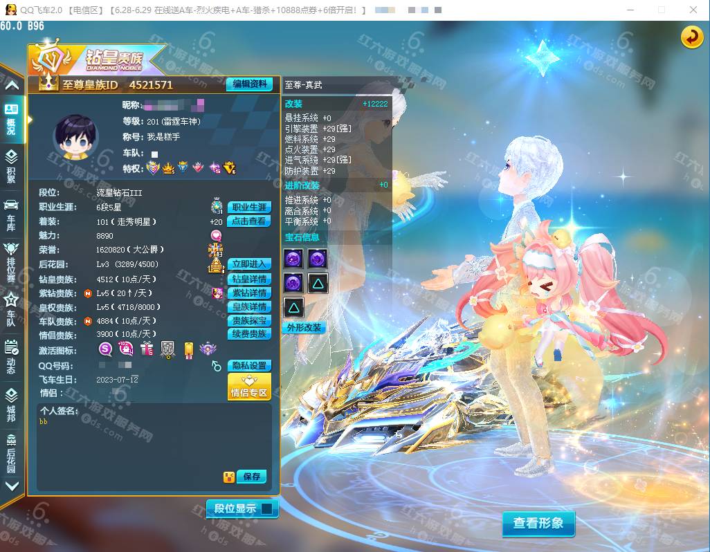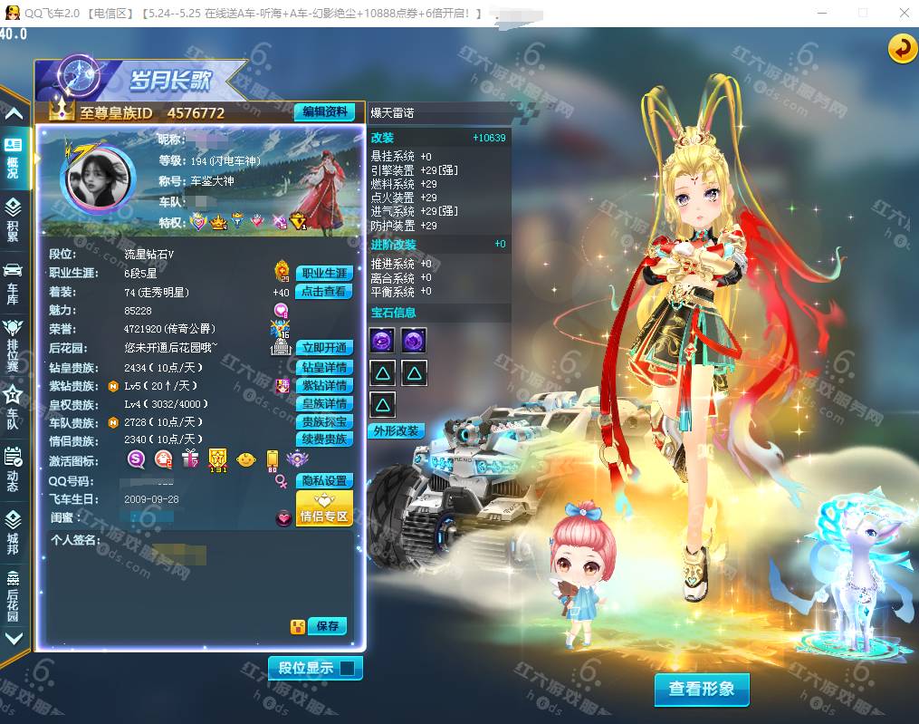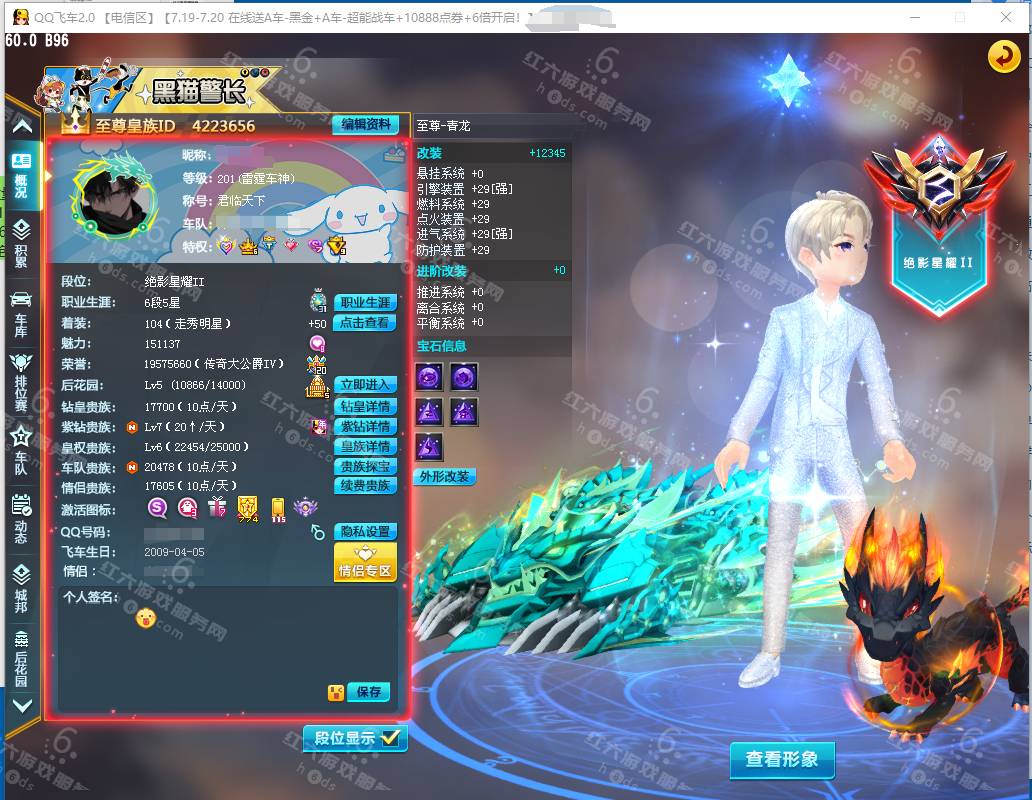 F15827,红六更号裙762771576【电信一区】魅力8890,荣誉162w,紫钻5级,皇族5级,蛇年限定S:三四至尊玄冥/真武+29,众神之神,A车:雷诺/幻夜3级/弑神1阶+29,座椅3个,骑宠:甜心公主+10,幻海之萤+10/人鱼公主+8/喜羊羊,套装女24页,璀璨星芒/悠悠鹿灵/凌霄齐天/应龙驭风/微光幻蝶,套装男32页,金玉良缘发饰/璀璨星芒/应龙驭风/微光幻蝶/凌霄齐天/夜月流星,10999R,