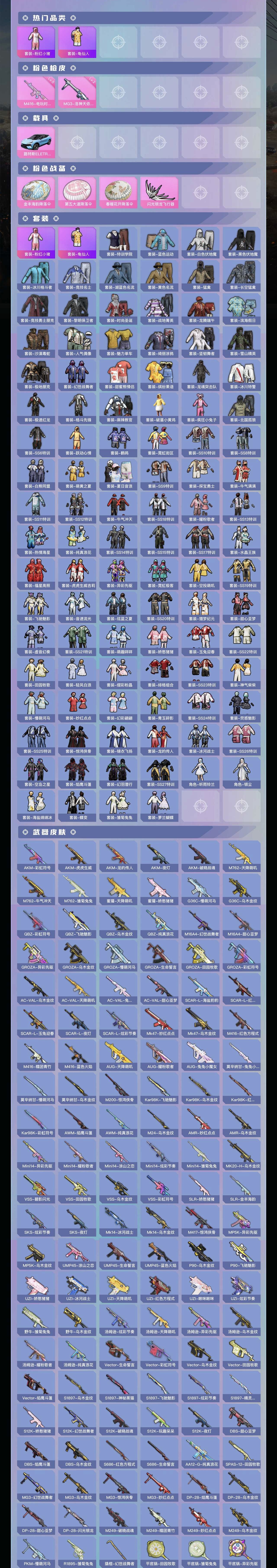 PX_2304828-,苹果微信-7王牌印记-17粉装-6特效枪-2载具-58473热力值-125套装-142枪皮 【17粉装】套装-雪国幻梦,套装-未来歌姬,套装-梦幻火箭,套装-纯珍童话,套装-天使彩虹糖,套装-宝贝奶油派,角色-月影灵韵,套装-创世·救赎,套装-金曜白虎,角色-天鹅座,冰河,套装-缤纷油彩,套装-新星烈龙,角色-初号机款机体服,套装-怪诞乔克,套装-黄族统领,角色-洛天依,套装-甜心巧克力 【6特效枪】Kar98K-巳巳如意/5级,M416-五爪金龙/7级,MG3-洛神天依/7级,DP-28-豹影疾电/5级,DP-28-圣堂之誓/7级,SCAR-L-纯梦嫁纱/7级 【13稀有紫装】都市猎人,派对舞王,寒蝎幽灵,赤蝎幽灵,天网终结者,萌熊伴侣背包(3级),奇异狩猎者,暗影哥特,深海小丑鱼,浪漫天命,明日香款战斗服,龟仙人,零款战斗服 【2稀有载具】仰望U9(赤霞丹朱),合金龙骨(蓝) 【125稀有时装】雪国幻梦,梦幻火箭,初号机款机体服,怪诞乔克,甜心巧克力,宝贝奶油派,天使彩虹糖,缤纷油彩,新星烈龙,洛天依,天鹅座,冰河,SS35特训,SS31特训,SS33特训,SS32特训,恋语绒绒,星影赞美诗,SS34特训,大橘大利,喜羊羊,都市猎人,浪漫天命,寒蝎幽灵,奇异狩猎者,龟仙人,暗影哥特,深海小丑鱼,零款战斗服,明日香款战斗服,赤蝎幽灵,元气之梦,薄荷星砂,派对舞王,顶瓜瓜,天网终结者,金曜白虎,黄族统领,月影灵韵,未来歌姬,纯珍童话,创世·救赎,狂沙舞者,Alan,Walker,龙魂突击队,小熊娃娃,星途旅人,冰河战士,鱼渊荷华,俏兔智灵,SS30特训,燕燕于飞,战术大师,智谋强哥,雏菊兔兔,香桃花海,米开朗基罗,蝶变,巳巳如意,曼妙人鱼,SS28特训,白光莹,SS29特训,萝兰蝴蝶,贝斯之夜,焰鹰斗篷,湖雨初晴,源星混沌,纯白誓言,龙的传人,甜梦熊熊,果汁能量,白熊同盟,青玉碎影,红色运动,白色伏地魔,酷潮明星,绯格组合,涂山之恋,SS26特训,漫步者,空岛之星,热情海星,纯真浪花,竞技名士,长空猛禽,旭日情侣,六六大吉,惊鸿侠骨,魅力单车,春光漫游,贵族骑装,青涩时光,冰川特警,WiFi精灵,鹰眼刺客,冰冻风暴,幽夜迷踪,破蛋小黄鸡,快闪甜心,耀眼新星,坚韧舞者,淡雅花蕊,海岛探路者,霓虹街区,SS27特训,竞技角斗士,金戈铁马,晨曦薄雾,弄潮海豚,呆萌铁蟹,缤纷果语,莱茵河畔,天籁歌者,电音精灵,神气柴柴,幻羽潜行,海盐绵绵冰,老实芭蕉,冷血极客,荣耀,SS24特训,懵萌河马,SS25特训,锦衣飞扬,恶魔人蛛 【142稀有枪械】QBZ-纯真浪花,AWM-纯真浪花,汤姆逊-纯真浪花,DBS-乌木金纹,AA12-G-纯真浪花,平底锅-纯真浪花,SCAR-L-海盐豹豹,GROZA-海盐豹豹,Kar98K-巳巳如意/5级,DP-28-豹影疾电/5级,SLR-金丰海韵,野牛-雏菊兔兔,Mk14-冰河战士,平底锅-雏菊兔兔,M762-雏菊兔兔,Mini14-雏菊兔兔,R1895-雏菊兔兔,M416-极冰使者,M249-金丰海韵,UZI-冰河战士,M16A4-冰河战士,MK20-H-乌木金纹,M416-五爪金龙/7级,SCAR-L-纯梦嫁纱/7级,DP-28-圣堂之誓/7级,MG3-洛神天依/7级,Win94-乌木金纹,蜜獾-乌木金纹,MK20-H-狂鲨锋刃,铝热弹-炫彩糖果,UZI-炫彩糖果,UMP45-海盐豹豹,AKS-74U-乌木金纹,爆炸猎弓-喜羊羊与灰太狼,Famas-乌木金纹,Famas-霓彩脉冲,破片手榴弹-拽到爆炸,DBS-荧海星豚,SLR-霓彩脉冲,SCAR-L-彩虹符号,S12K-霓彩脉冲,AKM-霓彩脉冲,M416-糯团青竹,AKM-影袭,AKM-龙的传人,AKM-2P战斗服款,AKM-霓虹街区,GROZA-春暖花开,GROZA-影袭,GROZA-懵萌河马,AUG-甜蜜菠萝,AUG-2P战斗服款,AUG-终结者,AUG-天降萌叽,QBZ-洛神天依,QBZ-未来歌姬,M762-甜心宝贝,Mk47-百万伏特,Mk47-洛神天依,G36C-懵萌河马,G36C-古战神甲,AC-VAL-快闪甜心,AC-VAL-乌木金纹,蜜獾-天降萌叽,蜜獾-千面幻镜,Famas-璀璨流光,Kar98K-洛神天依,Kar98K-彩虹符号,Kar98K-影袭,M24-影袭,AWM-圣堂之誓,AWM-焰鹰斗篷,莫辛纳甘-乌木金纹,莫辛纳甘-懵萌河马,AMR-乌木金纹,M200-惊鸿侠骨,Mini14-梦幻火箭,Mini14-涂山之恋,Mini14-彩虹嘻嘻猴,Mk14-童趣迷兔,M417-惊鸿侠骨,MK20-H-快闪甜心,UZI-影袭,UZI-啾咪啾咪,UMP45-涂山之恋,UMP45-炫光之旅,Vector-生命誓言,Vector-焰鹰斗篷,汤姆逊-天降萌叽,野牛-天星战神,MP5K-乌木金纹,P90-乌木金纹,P90-快闪甜心,P90-玩趣呆呆,S686-白勺歌姬,S686-生命誓言,S686-终结者,S1897-百万伏特,S12K-玩趣呆呆,DBS-焰鹰斗篷,DBS-第五大道,DBS-彩虹符号,DBS-圣堂之誓,AA12-G-萌物绒绒,M249-彩虹符号,M249-百万伏特,M249-诡夜天鹅,DP-28-甜心宝贝,DP-28-焰鹰斗篷,MG3-惊鸿侠骨,MG3-第五大道,PKM-懵萌河马,P18C-百万伏特,沙漠之鹰-快闪甜心,平底锅-惊鸿侠骨,平底锅-空岛之星,平底锅-懵萌河马,平底锅-甜心宝贝,平底锅-快闪甜心,平底锅-终结者,平底锅-焰鹰斗篷,撬棍-Alan,Walker潮音版,撬棍-甜心宝贝,爆炸猎弓-惊鸿侠骨,破片手榴弹-呆爆全场,沙漠之鹰-未来领航者,M16A4-千金淑猫,AUG-异域银装,野牛-燕燕于飞,M200-乌木金纹,SPAS-12-燕燕于飞,蝎式手枪-燕燕于飞,SCAR-L-星途旅人,SPAS-12-乌木金纹,Vector-燕燕于飞,十字弩-燕燕于飞,SCAR-L-净心行者,平底锅-时空协奏,破片手榴弹-星途旅人,VSS-香桃花海,Mini14-香桃花海,P90-巳巳如意 【2稀有飞行器】空岛之星尾迹,公主华盖飞行器 【40稀有背包】雪国精灵背包(3级),百万伏特背包(3级),海盐豹豹背包(3级),纯真浪花背包(3级),创世・救赎背包(3级),精灵梦叶罗丽背包(3级),懵萌河马背包(3级),林间仙鹿背包(3级),狂鲨锋刃背包(3级),炫彩糖果背包(3级),萌熊伴侣背包(3级),薄荷星砂背包(3级),巳巳如意背包(3级),金丰海韵背包(3级),极冰使者背包(3级),龟仙人龟壳背包(3级),赤蝎幽灵背包(3级),沙丘之主背包(3级),焰鹰斗篷背包(3级),甜心宝贝背包(3级),快闪甜心背包(3级),