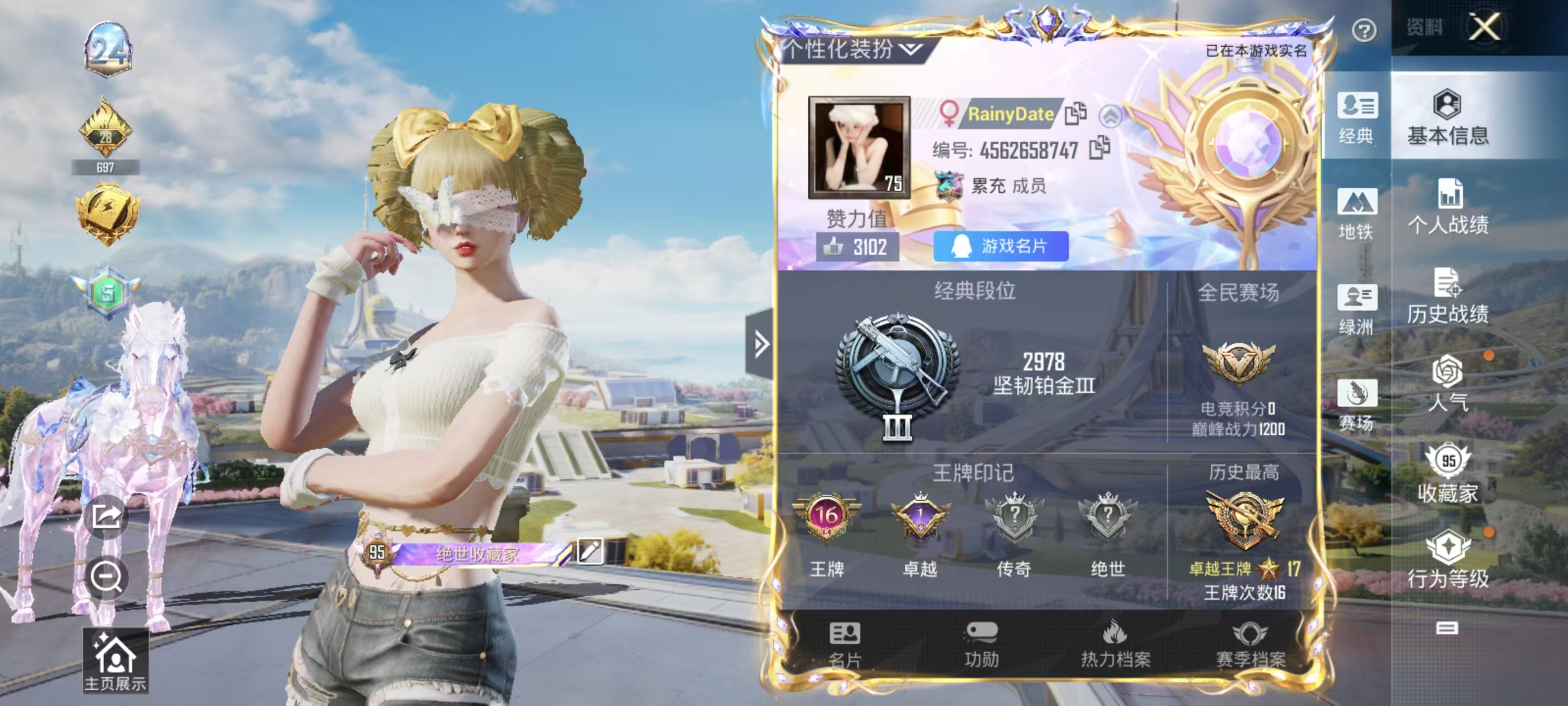 PX_2118849-(可二次实名),苹果Q-111549热力值,15王牌印记,历史无敌战神,(ss33战神框,4,4,4,印记地铁满天赋,4级红装瑞拉,露米娜,欧若拉,云鸾,羊梦糖心-暖熊萌萌,缤纷油彩,馨动时刻,小番茄,小狗玩偶服晶辉守护,飞行器巨多)184套装,270枪皮,【1载具】,星梦玉骢,【4神装】,圣域龙灵-瑞拉,(4级),盛世惊鸿-云鸾,(1级),精灵之光-露米娜,(1级),镜域双华-欧若拉,(1级),【2稀有】,派对舞王,派对舞王(金靴子),【34粉装】,严莉莉,小蓝,美雪,电磁星,蜜语绒猫,暖暖奶龙,傲傲奶龙,宝贝奶油派,天使彩虹糖,脆鲨七海,烟云彩露,小叽联名款,彩虹独角兽,未来领航者,星梦奇缘,白勺歌姬,幻梦之森,镜光幻境,晶梦幻蝶,酣梦娃娃,幻彩电音,星月云朵,缤纷油彩,莲影清波,鸢尾晶梦,冰川幽秘,童趣迷兔,暖熊萌萌,甜梦小狐,馨动时刻,彩虹甜喵,冰川红玫,旋转彩虹,薄荷物语,【17特效枪】,M416-五爪金龙,(5级),SCAR-L-纯梦嫁纱,(7级),AKM-白勺歌姬,(4级),Kar98K-圣域龙灵,(3级),Kar98K-巳巳如意,(5级),SPAS-12-蜜语绒猫,(5级),DP-28-豹影疾电,(5级),AUG-星梦奇缘,(3级),Mk14-盛世惊鸿,(3级),AMR-鸢尾晶梦,(7级),M24-镜域双华,(3级),GROZA-精灵之光,(3级),GROZA-巴啦啦小魔仙,(1级),破片手榴弹-瓶中星球,(7级),破片手榴弹-粉粉猫爪,(1级),破片手榴弹-热量炸弹,(2级),烟雾弹-丁香清露,(5级),【7飞行器】,龙翔九天飞行器,梦幻火箭飞行器,幻海精灵飞行器,鎏金朋克飞行器,甜心首席飞行器,夜幕颂歌飞行器,镜光幻境飞行翼,【6热门】,Mark.06,龟仙人,红熊茄茄,爱崽白熊,暗夜契约,破蛋小黄鸡,【2头盔】,甜心宝贝头盔,花间之火头盔,【2背包】,梦幻火箭背包,甜心宝贝背包,营地ID:918499409,