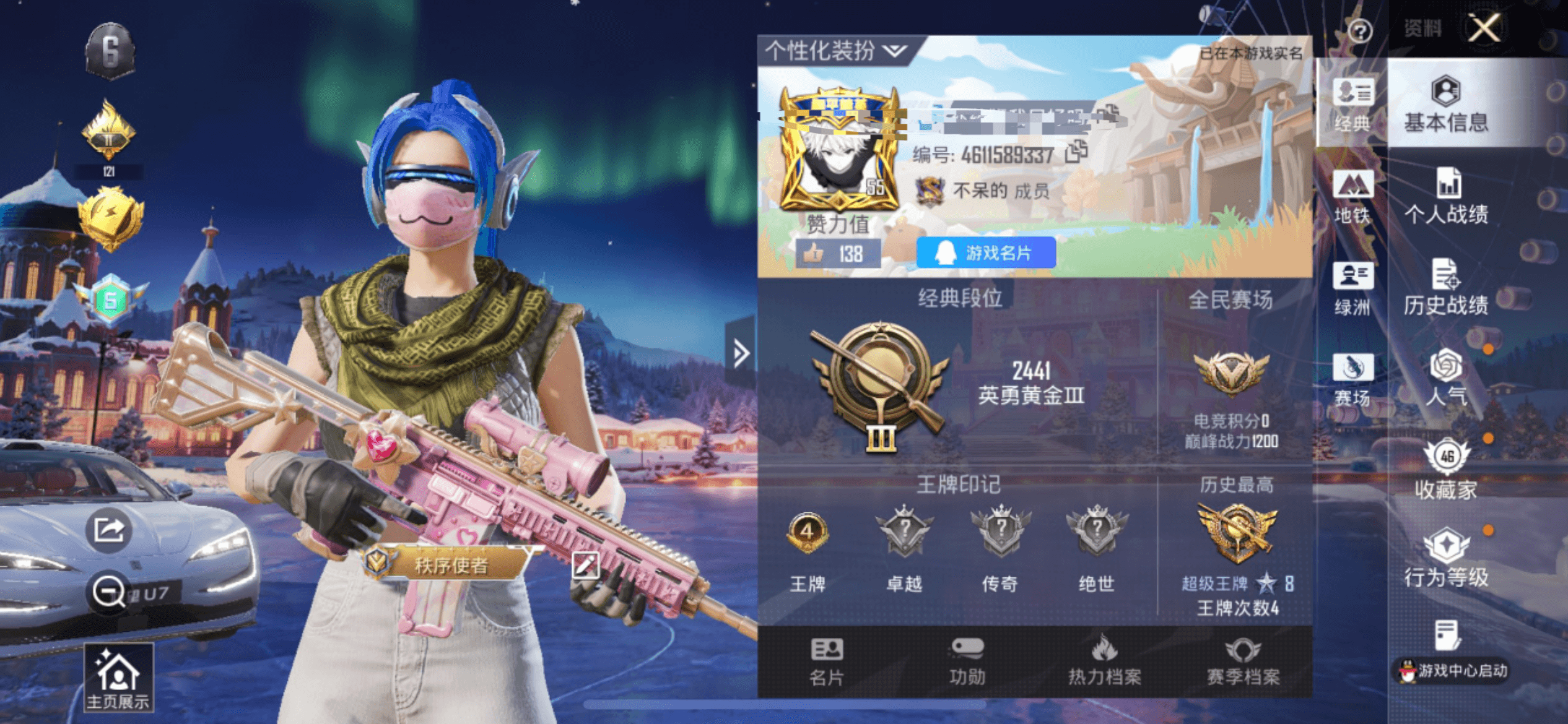 PX_2306834-实名:,不可修改,时装数:,529,载具数:,2,枪械数:,248,战备数:,170,热门装扮:,梦魇先生,洛天依,猪猪侠,萨利娅,载具:,宾利BATUR(极速紫),杜卡迪,Panigale,V4(杜卡迪红),稀有枪皮:,MG3洛神天依,AMR炫光之旅,SCAR-L-锦绣绵绵,UMP45量子极限,M762-青锋波束,GROZA-镜光银凌,Kar98K-巳巳如意,MK12-雪月幻音,DP-28-豹影疾电,MG-36-沧焰双生,亮点:,【,精品号手慢无】8王牌印记,67级收藏家,73888热力值,10粉枪,3粉装,载具宾利BATUR(极速紫),杜卡迪,Panigale,V4(杜卡迪红),2粉滑翔尾迹,12粉降落伞