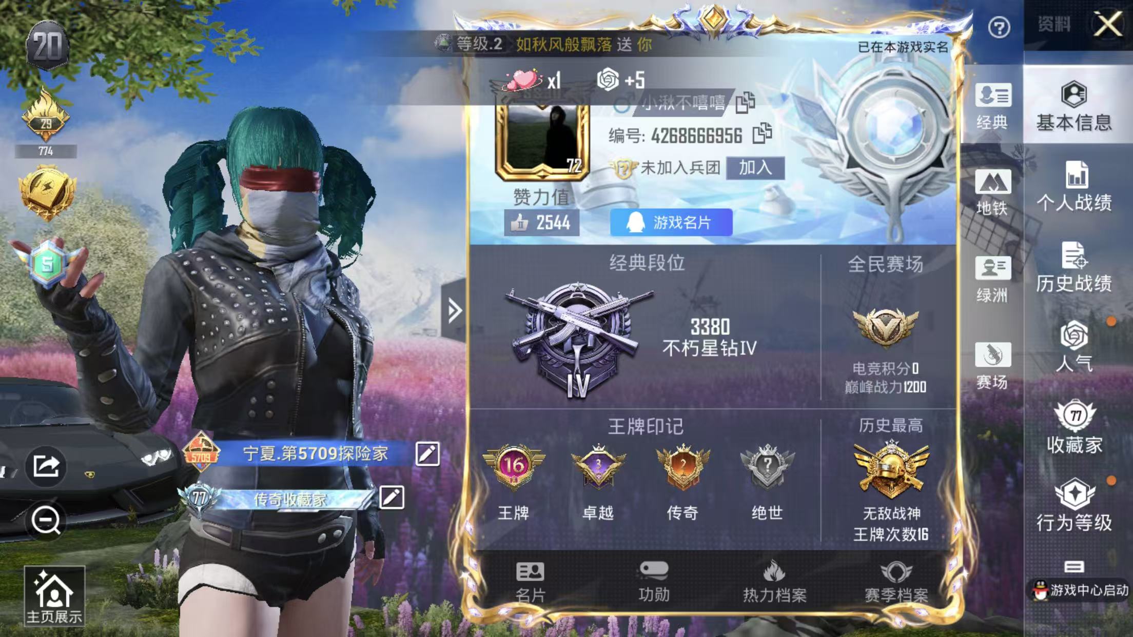 PX_2304191-奇异狩猎者,都市猎人,初号机,梦幻火箭,8号机,Mark.06,2稀有3载具14粉装10特效枪12热门146套装222枪皮,73868热力值,10印记,历史卓越王牌13星,【2稀有】奇异狩猎者,都市猎人,【3载具】宾利飞驰布罗德盖棕双色,疾风龙骑,鬼马风驰,【14粉装】觉醒初号机,梦幻火箭,小蓝,美雪,千金淑猫,金风玉露,金丰海韵,炫光之旅,金域紫灵,星空武士,第五大道,星之彼岸,赤焰黑爵,暗夜玫瑰,【10特效枪,SCAR-L-锦绣绵绵,(5级),M416-墨龙九天,(3级),M416-电玩时刻,(5级),AKM-绿萝繁花,(5级)Kar98K-巳巳如意,(5级),DP-28-豹影疾电,(5级),AMR-炫光之旅,(7级),GROZA-镜光银凌,(5级),AKM-梦之光华,(7级),破片手榴弹-粉粉猫爪,(7级),【12热门】,8号机,Mark.06,龟仙人,鹰眼刺客,迅捷狂鲨,深海小丑鱼,AG战队服,漫步者,英勇保护者,M762-奇异狩猎者,M24-奇异狩猎者,S686-奇异狩猎者,【5飞行器】,鎏金朋克飞行器,繁龙极客飞行器,镜光幻境飞行翼,黄族统领飞行器,全功率超战飞行器,【3头盔】,梦幻火箭头盔,金风玉露头盔,花间之火头盔,【4背包】,梦幻火箭背包,水曜玄武背包,金风玉露背包,花间之火背包,营地ID:949096291,"