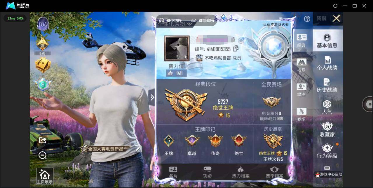 PX_2257165-实名:,可修改,时装数:,83,枪械数:,111,战备数:,66,热门装扮:,冰川红玫,冰川幽秘,圣堂之誓,烟云彩露,严莉莉,美雪,美琪,小蓝,稀有枪皮:,AKM绿萝繁花,M416电玩时刻,Kar98K-巳巳如意