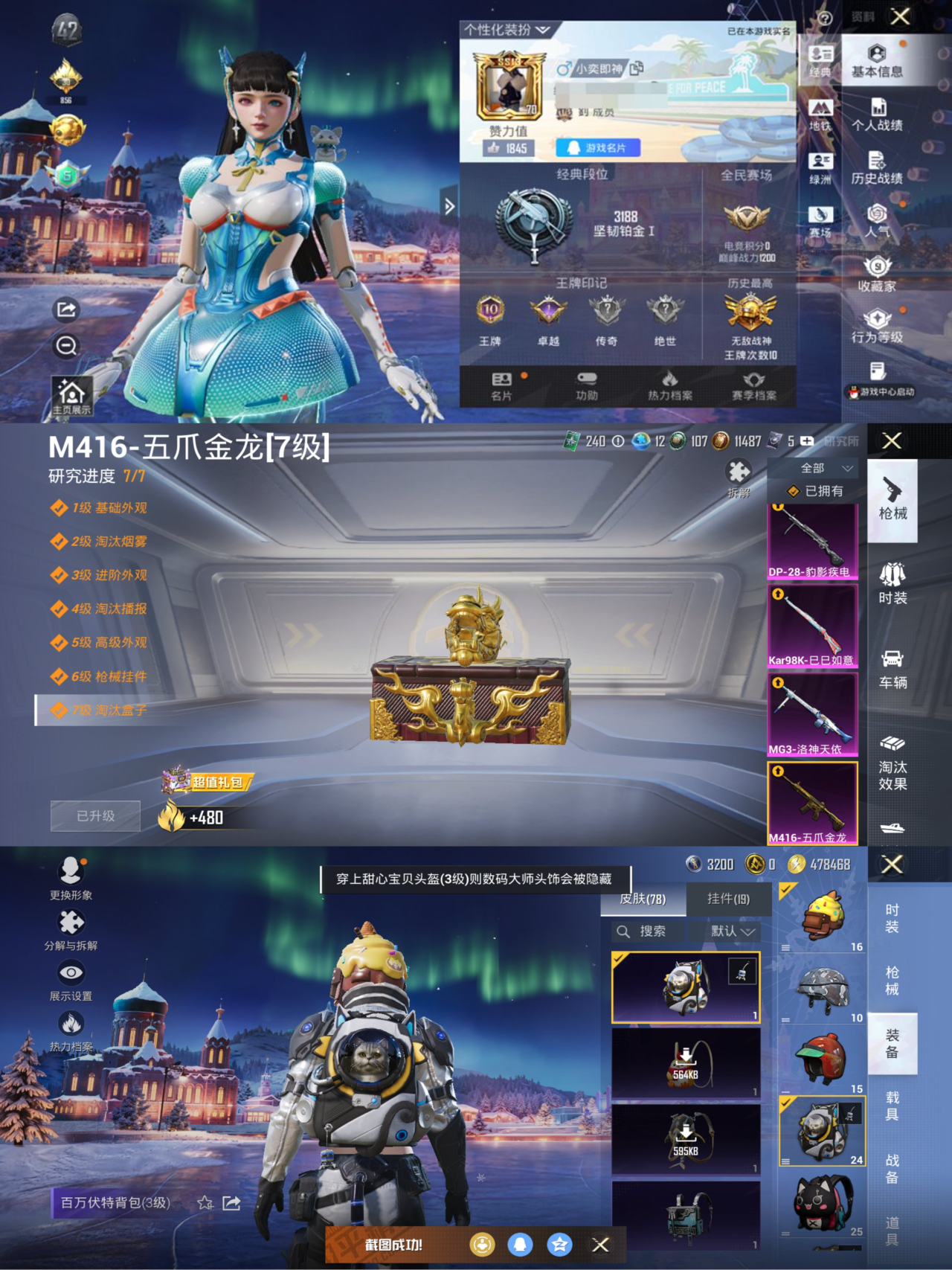 PX_2278161-1稀有8粉装7特效枪,14印记【1稀有】,浪漫天命,【8粉装】,美雪,天使彩虹糖,千金淑猫,异瞳寒姬,晶梦幻蝶,幻彩电音,莲影清波,新星烈龙,【7特效枪】,SCAR-L-锦绣绵绵,(5级),M416-电玩时刻,(5级),P90-金丰海韵,(7级),Kar98K-巳巳如意,(5级),DP-28-豹影疾电,(5级),AUG-暖羊咩咩,(5级),GROZA-镜光银凌,(5级),【6热门】,龟仙人,雪山精英,晶辉守护,糯粉咩咩,迅捷狂鲨,破蛋小黄鸡,【4飞行器】,梦幻火箭飞行器,花傲天飞行器,镜光幻境飞行翼,太空嘟嘟飞行器,【1头盔】,甜心宝贝头盔,【1背包】,甜心宝贝背包,营地ID:753286738