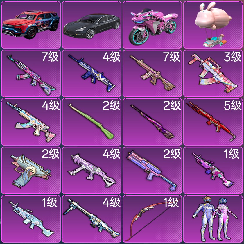 PX_2147270-力值,擎天重拳,特斯拉Model,3(冷光银),双人摩托-梦幻火箭,AKM-炫紫旋律,SCAR-L-青春物语,M416-心之恋语,GROZA-旋转彩虹,M762-甜心娃娃,Kar98K-绿意幻情,M24-暗星紫秘,Mini14-龙虾霸霸,UZI-筑梦精灵,UMP45-玉魂晶魄,野牛-流星咚咚,M249-蓝莓炮弹,M249-彩虹甜喵,MG3-洛神天依,爆炸猎弓-拳皇·狂花道,浪漫波比,梦幻火箭,金风玉露,蝶舞迷情,激萌罗小黑,天启纪元,王牌四分卫,深海曼妙,金属狂野,缤纷油彩,馨动时刻,极致幻想,独舞天鹅,彩虹鹿灵,山涧鹿灵,洛天依,骨龙祭渊,筑梦精灵,暗星紫秘,蓝莓炮弹,碧影闪光,精灵娃娃,酣梦娃娃,彩虹甜喵,旋转彩虹,金丰海韵df20-06编号:WPQVW16