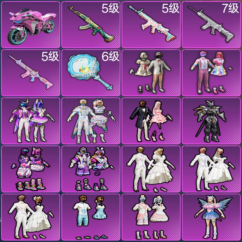 PX_2056337-精英,套装-宝贝奶油派,套装-天使彩虹糖,套装-极致幻想,套装-彩虹鹿灵,套装-蜜桃特工,套装-飓风飞鹰,套装-蓝莓炮弹,套装-闪耀律动,套装-纯珍童话,套装-心之回忆,套装-挚爱序曲,套装-仲夏莫吉托,套装-蜜语绒猫,套装-老实芭蕉,角色-电磁星,AKM-绿萝繁花,SCAR-L-锦绣绵绵,SCAR-L-纯梦嫁纱,M416-电玩时刻,平底锅-仲夏莫吉托,双人摩托-梦幻火箭,火焰蝠人飞行服,纯梦嫁纱飞行翼,星夜魔法师飞行翼64991043编号:SXS73