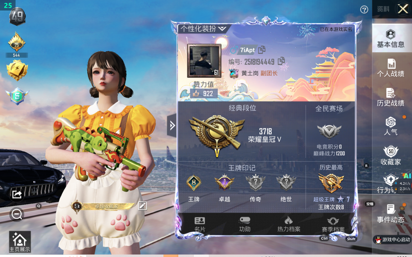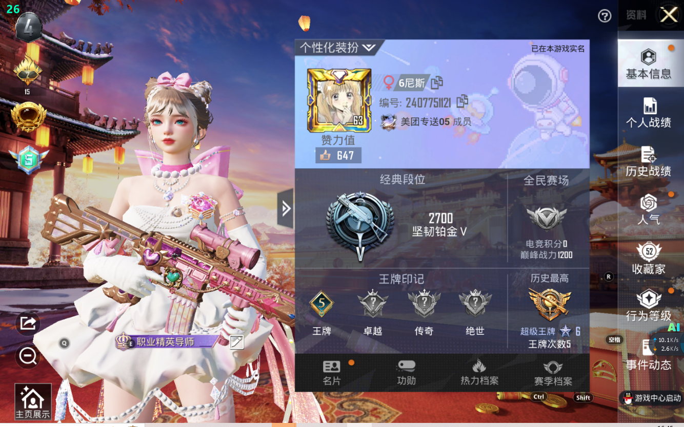 PX_1972281-,可二次,,,苹果Q-50346热力值,3王牌印记,历史卓越王牌11星,121套装,138枪皮,成都AG粉丝标,【极品公主素材号,粉丝logo,雪国,,火箭少女,觉醒螳螂,甜梦小狐,猪妹,彩虹独角兽,童趣迷兔,巧克力两姐妹,千金淑猫,奶龙,小黄鸭,小番茄,,金鞋,赤蝎,红眼罩,AG战队服,都市,AK幽焰骑士3级,,雪国头粉熊包,【2载具】,宝马M4(圣保罗黄),幽焰风驰摩托车,【8稀有】,赤蝎幽灵,AWM-黄金龙骨,M416-星际漫游,AKM-缤纷海域,都市猎人,浪漫天命,派对舞王,派对舞王(金靴子),【18粉装】,觉醒初号机,梦幻火箭,小蓝,雪国幻梦,憨憨奶龙,天使彩虹糖,甜心巧克力,千金淑猫,彩虹独角兽,冰域雷影,白勺歌姬,小可学妹,闲梦青缨,缤纷油彩,冰川幽秘,童趣迷兔,甜梦小狐,寒光使者,【9特效枪】,SCAR-L-梦幻火箭,(3级),SCAR-L-时空协奏,(6级),SCAR-L-锦绣绵绵,(5级),M416-电玩时刻,(5级),AKM-幽焰骑士,(3级),UMP45-宇宙意志,(3级),Kar98K-巳巳如意,(5级),UMP45-量子极限,(5级),汤姆逊-冰川粉黛,(5级),【3飞行器】,梦幻火箭飞行器,深渊漩涡飞行器,冰川粉黛飞行器,【17热门】,8号机,Mark.06,龟仙人,红熊茄茄,潮萌小黄鸭,呆萌铁蟹,鹰眼刺客,兔兔白日梦,奶芙汪汪,恶魔喵喵,迅捷狂鲨,AG战队服,暗影哥特,幽冥伯爵,漫步者,弄潮海豚,MK47-林间仙鹿,【4头盔】,梦幻火箭头盔,雪国精灵头盔,甜心宝贝头盔,深海小丑鱼头盔,【6背包】,梦幻火箭背包,雪国精灵背包,甜心宝贝背包,萌熊伴侣背包,深海小丑鱼背包,神秘黑猫背包,营地ID:954770379
