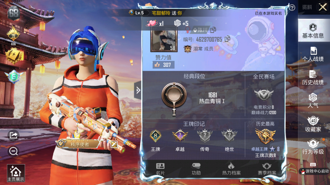 PX_1960281-可二次,等级51,72套装,102枪皮,3王牌印记,2卓越印记,历史8星,热力值28271,1粉4特效,满级满配M4电玩时刻,满级满配GROZA镜光银凌,满级满配AUG暖羊咩咩,满级满配98K巳巳如意,复仇流浪者,迅捷狂鲨,湖畔霞光,雏菊兔兔,萝兰蝴蝶,临安公主,焰鹰斗篷,幻羽潜行,明鸳圣池,白光莹,纯真浪花,热情海星,卖崽青蛙,破蛋小黄鸡,AK江南烟雨,2粉降落伞,30天特权卡