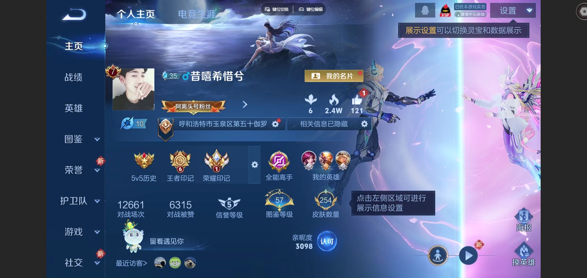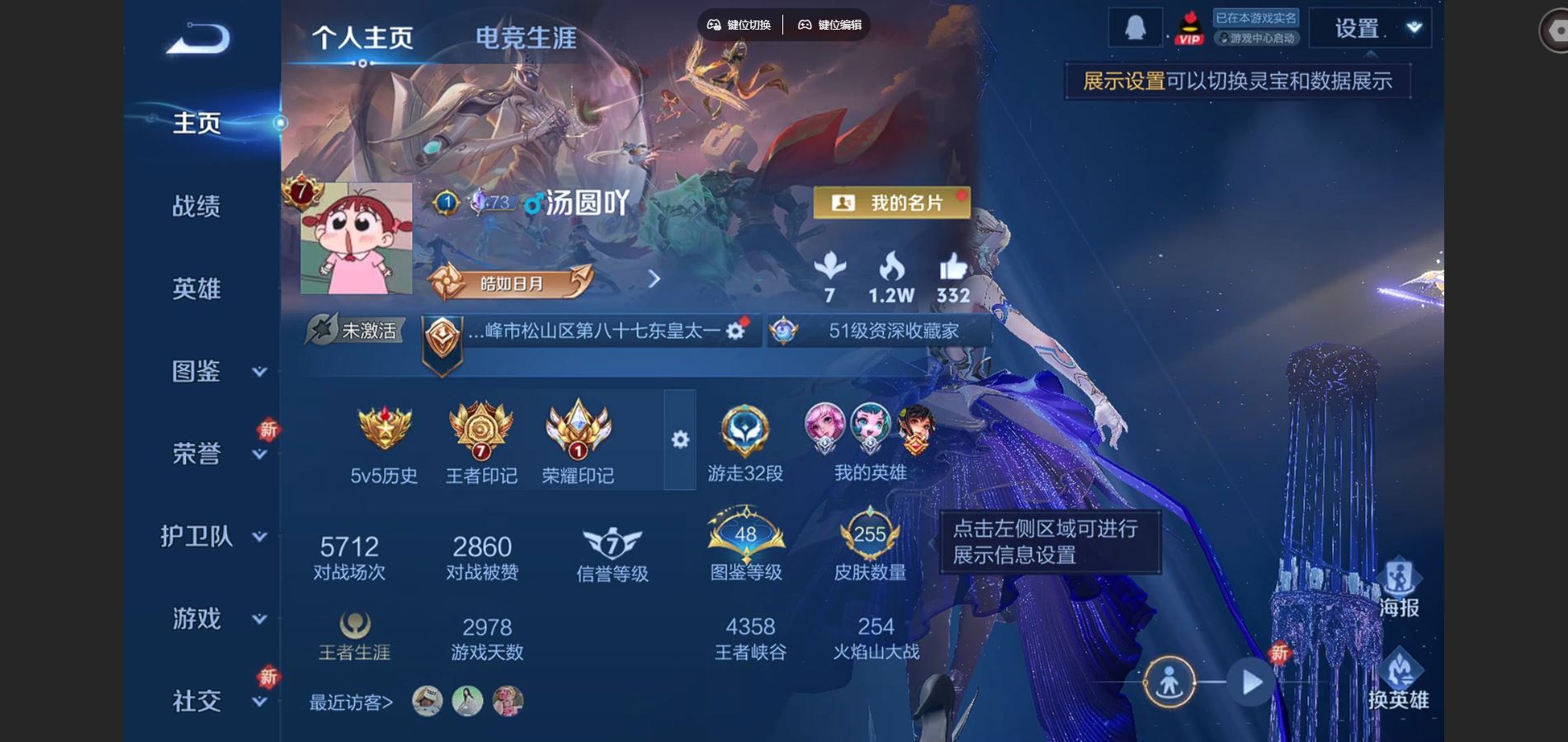 PX_2305908-实名:,可修改,贵族等级:,V8,英雄数:,127,皮肤数:,266,荣耀水晶:,鸣剑·曳影,神鉴启示录,无双皮:,天机白泽,珍品传说:,怪盗基德,时之奇旅-孙策,器灵·落星盏,大耳狗之梦,传说皮:,黄金狮子座,云鹰飞将,黄金白羊座,久胜战神,炽阳神光,地狱之眼,飞鸢探春,音你心动-周瑜,乞巧织情,游龙清影,淬星耀世,超时空战士-狄仁杰,花朝如约,鹤羽星尊,澜逐花归海,乘龙·问璇玑,乘龙·淬吴钩,铠冥王哈迪斯,幻光神枪,限定皮:,李小龙,神威,至尊宝,孙行者,深海之息,鸣野蒿,陌上桑,逐霄战戟,愿照·九州拓
