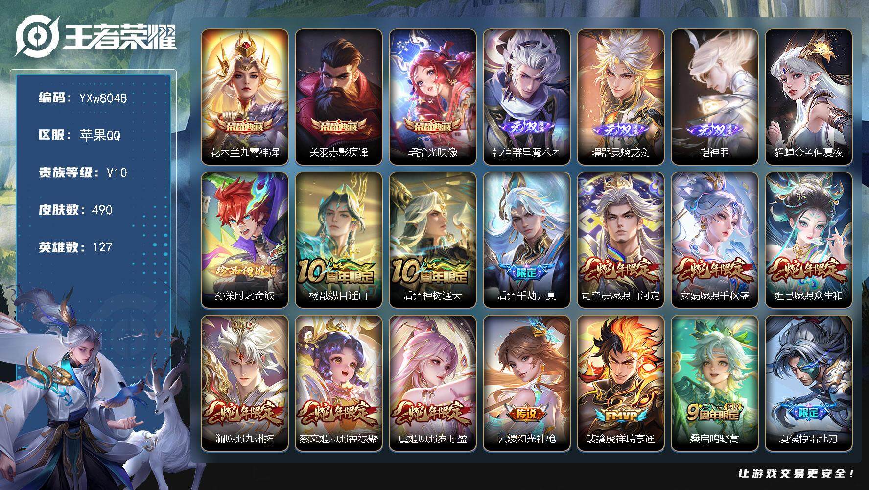 PX_2305526-??主推对抗路v10·3典藏·3无双·1珍品·71传·全皮关羽·全皮达摩·全皮李信·全皮马超·全皮曜·全皮澜·全皮司空震·全皮夏洛特·九霄神辉·韩信群星魔术团·器灵螭龙剑·神罪·孙策时之奇旅·凤鸣九霄天幕·满蛇年限定·满龙年限定·李逍遥·祈雪灵祝·霜北刀·冥王哈迪斯·夜礼服假面·寅虎赤拳·至尊宝·22款年限·可二次】YXw8048-苹果Q-127英雄-490皮肤-9王者印记-300铭文-贵族积分24w【贵族10】【v10·3典藏·3无双·1珍品·1星传说·71传说·2天幕·31按键】【因赛季更新游戏段付以上号为准!】 【英雄全皮】:达摩全皮,关羽全皮,孙权全皮,鬼谷子全皮,黄忠全皮,李信全皮,马超全皮,曜全皮,蒙恬全皮,澜全皮,夏洛特全皮,司空震全皮,赵怀真全皮,莱西奥全皮,戈娅全皮,空空儿全皮,影全皮,海诺全皮 【荣耀典藏】:花木兰九霄神辉,关羽赤影疾锋,瑶拾光映像 【无双皮肤】:韩信群星魔术团,曜器灵螭龙剑,铠神罪 【珍品传说】:孙策时之奇旅 【星元皮肤】:貂蝉金色仲夏夜 【天幕】:凤鸣九霄天幕,共赏芳华天幕 【传说皮肤】:杨戬纵目迁山,后羿神树通天,后羿千劫归真,司空震愿照山河定,女娲愿照千秋盛,妲己愿照众生和,澜愿照九州拓,蔡文姬愿照福禄聚,虞姬愿照岁时盈,云缨幻光神枪,裴擒虎祥瑞亨通,桑启鸣野蒿,夏侯惇霜北刀,铠冥王哈迪斯,朵莉亚心动手记,云中君群星魔术团,墨子黄金天蝎座,亚连落雪白狼,吕布曦玄引,孙尚香乘龙问璇玑,孙策乘龙淬吴钩,赵云乘龙铭钟鼎,马超琥珀纪元,铠琥珀纪元,澜逐花归海,艾琳觅芳踪,露娜霜月吟,狄仁杰夜礼服假面,王昭君永恒水手月亮,鲁班七号时之奇旅,兰陵王影龙天霄,吕布遇见神鼓,宫本武藏惊梅引,云缨鹤归松栖,上官婉儿妄想奇谈,澜电玩雷克斯,张飞百相守梦,公孙离记忆之芯,夏洛特浮生妄,孙悟空齐天大圣,曜山海苍雷引,李信山海炽霜斩,吕布怒海麟威,李白诗剑行,不知火舞绯月行,百里守约碎云,马可波罗深海之息,马超无双飞将,女娲补天,裴擒虎寅虎赤拳,赵云淬星耀世,曜李逍遥,,周瑜音你心动,小乔音你心动,公孙离祈雪灵祝,铠绛天战甲,镜炽阳神光,虞姬启明星使,孙悟空零号赤焰,关羽武圣,曜云鹰飞将,李信一念神魔,刘备时之恋人,干将莫邪久胜战神,达摩黄金狮子座,百里玄策白虎志,貂蝉仲夏夜之梦,孙尚香末日机甲,宫本武藏地狱之眼,吕布天魔缭乱,狄仁杰超时空战士 【限定皮肤】:白起狰,夏侯惇霜北刀,铠冥王哈迪斯,暃埋骨钱,蔡文姬夏日便利店,虞姬夏日便利店,姜子牙天穹之誓,杨戬破阵退雄兵,狄仁杰阴阳师,廉颇寅虎御盾,赵云皇家上将,鲁班七号狮舞东方,鲁班七号时之奇旅,庄周高山流水,高渐离玩趣恶龙,孙膑寅虎展翼,扁鹊奇幻香踪,芈月白晶晶,芈月幻夜卜梦,吕布天魔缭乱,吕布遇见神鼓,元歌云间偶戏,夏侯惇朔风刀,夏侯惇匿光决锋者,甄姬游园惊梦,曹操烛龙,曹操天狼征服者,典韦穷奇,典韦蓝屏警告,典韦岱宗,马可波罗暗影游猎,马可波罗深海之息,马可波罗山海玄木吟,狄仁杰魔术师,狄仁杰万华元夜,达摩星际陆战队,达摩沙漠行僧,项羽海滩派对,老夫子醍醐杖,老夫子航海奇遇记,关羽冰锋战神,关羽武圣,关羽百相守梦,安琪拉魔法小厨娘,程咬金演武夺筹,韩信飞衡,韩信傲雪梅枪,兰陵王影龙天霄,兰陵王驯魔猎人,兰陵王金庭之子,花木兰瑞麟志,花木兰默契交锋,不知火舞绯月行,亚瑟潮玩骑士王,孙悟空至尊宝,孙悟空大圣娶亲,孙悟空零号赤焰,孙悟空孙行者,孙悟空齐天大圣,牛魔御旌,牛魔奔雷神使,后羿圣弓游侠,刘备百相守梦,张飞百相守梦,李元芳匿光侦查者,李元芳云中旅人,虞姬启明星使,钟馗驱傩正仪,杨玉环寅虎心曲,杨戬潮玩骑兵,女娲补天,干将莫邪冰霜恋舞曲,干将莫邪真爱魔法,雅典娜单词大作战,鬼谷子原初探秘者,鬼谷子五谷丰年,黄忠烈魂,黄忠火炮绅士,铠青龙志,苏烈千军破阵,百里玄策白虎志,弈星混沌棋,公孙离祈雪灵祝,公孙离玉兔公主,沈梦溪大漠名商,沈梦溪匿光破解者,明世隐疑决卦,裴擒虎李小龙,裴擒虎寅虎赤拳,裴擒虎擒涛扼浪,米莱狄胡桃异想国,云中君纤云弄巧,李信山海炽霜斩,伽罗天狼溯光者,盾山御銮,上官婉儿梁祝,上官婉儿妄想奇谈,嫦娥拒霜思,嫦娥暖冬兔眠,曜李逍遥,,曜山海苍雷引,西施玲珑珍味,西施至美乘鲤谣,蒙犽狂想玩偶喵,鲁班大师探海日志,盘古冰霜神祇,桑启海盐诗旅,夏洛特浮生妄,暃星界游侠,戈娅驭风魔法,艾琳流音漫舞,赵怀真鹤归松栖,云缨鹤归松栖,司空震地狱燃心,阿古朵江河有灵,张良古海寻踪,王昭君永恒水手月亮,狄仁杰夜礼服假面,蒙犽百解令,艾琳觅芳踪,蒙恬荣光圣徽,高渐离燃音魔法,妲己灵卜魔法,鬼谷子天穹祈灯,伽罗琥珀纪元,铠琥珀纪元,马超琥珀纪元,姬小满妄想食味,大乔乘龙忆丹青,安琪拉乘龙聚宝船,孙尚香乘龙问璇玑,孙策乘龙淬吴钩,赵云乘龙铭钟鼎,吕布曦玄引,亚连落雪白狼,沈梦溪龙舞盛年,曹操夜都魔契,鲁班七号蔬乡物语,李元芳蔬乡物语,刘邦剑破天穹,上官婉儿群星魔术团,程咬金群星魔术团,韩信群星魔术团,云中君群星魔术团,关羽决胜骁骑,镜青焰无极,项羽苍威无极,朵莉亚心动手记,海诺心动手记,刘备异域游侠,芈月浮光幕影 【年限皮肤】:百里玄策白虎志,花木兰瑞麟志,铠青龙志,裴擒虎寅虎赤拳,孙膑寅虎展翼,杨玉环寅虎心曲,廉颇寅虎御盾,公孙离祈雪灵祝,牛魔奔雷神使,韩信飞衡,典韦岱宗,马超神威,关羽武圣,黄忠烈魂,马可波