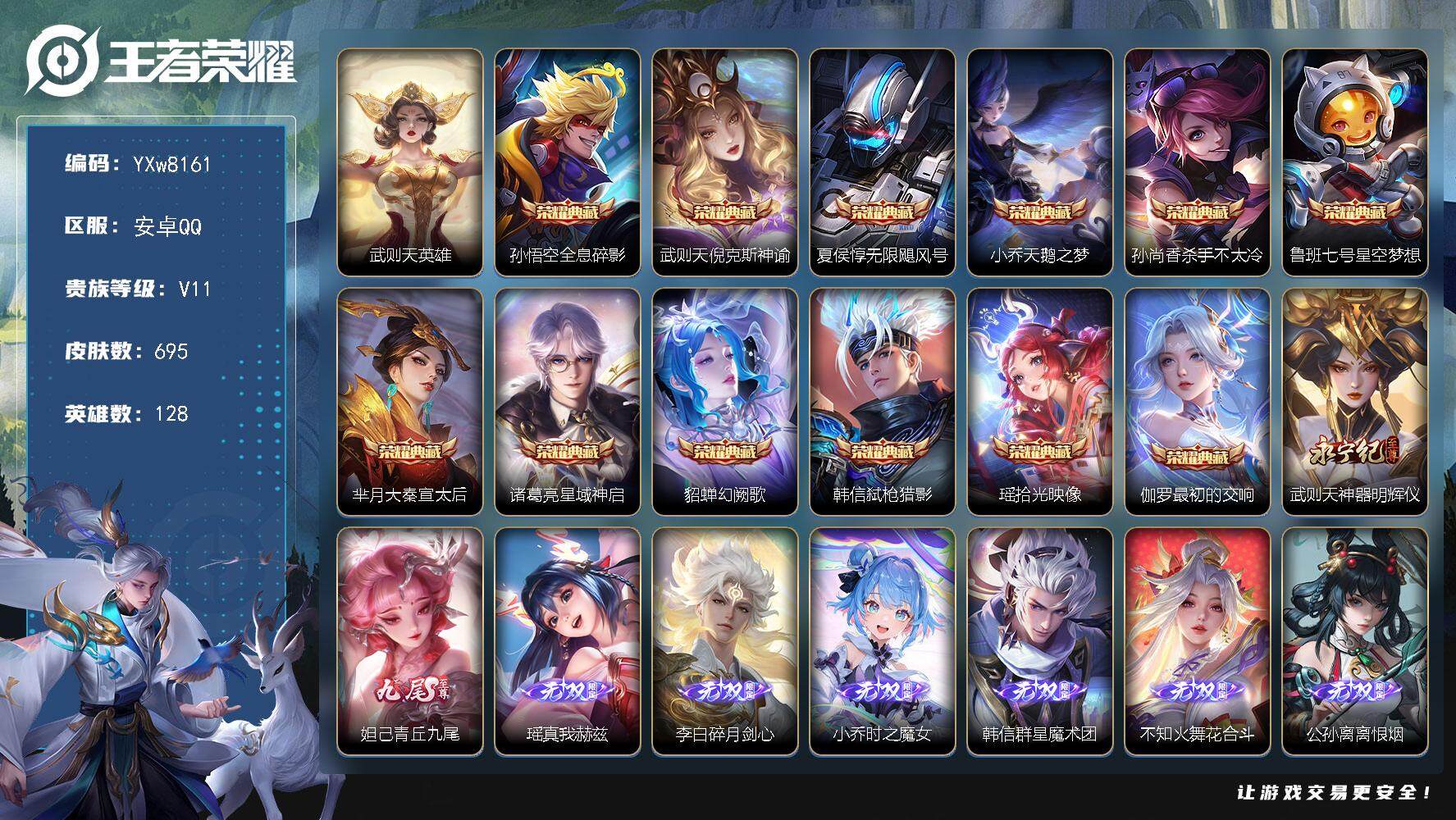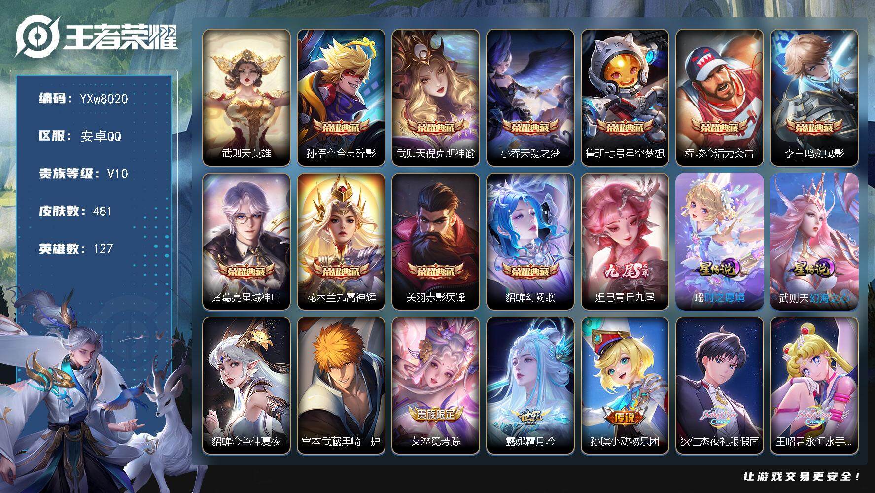 PX_2305512-??无双贵族v11·7.3w流光积分·13典藏·11无双·7珍品·127传说·缺1满年限·全皮瑶·全皮王昭君·全皮公孙离·全皮西施·全皮小乔·全皮大乔·全皮上官婉儿·全皮妲己·全皮蔡文姬·全皮露娜·全皮甄姬·全皮韩信·全皮诸葛亮·全皮孙悟空·全皮吕布·全皮赵云·全皮曜·全皮马超·全皮澜·全皮百里守约·全皮后羿·全皮伽罗·5星传说·玉鸾吟·幻舞叠翠·墨染江湖天幕·幻夜逐光天幕·95按键·可二次】YXw8161-安卓Q-128英雄-695皮肤-17王者印记-300铭文-贵族积分55w【无双贵族11】【13典藏·11无双·7珍品·5星传说·127传说·2天幕·95按键·801个性戳戳】【因赛季更新游戏段付以上号为准!】 【英雄全皮】:廉颇全皮,小乔全皮,赵云全皮,妲己全皮,嬴政全皮,刘禅全皮,阿轲全皮,钟无艳全皮,孙膑全皮,扁鹊全皮,芈月全皮,吕布全皮,周瑜全皮,夏侯惇全皮,甄姬全皮,典韦全皮,狄仁杰全皮,达摩全皮,武则天全皮,司马懿全皮,露娜全皮,姜子牙全皮,刘邦全皮,韩信全皮,王昭君全皮,艾琳全皮,张良全皮,不知火舞全皮,朵莉亚全皮,娜可露露全皮,橘右京全皮,孙悟空全皮,后羿全皮,刘备全皮,张飞全皮,李元芳全皮,钟馗全皮,苍全皮,雅典娜全皮,蔡文姬全皮,东皇太一全皮,诸葛亮全皮,大乔全皮,苏烈全皮,百里守约全皮,弈星全皮,梦奇全皮,公孙离全皮,瑶全皮,云中君全皮,李信全皮,伽罗全皮,盾山全皮,孙策全皮,猪八戒全皮,上官婉儿全皮,亚连全皮,嫦娥全皮,大司命全皮,马超全皮,曜全皮,西施全皮,蒙犽全皮,鲁班大师全皮,蒙恬全皮,澜全皮,盘古全皮,镜全皮,阿古朵全皮,桑启全皮,夏洛特全皮,司空震全皮,云缨全皮,金蝉全皮,赵怀真全皮,戈娅全皮,空空儿全皮,影全皮,海诺全皮 【荣耀典藏】:武则天英雄,孙悟空全息碎影,武则天倪克斯神谕,夏侯惇无限飓风号,小乔天鹅之梦,孙尚香杀手不太冷,鲁班七号星空梦想,芈月大秦宣太后,诸葛亮星域神启,貂蝉幻阙歌,韩信弑枪猎影,瑶拾光映像,伽罗最初的交响 【无双皮肤】:武则天神器明辉仪,妲己青丘九尾,瑶真我赫兹,李白碎月剑心,小乔时之魔女,韩信群星魔术团,不知火舞花合斗,公孙离离恨烟,甄姬雪境奇遇,曜器灵螭龙剑,诸葛亮天机白泽 【珍品传说】:马可波罗怪盗基德,鲁班七号江户川柯南,孙策时之奇旅,嫦娥器灵落星盏,张飞兔狲蓬尾,瑶大耳狗之梦,安琪拉酷洛米之心 【星元皮肤】:李白玉鸾吟,貂蝉幻舞叠翠,狄仁杰星际治安官,宫本武藏幽冥之眼,貂蝉金色仲夏夜 【天幕】:墨染江湖天幕,幻夜逐光天幕 【传说皮肤】:后羿神树通天,干将莫邪千山共赴,元歌诡秘之主,大司命死亡执政官,司马懿九山相柳,公孙离云诺千山,西施续相思,杨玉环星之鸣奏,后羿千劫归真,司空震愿照山河定,女娲愿照千秋盛,妲己愿照众生和,澜愿照九州拓,蔡文姬愿照福禄聚,虞姬愿照岁时盈,云缨幻光神枪,裴擒虎祥瑞亨通,嬴政玄雷天君,王昭君映山客,桑启鸣野蒿,庄周牧神诗旅,夏侯惇霜北刀,铠冥王哈迪斯,朵莉亚心动手记,云中君群星魔术团,墨子黄金天蝎座,海月金乌负日,亚连落雪白狼,吕布曦玄引,貂蝉曦玄引,典韦战鼓燎原,孙尚香乘龙问璇玑,孙策乘龙淬吴钩,赵云乘龙铭钟鼎,马超琥珀纪元,铠琥珀纪元,澜逐花归海,艾琳觅芳踪,露娜霜月吟,孙膑小动物乐团,狄仁杰夜礼服假面,王昭君永恒水手月亮,甄姬至美化雀舞,大乔时之奇旅,鲁班七号时之奇旅,兰陵王影龙天霄,吕布遇见神鼓,宫本武藏惊梅引,云缨鹤归松栖,上官婉儿妄想奇谈,马可波罗妄想实况,东皇太一灼幽烈阳,诸葛亮鹤羽星尊,澜电玩雷克斯,亚瑟追逃游戏,安琪拉追逃游戏,张飞百相守梦,公孙离记忆之芯,夏洛特浮生妄,干将莫邪画中仙,花木兰燃星之曲,虞姬无限倾心,项羽无限倾心,伽罗炽翼辉光,孙悟空齐天大圣,小乔山海琳琅生,曜山海苍雷引,李信山海炽霜斩,吕布怒海麟威,李白诗剑行,狄仁杰神器狴犴令,不知火舞绯月行,王昭君星穹之声,百里守约碎云,橘右京枫霜尽,娜可露露前尘镜,孙尚香音你闪耀,马可波罗深海之息,后羿无尽星芒,马超无双飞将,大乔挚爱花嫁,孙策挚爱之约,露娜启示之音,蔡文姬花朝如约,女娲补天,孙策末日机甲,瑶时之祈愿,鲁班七号寅虎瑞焰,孙尚香异界灵契,赵云淬星耀世,王昭君乞巧织情,西施游龙清影,曜李逍遥,,周瑜音你心动,小乔音你心动,李元芳飞鸢探春,兰陵王默契交锋,公孙离祈雪灵祝,诸葛亮时雨天司,铠绛天战甲,镜炽阳神光,虞姬启明星使,孙悟空零号赤焰,关羽武圣,曜云鹰飞将,李信一念神魔,刘备时之恋人,伽罗太华,貂蝉猫影幻舞,张良黄金白羊座,干将莫邪久胜战神,虞姬云霓雀翎,达摩黄金狮子座,百里玄策白虎志,花木兰冠军飞将,梦奇胖达荣荣,后羿黄金射手座,杨戬永曜之星,诸葛亮武陵仙君,貂蝉仲夏夜之梦,李白凤求凰,孙尚香末日机甲,宫本武藏地狱之眼,孙悟空地狱火,吕布天魔缭乱,武则天海洋之心,狄仁杰超时空战士 【限定皮肤】:白起狰,公孙离离恨烟,夏侯惇霜北刀,铠冥王哈迪斯,暃埋骨钱,蒙犽顽岩魄,蔡文姬夏日便利店,大乔绒语心约,虞姬夏日便利店,姜子牙天穹之誓,杨戬破阵退雄兵,李白谪仙醉月,狄仁杰阴阳师,小乔纯白花嫁,虞姬凯尔特女王,廉颇寅虎御盾,小乔山海琳琅生,赵云皇家上将,赵云引擎之心,赵云龙胆,赵云百木心枪,墨子神迹守卫,墨子降魔,妲己热情桑巴,妲己时之彼端,妲己时之奇旅,嬴政优雅恋人,嬴政白昼王子,孙尚香异界灵契,鲁班七号狮舞东方,鲁班七号寅