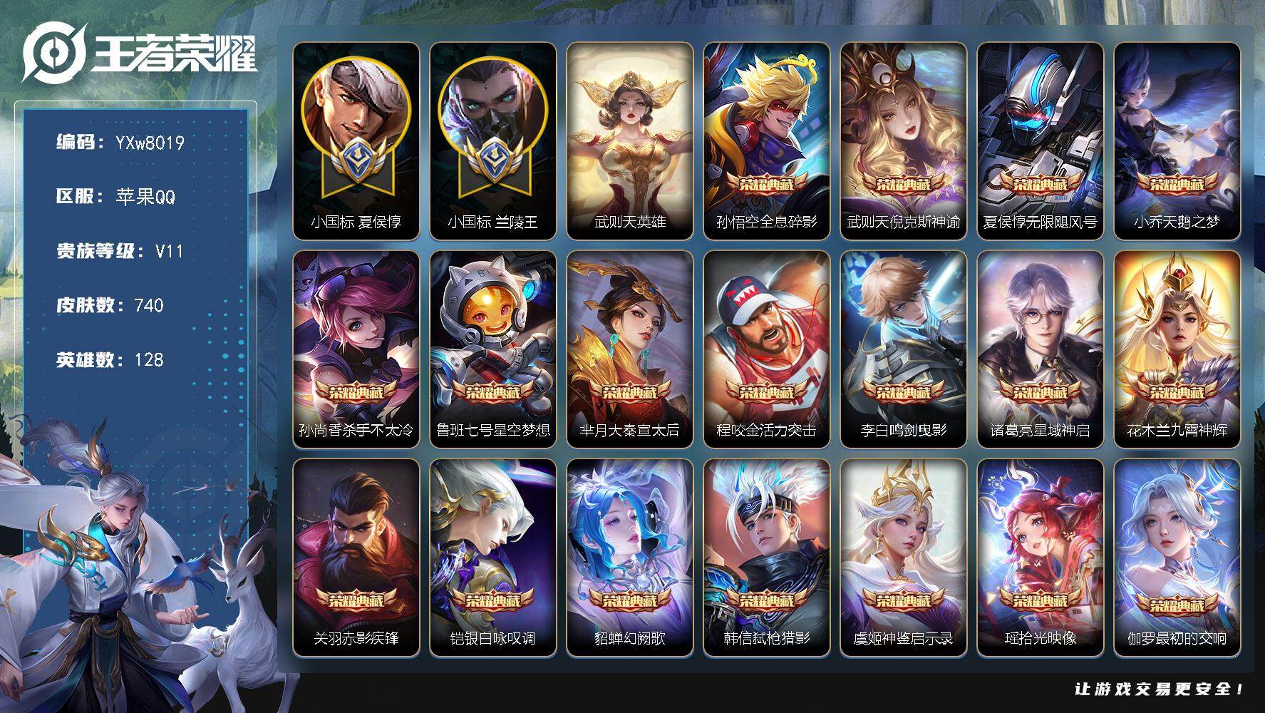 PX_2305507-??之宝·无双V10·740皮·11W流光积分·满典藏+背包2水晶·满无双·满珍品·珍品无双·11个天幕·183按键·小兵雪境奇遇·383个性戳戳·43段打野·小国标兰陵王·小国标夏侯惇·可二次】YXw8019-苹果Q-128英雄-740皮肤-26王者印记-300铭文-贵族积分77w【无双贵族11】【19典藏·1珍品无双·12无双·9珍品·9星传说·130传说·11天幕·183按键·383个性戳戳】【因赛季更新游戏段付以上号为准!】 【荣耀典藏】:武则天英雄,孙悟空全息碎影,武则天倪克斯神谕,夏侯惇无限飓风号,小乔天鹅之梦,孙尚香杀手不太冷,鲁班七号星空梦想,芈月大秦宣太后,程咬金活力突击,李白鸣剑曳影,诸葛亮星域神启,花木兰九霄神辉,关羽赤影疾锋,铠银白咏叹调,貂蝉幻阙歌,韩信弑枪猎影,虞姬神鉴启示录,瑶拾光映像,伽罗最初的交响 【珍品无双】:貂蝉馥梦繁花 【无双皮肤】:武则天神器明辉仪,妲己青丘九尾,瑶真我赫兹,李白碎月剑心,小乔时之魔女,韩信群星魔术团,不知火舞花合斗,公孙离离恨烟,甄姬雪境奇遇,曜器灵螭龙剑,诸葛亮天机白泽,铠神罪 【珍品传说】:马可波罗怪盗基德,鲁班七号江户川柯南,孙策时之奇旅,嫦娥器灵落星盏,张飞兔狲蓬尾,瑶大耳狗之梦,安琪拉酷洛米之心,暃朽木白哉,宫本武藏黑崎一护 【星元皮肤】:鲁班七号寅虎焰心,虞姬无限倾慕,狄仁杰星际治安官,刘备时之思念,瑶时之愿境,孙悟空零号雷霆,武则天幻海之心,宫本武藏幽冥之眼,貂蝉金色仲夏夜 【天幕】:繁花交响诗天幕,棉花糖聚会天幕,财神纳福天幕,龙腾四海天幕,路在脚下天幕,挚爱童话天幕,花朝如约天幕,金虎啸春天幕,秋月华灯天幕,鲲天幕,共赏芳华天幕 【小兵皮肤】:小兵雪境奇遇 【传说皮肤】:杨戬纵目迁山,后羿神树通天,曹操万灵伏威,干将莫邪千山共赴,元歌诡秘之主,大司命死亡执政官,司马懿九山相柳,公孙离云诺千山,西施续相思,杨玉环星之鸣奏,后羿千劫归真,司空震愿照山河定,女娲愿照千秋盛,妲己愿照众生和,澜愿照九州拓,蔡文姬愿照福禄聚,虞姬愿照岁时盈,云缨幻光神枪,裴擒虎祥瑞亨通,嬴政玄雷天君,王昭君映山客,桑启鸣野蒿,庄周牧神诗旅,夏侯惇霜北刀,朵莉亚心动手记,云中君群星魔术团,墨子黄金天蝎座,海月金乌负日,亚连落雪白狼,吕布曦玄引,貂蝉曦玄引,典韦战鼓燎原,孙尚香乘龙问璇玑,孙策乘龙淬吴钩,赵云乘龙铭钟鼎,马超琥珀纪元,铠琥珀纪元,澜逐花归海,艾琳觅芳踪,露娜霜月吟,孙膑小动物乐团,狄仁杰夜礼服假面,王昭君永恒水手月亮,甄姬至美化雀舞,大乔时之奇旅,鲁班七号时之奇旅,兰陵王影龙天霄,吕布遇见神鼓,宫本武藏惊梅引,云缨鹤归松栖,上官婉儿妄想奇谈,马可波罗妄想实况,东皇太一灼幽烈阳,诸葛亮鹤羽星尊,澜电玩雷克斯,亚瑟追逃游戏,安琪拉追逃游戏,张飞百相守梦,公孙离记忆之芯,夏洛特浮生妄,干将莫邪画中仙,花木兰燃星之曲,虞姬无限倾心,项羽无限倾心,伽罗炽翼辉光,孙悟空齐天大圣,小乔山海琳琅生,曜山海苍雷引,李信山海炽霜斩,吕布怒海麟威,李白诗剑行,狄仁杰神器狴犴令,不知火舞绯月行,王昭君星穹之声,百里守约碎云,橘右京枫霜尽,娜可露露前尘镜,孙尚香音你闪耀,马可波罗深海之息,后羿无尽星芒,马超无双飞将,大乔挚爱花嫁,孙策挚爱之约,露娜启示之音,蔡文姬花朝如约,女娲补天,孙策末日机甲,瑶时之祈愿,裴擒虎寅虎赤拳,鲁班七号寅虎瑞焰,孙尚香异界灵契,貂蝉遇见胡旋,赵云淬星耀世,王昭君乞巧织情,西施游龙清影,曜李逍遥,,周瑜音你心动,小乔音你心动,李元芳飞鸢探春,兰陵王默契交锋,公孙离祈雪灵祝,诸葛亮时雨天司,铠绛天战甲,镜炽阳神光,虞姬启明星使,孙悟空零号赤焰,关羽武圣,曜云鹰飞将,李信一念神魔,刘备时之恋人,伽罗太华,貂蝉猫影幻舞,张良黄金白羊座,干将莫邪久胜战神,虞姬云霓雀翎,达摩黄金狮子座,百里玄策白虎志,花木兰冠军飞将,梦奇胖达荣荣,后羿黄金射手座,杨戬永曜之星,诸葛亮武陵仙君,貂蝉仲夏夜之梦,李白凤求凰,孙尚香末日机甲,宫本武藏地狱之眼,孙悟空地狱火,吕布天魔缭乱,武则天海洋之心,狄仁杰超时空战士 【限定皮肤】:白起狰,公孙离离恨烟,夏侯惇霜北刀,暃埋骨钱,蒙犽顽岩魄,蔡文姬夏日便利店,大乔绒语心约,虞姬夏日便利店,姜子牙天穹之誓,杨戬破阵退雄兵,李白谪仙醉月,狄仁杰阴阳师,小乔纯白花嫁,虞姬凯尔特女王,廉颇寅虎御盾,小乔山海琳琅生,赵云皇家上将,赵云引擎之心,赵云龙胆,赵云百木心枪,墨子神迹守卫,墨子降魔,妲己热情桑巴,妲己时之奇旅,嬴政优雅恋人,嬴政白昼王子,孙尚香异界灵契,鲁班七号狮舞东方,鲁班七号乒乒小将,鲁班七号寅虎瑞焰,鲁班七号时之奇旅,庄周云端筑梦师,庄周玄嵩,庄周高山流水,高渐离死亡摇滚,高渐离玩趣恶龙,阿轲迷踪丽影,钟无艳王者之锤,钟无艳超时空战士,孙膑妖精王,孙膑天狼运算者,孙膑寅虎展翼,扁鹊炼金王,扁鹊奇幻香踪,白起夜都怪侠,芈月重明,芈月白晶晶,芈月幻夜卜梦,吕布天魔缭乱,吕布猎兽之王,吕布御风骁将,吕布遇见神鼓,周瑜真爱至上,周瑜赤莲之焰,元歌云间偶戏,元歌无心,夏侯惇朔风刀,夏侯惇匿光决锋者,甄姬幽恒,甄姬女儿国国王,甄姬游园惊梦,甄姬落雪兰心,甄姬至美化雀舞,曹操烛龙,曹操天狼征服者,典韦穷奇,典韦蓝屏警告,典韦岱宗,马可波罗暗影游猎,马可波罗深海之息,马可波罗山海玄木吟,马可波罗妄想实况,狄仁杰魔术师,狄