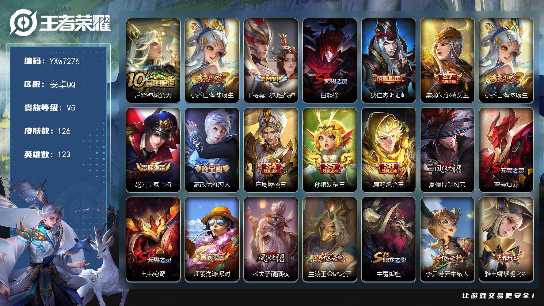 PX_2292412-??女号·1.29W金标小乔·万战奕星·金标西施·金标妲己·小乔山海琳琅生·久胜战神·可二次】YXw7276-安卓Q-123英雄-126皮肤-8王者印记-170铭文-贵族积分0w【贵族5】【·3传说·2按键】【因赛季更新游戏段付以上号为准!】 【传说皮肤】:后羿神树通天,小乔山海琳琅生,干将莫邪久胜战神 【限定皮肤】:白起狰,狄仁杰阴阳师,虞姬凯尔特女王,小乔山海琳琅生,赵云皇家上将,嬴政优雅恋人,庄周蜃楼王,孙膑妖精王,扁鹊炼金王,夏侯惇朔风刀,曹操烛龙,典韦穷奇,项羽海滩派对,老夫子醍醐杖,兰陵王金庭之子,牛魔御旌,李元芳云中旅人,雅典娜黎明之约,鬼谷子原初探秘者,鬼谷子五谷丰年,弈星混沌棋,梦奇顽趣,沈梦溪大漠名商,明世隐疑决卦,裴擒虎擒涛扼浪,狂铁御狮,米莱狄御霄,盾山御銮,上官婉儿梁祝,西施玲珑珍味,鲁班大师探海日志,桑启海盐诗旅,戈娅驭风魔法,张良古海寻踪,蒙恬荣光圣徽,鬼谷子天穹祈灯 【年限皮肤】:小乔山海琳琅生 【赛季限定】:庄周蜃楼王,孙膑妖精王,扁鹊炼金王,白起狰,夏侯惇朔风刀,曹操烛龙,典韦穷奇,老夫子醍醐杖,兰陵王金庭之子,张良古海寻踪,牛魔御旌,李元芳云中旅人,虞姬凯尔特女王,雅典娜黎明之约,鬼谷子原初探秘者,弈星混沌棋,梦奇顽趣,沈梦溪大漠名商,明世隐疑决卦,裴擒虎擒涛扼浪,狂铁御狮,米莱狄御霄,盾山御銮,鲁班大师探海日志,桑启海盐诗旅,鬼谷子天穹祈灯,蒙恬荣光圣徽 【战令限定】:西施玲珑珍味,戈娅驭风魔法 【史诗皮肤】:赵云皇家上将,貂蝉圣诞恋歌,廉颇地狱岩魂,孙尚香水果甜心,嬴政优雅恋人,妲己女仆咖啡,墨子金属风暴,刘禅绅士熊喵,花木兰水晶猎龙者,小乔缤纷独角兽,安琪拉心灵骇客,百里守约特工魅影,刘禅天才门将,狄仁杰鹰眼统帅,上官婉儿梁祝,雅典娜黎明之约,鬼谷子五谷丰年,梦奇顽趣,戈娅驭风魔法,蒙恬荣光圣徽 【其他皮肤】:项羽海滩派对,韩信教廷特使,韩信街头霸王,阿轲爱心护理,赵云忍炎影,白起白色死神,牛魔西部大镖客,武则天东方不败,扁鹊化身博士,宫本武藏未来纪元,安琪拉玩偶对对碰,妲己少女阿狸,典韦黄金武士,亚瑟死亡骑士,达摩拳王,花木兰兔女郎,狄仁杰阴阳师,庄周蜃楼王,刘备纽约教父,孙膑妖精王,刘备汉昭烈帝,扁鹊炼金王,关羽龙腾万里,虞姬凯尔特女王,白起狰,钟无艳海滩丽影,宫本武藏霸王丸,曹操烛龙,老夫子功夫老勺,典韦穷奇,狂铁御狮,苏烈坚韧之力,大乔守护之力,项羽科学大爆炸,米莱狄御霄,明世隐虹云星官,牛魔御旌,吕布野性能量,盾山御銮,沈梦溪鲨炮海盗猫,姜子牙炽热元素使,夏侯惇朔风刀,弈星混沌棋,鲁班七号黑桃队长,明世隐疑决卦,盾山圆桌骑士,老夫子醍醐杖,鬼谷子原初探秘者,张良缤纷绘卷,兰陵王金庭之子,刘禅唤灵魔甲,沈梦溪大漠名商,蒙恬蔚蓝守将,李元芳云中旅人,桑启海盐诗旅,海月幻泉雾影,猪八戒潮玩探月行,裴擒虎擒涛扼浪,莱西奥西部游侠,鲁班大师探海日志,西施玲珑珍味,姬小满零食大作战,李元芳妄想特派,张良古海寻踪,后羿完美运算,鬼谷子天穹祈灯,戈娅玫蓝誓约,钟馗虚灵犬护,艾琳鹤鸣心笺,鲁班七号木偶奇遇记,露娜绯红之刃,貂蝉异域舞娘,老夫子潮流仙人,曹操超能战警,小乔万圣前夜,孙悟空西部大镖客,周瑜海军大将,李白范海辛,钟馗地府判官,李元芳特种部队,马可波罗激情绿茵,苍维京掠夺者,杨戬埃及法老,大乔伊势巫女,东皇太一东海龙王,百里守约绝影神枪,百里玄策威尼斯狂欢,苏烈爱与和平,女娲尼罗河女神,杨玉环霓裳曲,弈星踏雪寻梅,元歌午夜歌剧院,司马懿魇语军师,沈梦溪棒球奇才,李信灼热之刃,上官婉儿修竹墨客,马超幸存者,西施归虚梦演,鲁班大师归虚梦演,蒙犽归虚梦演,澜孤猎,司空震启蛰,暃碧珀绯影 【内测皮肤】:嬴政优雅恋人