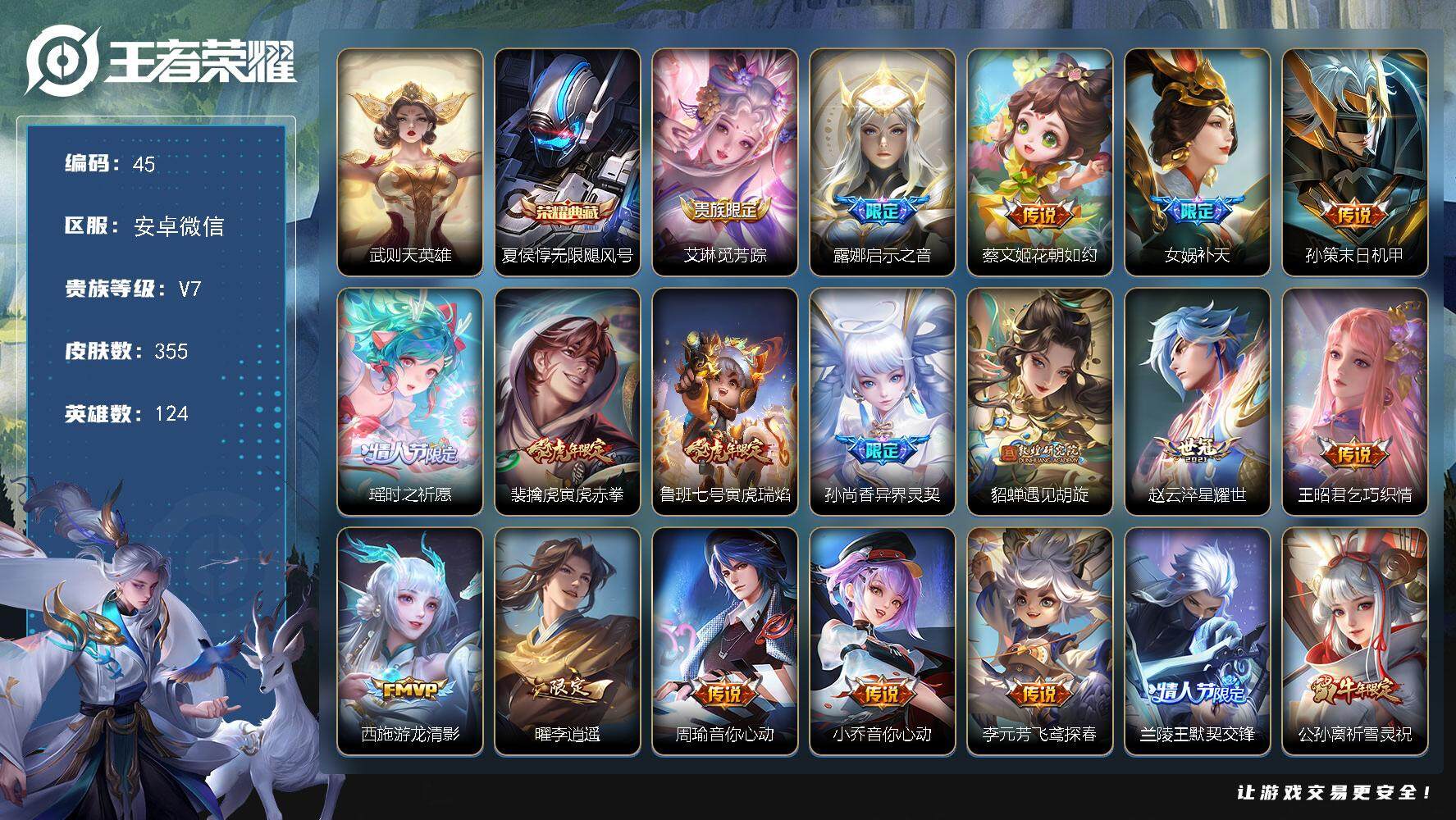 PX_2295041-WX-V10-《社交限制》至尊星耀IV段位-124英雄-355皮肤-1典藏-0珍品无双-0无双-0珍品传说-41传说-129史诗 【英雄全皮】:猪八戒全皮 【荣耀典藏】:武则天英雄,夏侯惇无限飓风号 【传说皮肤】:艾琳觅芳踪,露娜启示之音,蔡文姬花朝如约,女娲补天,孙策末日机甲,瑶时之祈愿,裴擒虎寅虎赤拳,鲁班七号寅虎瑞焰,孙尚香异界灵契,貂蝉遇见胡旋,赵云淬星耀世,王昭君乞巧织情,西施游龙清影,曜李逍遥,,周瑜音你心动,小乔音你心动,李元芳飞鸢探春,兰陵王默契交锋,公孙离祈雪灵祝,诸葛亮时雨天司,镜炽阳神光,虞姬启明星使,关羽武圣,曜云鹰飞将,李信一念神魔,刘备时之恋人,伽罗太华,貂蝉猫影幻舞,张良黄金白羊座,虞姬云霓雀翎,达摩黄金狮子座,百里玄策白虎志,梦奇胖达荣荣,后羿黄金射手座,杨戬永曜之星,诸葛亮武陵仙君,孙尚香末日机甲,宫本武藏地狱之眼,吕布天魔缭乱,武则天海洋之心,狄仁杰超时空战士 【限定皮肤】:白起狰,狄仁杰阴阳师,小乔纯白花嫁,虞姬凯尔特女王,廉颇寅虎御盾,赵云皇家上将,赵云龙胆,赵云百木心枪,墨子神迹守卫,嬴政白昼王子,孙尚香异界灵契,鲁班七号狮舞东方,鲁班七号乒乒小将,鲁班七号寅虎瑞焰,庄周云端筑梦师,庄周玄嵩,庄周高山流水,高渐离死亡摇滚,高渐离玩趣恶龙,阿轲迷踪丽影,孙膑天狼运算者,孙膑寅虎展翼,扁鹊炼金王,白起夜都怪侠,芈月重明,芈月白晶晶,芈月幻夜卜梦,吕布天魔缭乱,吕布猎兽之王,周瑜真爱至上,周瑜赤莲之焰,元歌云间偶戏,夏侯惇朔风刀,夏侯惇匿光决锋者,甄姬女儿国国王,甄姬游园惊梦,曹操烛龙,曹操天狼征服者,典韦穷奇,典韦蓝屏警告,典韦岱宗,马可波罗逐梦之星,马可波罗暗影游猎,狄仁杰魔术师,狄仁杰万华元夜,达摩星际陆战队,达摩沙漠行僧,项羽海滩派对,项羽霸王别姬,老夫子醍醐杖,老夫子航海奇遇记,关羽冰锋战神,关羽武圣,貂蝉遇见胡旋,程咬金演武夺筹,露娜一生所爱,露娜启示之音,刘邦夺宝奇兵,韩信傲雪梅枪,兰陵王默契交锋,兰陵王驯魔猎人,兰陵王金庭之子,花木兰默契交锋,亚瑟潮玩骑士王,孙悟空至尊宝,孙悟空大圣娶亲,孙悟空孙行者,牛魔御旌,牛魔奔雷神使,后羿辉光之辰,后羿如梦令,后羿圣弓游侠,张飞虎魄,李元芳银河之约,虞姬霸王别姬,虞姬启明星使,钟馗神迹守卫,钟馗驱傩正仪,杨玉环遇见飞天,杨玉环寅虎心曲,杨戬永曜之星,女娲朔望之晖,女娲