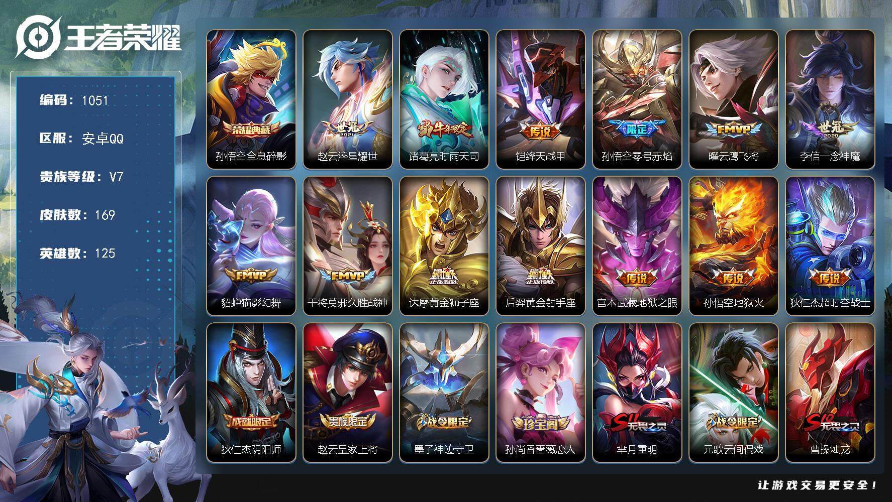 PX_2185208-【多皮肤精品小号】:安卓Q-V7-至尊星耀V段位-121英雄-297皮肤-1典藏-0无双-0珍品传说-8传说-76史诗 【荣耀典藏】:李白鸣剑曳影 【内测皮肤】:孙尚香蔷薇恋人,艾琳女武神,高渐离玩趣恶龙,狂铁特工战影 【传说皮肤】:孙悟空齐天大圣,诸葛亮武陵仙君,曜云鹰飞将,狄仁杰夜礼服假面,孙策乘龙淬吴钩,桑启鸣野蒿,云缨幻光神枪,澜愿照九州拓 【限定皮肤】:蒙犽顽岩魄,蔡文姬夏日便利店,虞姬夏日便利店,姜子牙天穹之誓,狄仁杰阴阳师,赵云皇家上将,孙尚香蔷薇恋人,高渐离玩趣恶龙,钟无艳超时空战士,扁鹊奇幻香踪,白起夜都怪侠,芈月幻夜卜梦,吕布猎兽之王,元歌云间偶戏,元歌无心,甄姬落雪兰心,马可波罗山海玄木吟,狄仁杰魔术师,狄仁杰万华元夜,达摩沙漠行僧,项羽海滩派对,程咬金演武夺筹,王昭君午后时光,兰陵王金庭之子,亚瑟潮玩骑士王,孙悟空孙行者,孙悟空齐天大圣,李元芳云中旅人,钟馗驱傩正仪,杨戬潮玩骑兵,鬼谷子原初探秘者,鬼谷子五谷丰年,诸葛亮武陵仙君,黄忠火炮绅士,苏烈千军破阵,沈梦溪大漠名商,沈梦溪匿光破解者,明世隐吟游魔法,裴擒虎李小龙,裴擒虎擒涛扼浪,狂铁电玩高手,云中君纤云弄巧,云中君时之祈愿,猪八戒猪悟能,上官婉儿梁祝,嫦娥拒霜思,嫦娥暖冬兔眠,西施玲珑珍味,鲁班大师探海日志,桑启海盐诗旅,暃星界游侠,戈娅驭风魔法,艾琳女武神,艾琳流音漫舞,司空震地狱燃心,阿古朵江河有灵,张良古海寻踪,狄仁杰夜礼服假面,蒙犽百解令,高渐离燃音魔法,妲己灵卜魔法,鬼谷子天穹祈灯,伽罗琥珀纪元,孙策乘龙淬吴钩,沈梦溪龙舞盛年,鲁班七号蔬乡物语,李元芳蔬乡物语,刘邦剑破天穹,程咬金群星魔术团,镜青焰无极,项羽苍威无极,海诺心动手记,周瑜熔金海岸 【年限皮肤】:马可波罗山海玄木吟,孙策乘龙淬吴钩 【赛季限定】:狄仁杰万华元夜,达摩沙漠行僧,程咬金演武夺筹,兰陵王金庭之子,张良古海寻踪,李元芳云中旅人,钟馗驱傩正仪,鬼谷子原初探秘者,苏烈千军破阵,沈梦溪大漠名商,裴擒虎擒涛扼浪,鲁班大师探海日志,桑启海盐诗旅,鬼谷子天穹祈灯,刘邦剑破天穹,姜子牙天穹之誓 【战令限定】:蔡文姬夏日便利店,虞姬夏日便利店,钟无艳超时空战士,扁鹊奇幻香踪,白起夜都怪侠,芈月幻夜卜梦,吕布猎兽之王,元歌云间偶戏,甄姬落雪兰心,王昭君午后时光,艾琳流音漫舞,亚瑟潮玩骑士王,杨戬潮玩骑兵,黄忠火炮绅士,明世隐吟游魔法,狂铁电玩高手,嫦娥暖冬兔眠,西施玲珑珍味,司空震地狱燃心,暃星界游侠,戈娅驭风魔法,高渐离燃音魔法,妲己灵卜魔法,鲁班七号蔬乡物语,李元芳蔬乡物语,镜青焰无极,项羽苍威无极 【史诗皮肤】:妲己魅力维加斯,蒙犽顽岩魄,蔡文姬夏日便利店,妲己女仆咖啡,廉颇地狱岩魂,小乔缤纷独角兽,小乔青蛇,赵云未来纪元,赵云皇家上将,墨子金属风暴,嬴政摇滚巨星,嬴政暗夜贵公子,孙尚香水果甜心,孙尚香蔷薇恋人,刘禅电玩爆裂旋风,阿轲暗夜猫娘,阿轲节奏热浪,钟无艳超时空战士,扁鹊奇幻香踪,白起星夜王子,吕布圣诞狂欢,吕布末日机甲,元歌云间偶戏,元歌无心,夏侯惇乘风破浪,甄姬冰雪圆舞曲,曹操幽灵船长,宫本武藏鬼剑武藏,李白千年之狐,马可波罗山海玄木吟,狄仁杰魔术师,狄仁杰鹰眼统帅,貂蝉圣诞恋歌,安琪拉心灵骇客,露娜紫霞仙子,刘邦德古拉伯爵,王昭君偶像歌手,兰陵王暗隐猎兽者,花木兰水晶猎龙者,橘右京修罗,亚瑟心灵战警,孙悟空孙行者,张飞乱世虎臣,李元芳逐浪之夏,蔡文姬舞动绿茵,鬼谷子五谷丰年,诸葛亮黄金分割率,大乔猫狗日记,黄忠火炮绅士,铠曙光守护者,百里守约特工魅影,公孙离无限星赏官,沈梦溪匿光破解者,明世隐吟游魔法,裴擒虎李小龙,狂铁电玩高手,云中君纤云弄巧,云中君时之祈愿,孙策猫狗日记,猪八戒猪悟能,上官婉儿梁祝,嫦娥拒霜思,澜赏金猎手,暃星界游侠,戈娅驭风魔法,阿古朵江河有灵,司空震地狱燃心,蒙犽百解令,高渐离燃音魔法,妲己灵卜魔法,伽罗琥珀纪元,鲁班七号蔬乡物语,海诺心动手记 【其他皮肤】:曹操决胜大满贯,兰陵王幻夜行动,海月王牌新星,钟无艳聚星闪耀,盾山圆桌骑士,庄周奇妙博物学,宫本武藏万象初新,宫本武藏未来纪元,宫本武藏霸王丸,韩信教廷特使,韩信街头霸王,刘邦虎啸剑宗,安琪拉玩偶对对碰,阿轲爱心护理,蒙恬蔚蓝守将,典韦黄金武士,典韦铁甲之心,孙尚香沉稳之力,苏烈坚韧之力,牛魔牛运亨通,牛魔西部大镖客,刘备汉昭烈帝,刘备万事如意,刘备潮玩造梦师,张良缤纷绘卷,张良幽兰居士,吕布野性能量,鲁班大师乓乓大师,妲己少女阿狸,孙膑天使之翼,孙膑归虚梦演,赵云白执事,赵云忍炎影,亚瑟死亡骑士,甄姬花好人间,狂铁特工战影,狂铁命运角斗场,钟无艳海滩丽影,米莱狄契约魔法,达摩大发明家,达摩拳王,后羿阿尔法小队,哪吒次元突破,王昭君幻想奇妙夜,芈月红桃皇后,露娜哥特玫瑰,露娜瓷语鉴心,老夫子功夫老勺,李元芳妄想特派,程咬金无双福将,鬼谷子幻乐之宴,刘禅唤灵魔甲,刘禅秘密基地,海月幻泉雾影,戈娅危途狂花,猪八戒潮玩探月行,张飞五福同心,太乙真人劲辣红锅,姜子牙时尚教父,明世隐虹云星官,扁鹊化身博士,扁鹊救世之瞳,大乔守护之力,蒙犽胡桃狂想曲,姬小满零食大作战,关羽龙腾万里,白起乐园追猎者,白起白色死神,莱西奥西部游侠,诸葛亮掌控之力,花木兰兔女郎,小乔丁香结,沈梦溪鲨炮海盗猫,朵莉亚金色潮