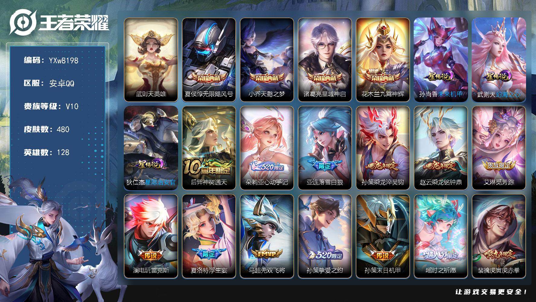 PX_2307853-??推荐·5典藏·无限飓风号·天鹅之梦·星域神启·九霄神辉·武则天·金标玄策·金标老虎·金标赵云·金标武则天·朵莉亚心动手记·落雪白狼·乘龙淬吴钩·云乘龙铭钟鼎·电玩雷克斯·浮生妄·无双飞将·可二次】YXw8198-安卓Q-128英雄-480皮肤-25王者印记-300铭文-贵族积分23w【贵族10】【5典藏·3星传说·48传说·1天幕·12按键】【因赛季更新游戏段付以上号为准!】 【英雄全皮】:刘禅全皮,阿轲全皮,刘邦全皮,孙权全皮,钟馗全皮,太乙真人全皮,鬼谷子全皮,黄忠全皮,苏烈全皮,猪八戒全皮,蒙恬全皮,阿古朵全皮,夏洛特全皮,戈娅全皮,空空儿全皮,影全皮,海诺全皮 【荣耀典藏】:武则天英雄,夏侯惇无限飓风号,小乔天鹅之梦,诸葛亮星域神启,花木兰九霄神辉 【星元皮肤】:狄仁杰星际治安官,孙尚香未来机甲,武则天幻海之心 【天幕】:共赏芳华天幕 【传说皮肤】:后羿神树通天,朵莉亚心动手记,亚连落雪白狼,孙策乘龙淬吴钩,赵云乘龙铭钟鼎,艾琳觅芳踪,澜电玩雷克斯,夏洛特浮生妄,马超无双飞将,孙策挚爱之约,孙策末日机甲,瑶时之祈愿,裴擒虎寅虎赤拳,鲁班七号寅虎瑞焰,孙尚香异界灵契,貂蝉遇见胡旋,赵云淬星耀世,王昭君乞巧织情,西施游龙清影,周瑜音你心动,小乔音你心动,兰陵王默契交锋,公孙离祈雪灵祝,诸葛亮时雨天司,铠绛天战甲,镜炽阳神光,虞姬启明星使,孙悟空零号赤焰,关羽武圣,曜云鹰飞将,李信一念神魔,刘备时之恋人,伽罗太华,貂蝉猫影幻舞,张良黄金白羊座,干将莫邪久胜战神,虞姬云霓雀翎,达摩黄金狮子座,百里玄策白虎志,花木兰冠军飞将,梦奇胖达荣荣,杨戬永曜之星,李白凤求凰,孙尚香末日机甲,宫本武藏地狱之眼,吕布天魔缭乱,武则天海洋之心,狄仁杰超时空战士 【限定皮肤】:白起狰,姜子牙天穹之誓,狄仁杰阴阳师,虞姬凯尔特女王,廉颇寅虎御盾,赵云皇家上将,赵云百木心枪,墨子神迹守卫,墨子降魔,妲己热情桑巴,嬴政优雅恋人,嬴政白昼王子,孙尚香异界灵契,鲁班七号狮舞东方,鲁班七号寅虎瑞焰,庄周云端筑梦师,庄周玄嵩,庄周高山流水,高渐离死亡摇滚,高渐离玩趣恶龙,阿轲迷踪丽影,钟无艳王者之锤,孙膑天狼运算者,孙膑寅虎展翼,扁鹊奇幻香踪,白起夜都怪侠,芈月重明,芈月白晶晶,芈月幻夜卜梦,吕布天魔缭乱,吕布猎兽之王,吕布御风骁将,周瑜赤莲之焰,元歌云间偶戏,夏侯惇朔风刀,甄姬幽恒,甄姬女儿国国王,甄姬游园惊梦,曹操烛龙,典韦穷奇,典韦蓝屏警告,典韦岱宗,马可波罗暗影游猎,狄仁杰魔术师,狄仁杰万华元夜,达摩星际陆战队,达摩沙漠行僧,项羽海滩派对,项羽霸王别姬,老夫子醍醐杖,老夫子航海奇遇记,关羽冰锋战神,关羽武圣,貂蝉遇见胡旋,程咬金演武夺筹,露娜一生所爱,刘邦夺宝奇兵,韩信飞衡,韩信傲雪梅枪,王昭君凤凰于飞,兰陵王默契交锋,兰陵王驯魔猎人,兰陵王金庭之子,花木兰青春决赛季,花木兰瑞麟志,花木兰默契交锋,亚瑟潮玩骑士王,孙悟空至尊宝,孙悟空大圣娶亲,孙悟空零号赤焰,孙悟空孙行者,牛魔御旌,牛魔奔雷神使,后羿辉光之辰,后羿如梦令,后羿圣弓游侠,李元芳银河之约,李元芳匿光侦查者,李元芳云中旅人,虞姬霸王别姬,虞姬启明星使,钟馗神迹守卫,钟馗驱傩正仪,杨玉环遇见飞天,杨玉环寅虎心曲,杨戬永曜之星,杨戬潮玩骑兵,女娲朔望之晖,哪吒逐梦之翼,干将莫邪冰霜恋舞曲,干将莫邪真爱魔法,雅典娜单词大作战,雅典娜黎明之约,蔡文姬繁星吟游,太乙真人饕餮,太乙真人华丽摇滚,东皇太一逐梦之光,鬼谷子原初探秘者,鬼谷子五谷丰年,诸葛亮时雨天司,黄忠烈魂,黄忠火炮绅士,铠青龙志,苏烈玄武志,苏烈千军破阵,百里玄策白虎志,百里玄策原初追逐者,百里守约朱雀志,弈星混沌棋,梦奇顽趣,公孙离蜜橘之夏,公孙离祈雪灵祝,公孙离玉兔公主,沈梦溪星空之诺,沈梦溪大漠名商,沈梦溪匿光破解者,明世隐疑决卦,明世隐吟游魔法,裴擒虎天狼狩猎者,裴擒虎李小龙,裴擒虎寅虎赤拳,裴擒虎擒涛扼浪,狂铁御狮,米莱狄御霄,米莱狄胡桃异想国,瑶时之祈愿,云中君纤云弄巧,伽罗太华,盾山御銮,孙策挚爱之约,猪八戒西部大镖客,猪八戒猪悟能,上官婉儿梁祝,上官婉儿天狼绘梦者,嫦娥如梦令,嫦娥拒霜思,嫦娥暖冬兔眠,西施玲珑珍味,蒙犽狂想玩偶喵,鲁班大师探海日志,镜匿光追影者,桑启海盐诗旅,夏洛特浮生妄,戈娅驭风魔法,艾琳女武神,艾琳流音漫舞,司空震地狱燃心,阿古朵江河有灵,张良古海寻踪,裴擒虎梅西,蒙犽百解令,艾琳觅芳踪,蒙恬荣光圣徽,高渐离燃音魔法,妲己灵卜魔法,鬼谷子天穹祈灯,大乔乘龙忆丹青,孙策乘龙淬吴钩,赵云乘龙铭钟鼎,亚连落雪白狼,鲁班七号蔬乡物语,李元芳蔬乡物语,刘邦剑破天穹,程咬金群星魔术团,镜青焰无极,项羽苍威无极,朵莉亚心动手记,海诺心动手记,周瑜熔金海岸 【年限皮肤】:百里玄策白虎志,百里守约朱雀志,花木兰瑞麟志,铠青龙志,苏烈玄武志,裴擒虎寅虎赤拳,孙膑寅虎展翼,鲁班七号寅虎瑞焰,杨玉环寅虎心曲,廉颇寅虎御盾,王昭君凤凰于飞,李白凤求凰,杨戬永曜之星,后羿辉光之辰,公孙离祈雪灵祝,吕布御风骁将,牛魔奔雷神使,诸葛亮时雨天司,伽罗太华,甄姬幽恒,韩信飞衡,典韦岱宗,庄周玄嵩,马超神威,关羽武圣,黄忠烈魂,大乔乘龙忆丹青,孙策乘龙淬吴钩,赵云乘龙铭钟鼎 【赛季限定】:白起狰,芈月重明,夏侯惇朔风刀,曹操烛龙,典韦穷奇,狄仁杰万华元夜,达摩沙漠行僧,老