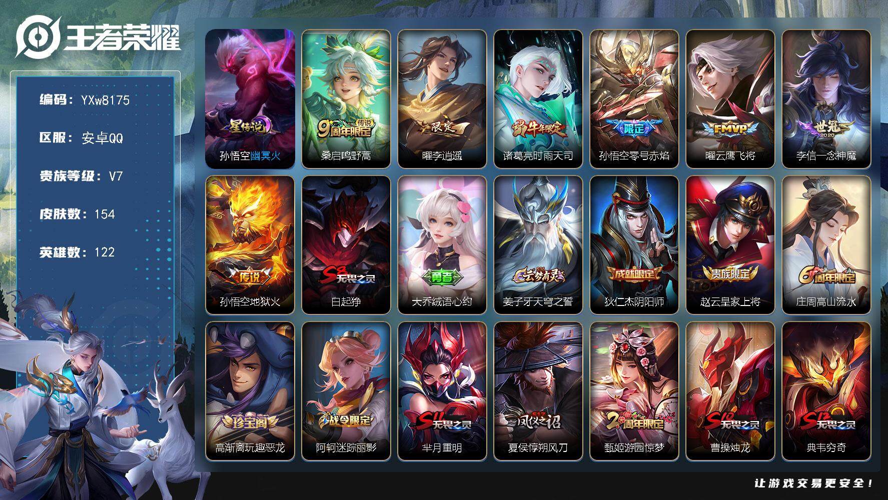 PX_2307417-??小号·幽冥火·李逍遥·时雨天司·零号赤焰·一念神魔·云鹰飞将·至尊宝·神威·可二次】YXw8175-安卓Q-122英雄-154皮肤-13王者印记-170铭文-贵族积分2w【贵族7】【·1星传说·7传说·1天幕】【因赛季更新游戏段付以上号为准!】 【星元皮肤】:孙悟空幽冥火 【天幕】:共赏芳华天幕 【传说皮肤】:桑启鸣野蒿,曜李逍遥,,诸葛亮时雨天司,孙悟空零号赤焰,曜云鹰飞将,李信一念神魔,孙悟空地狱火 【限定皮肤】:白起狰,大乔绒语心约,姜子牙天穹之誓,狄仁杰阴阳师,赵云皇家上将,庄周高山流水,高渐离玩趣恶龙,阿轲迷踪丽影,芈月重明,夏侯惇朔风刀,甄姬游园惊梦,曹操烛龙,典韦穷奇,狄仁杰魔术师,狄仁杰万华元夜,达摩沙漠行僧,项羽海滩派对,老夫子醍醐杖,程咬金演武夺筹,刘邦夺宝奇兵,兰陵王金庭之子,孙悟空至尊宝,孙悟空零号赤焰,孙悟空孙行者,牛魔御旌,李元芳云中旅人,钟馗驱傩正仪,杨玉环遇见飞天,雅典娜单词大作战,雅典娜黎明之约,蔡文姬繁星吟游,太乙真人饕餮,鬼谷子原初探秘者,鬼谷子五谷丰年,诸葛亮时雨天司,苏烈千军破阵,百里玄策原初追逐者,弈星混沌棋,梦奇顽趣,沈梦溪大漠名商,明世隐疑决卦,裴擒虎李小龙,裴擒虎擒涛扼浪,狂铁御狮,米莱狄御霄,云中君纤云弄巧,上官婉儿天狼绘梦者,曜李逍遥,,蒙犽狂想玩偶喵,鲁班大师探海日志,桑启海盐诗旅,阿古朵江河有灵,张良古海寻踪,刘邦剑破天穹,周瑜熔金海岸 【年限皮肤】:诸葛亮时雨天司,马超神威 【赛季限定】:白起狰,芈月重明,夏侯惇朔风刀,曹操烛龙,典韦穷奇,狄仁杰万华元夜,达摩沙漠行僧,老夫子醍醐杖,程咬金演武夺筹,兰陵王金庭之子,张良古海寻踪,牛魔御旌,李元芳云中旅人,钟馗驱傩正仪,雅典娜黎明之约,太乙真人饕餮,鬼谷子原初探秘者,苏烈千军破阵,百里玄策原初追逐者,弈星混沌棋,梦奇顽趣,沈梦溪大漠名商,明世隐疑决卦,裴擒虎擒涛扼浪,狂铁御狮,米莱狄御霄,鲁班大师探海日志,桑启海盐诗旅,刘邦剑破天穹,姜子牙天穹之誓 【战令限定】:阿轲迷踪丽影,刘邦夺宝奇兵,雅典娜单词大作战,蒙犽狂想玩偶喵 【史诗皮肤】:项羽苍穹之光,赵云皇家上将,赵云未来纪元,甄姬冰雪圆舞曲,王昭君偶像歌手,狄仁杰魔术师,宫本武藏鬼剑武藏,孙尚香水果甜心,嬴政摇滚巨星,妲己魅力维加斯,妲己女仆咖啡,墨子金属风暴,吕布圣诞狂欢,曹操幽灵船长,吕布末日机甲,孙悟空至尊宝,花木兰水晶猎龙者,夏侯惇乘风破浪,小乔缤纷独角兽,兰陵王暗隐猎兽者,诸葛亮黄金分割率,甄姬游园惊梦,亚瑟心灵战警,安琪拉心灵骇客,百里守约特工魅影,铠曙光守护者,李元芳逐浪之夏,程咬金功夫厨神,杨玉环遇见飞天,孙策猫狗日记,狄仁杰鹰眼统帅,蔡文姬繁星吟游,阿轲迷踪丽影,马超神威,孙尚香时之恋人,上官婉儿天狼绘梦者,蒙犽狂想玩偶喵,百里玄策原初追逐者,裴擒虎李小龙,云中君纤云弄巧,孙悟空孙行者,庄周高山流水,雅典娜黎明之约,鬼谷子五谷丰年,梦奇顽趣,阿古朵江河有灵,牛魔星界战将 【其他皮肤】:项羽海滩派对,韩信教廷特使,韩信街头霸王,达摩大发明家,芈月红桃皇后,白起白色死神,扁鹊化身博士,安琪拉玩偶对对碰,妲己少女阿狸,典韦黄金武士,亚瑟死亡骑士,达摩拳王,宫本武藏万象初新,狄仁杰阴阳师,刘备纽约教父,关羽龙腾万里,白起狰,钟无艳海滩丽影,太乙真人饕餮,宫本武藏霸王丸,曹操烛龙,芈月重明,老夫子功夫老勺,典韦穷奇,李白敏锐之力,鬼谷子幻乐之宴,狂铁御狮,苏烈坚韧之力,大乔守护之力,米莱狄御霄,明世隐虹云星官,牛魔御旌,小乔丁香结,吕布野性能量,高渐离玩趣恶龙,沈梦溪鲨炮海盗猫,夏侯惇朔风刀,弈星混沌棋,明世隐疑决卦,刘邦夺宝奇兵,盾山圆桌骑士,老夫子醍醐杖,狂铁特工战影,廉颇无尽征程,鬼谷子原初探秘者,雅典娜单词大作战,狄仁杰万华元夜,刘禅秘密基地,露娜瓷语鉴心,程咬金演武夺筹,张良缤纷绘卷,钟馗驱傩正仪,鲁班大师乓乓大师,苏烈千军破阵,典韦铁甲之心,妲己紫罗兰之誓,达摩沙漠行僧,兰陵王金庭之子,沈梦溪大漠名商,李元芳云中旅人,桑启海盐诗旅,海月幻泉雾影,猪八戒潮玩探月行,裴擒虎擒涛扼浪,鲁班大师探海日志,姬小满零食大作战,张良古海寻踪,刘邦剑破天穹,姜子牙天穹之誓,周瑜熔金海岸,大乔绒语心约,东皇太一噬灭天穹,太乙真人谧流熔炉,典韦铁骨偃魂,钟无艳生化警戒,貂蝉异域舞娘,老夫子潮流仙人,王昭君精灵公主,狄仁杰锦衣卫,张良一千零一夜,孙膑未来旅行,孙悟空西部大镖客,后羿精灵王,钟馗地府判官,虞姬加勒比小姐,雅典娜战争女神,马可波罗激情绿茵,哪吒三太子,大乔伊势巫女,铠龙域领主,苏烈爱与和平,梦奇美梦成真,女娲尼罗河女神,明世隐占星师,公孙离花间舞,曜归虚梦演,镜冰刃幻境,司空震启蛰,金蝉前尘,桑启画中游 【内测皮肤】:高渐离玩趣恶龙,狂铁特工战影