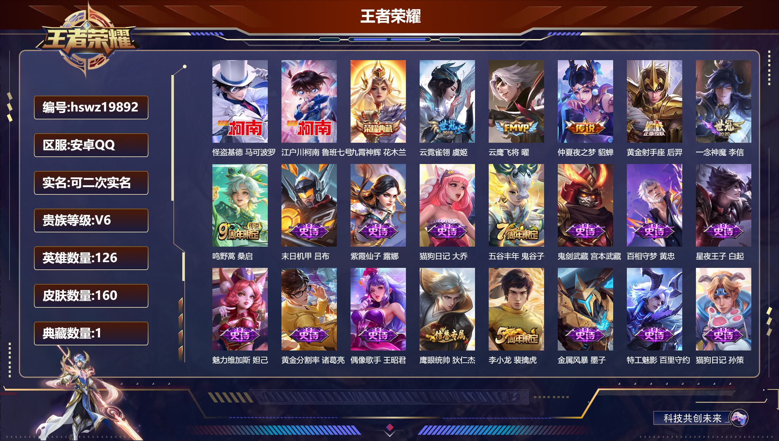 PX_2295666-实名:,可修改,贵族等级:,V6,英雄数:,125,皮肤数:,159,星传说:,金色仲夏夜,传说皮:,云霓雀翎,仲夏夜之梦,胖达荣荣,幻光神枪,限定皮:,李小龙,梁祝,神威,白虎志,朱雀志,高山流水,五谷丰年,怒海麟威,愿照·岁时盈