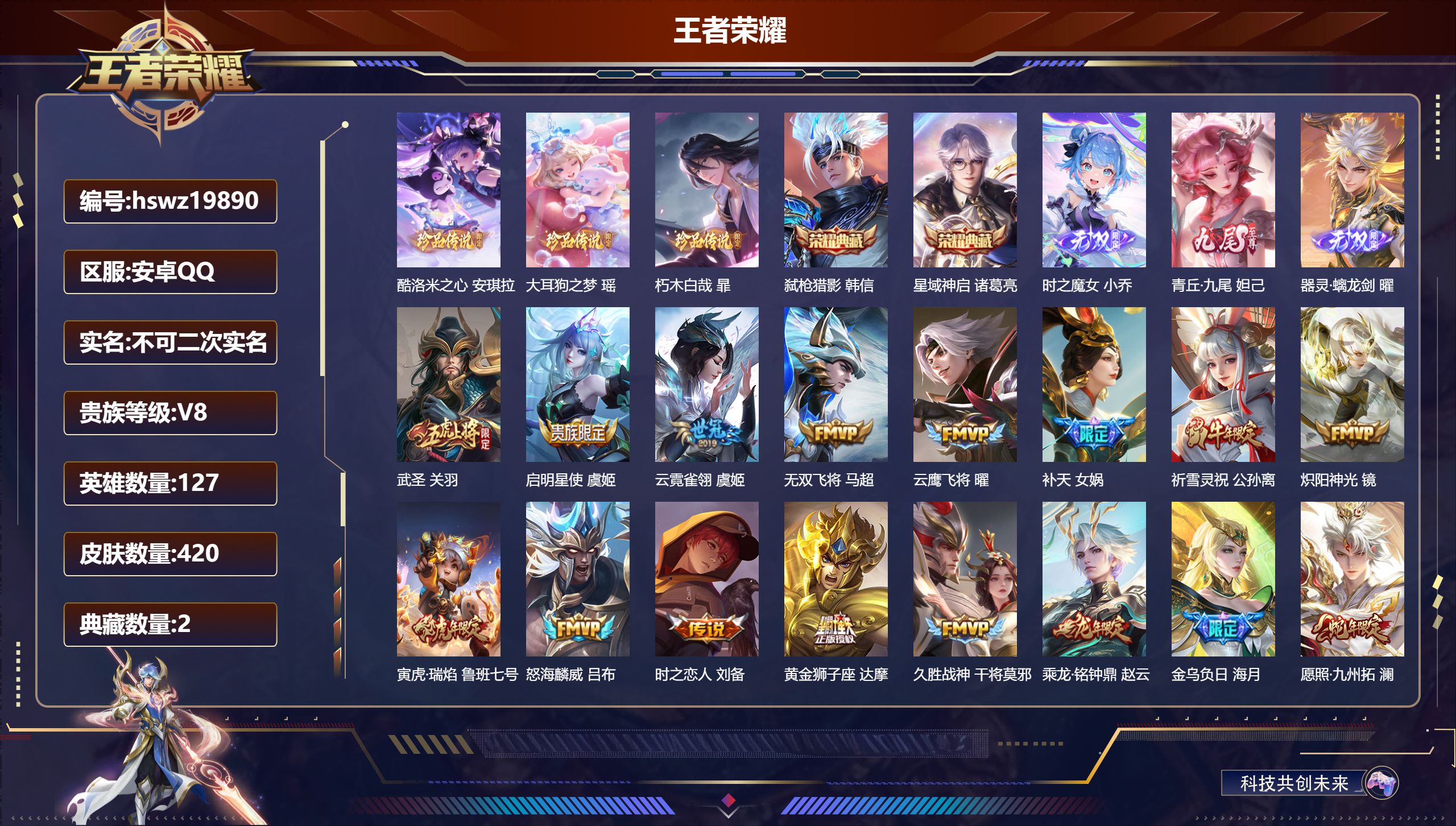 PX_2304735-Q/最强王者/420皮肤/127英雄/2典藏/0珍品无双/3无双/3珍品传说/23传说/127史诗/9稀有英雄 【3,珍品传说】酷洛米之心,安琪拉,大耳狗之梦,瑶,朽木白哉,暃, 【2,典藏皮肤】弑枪猎影,韩信,星域神启,诸葛亮, 【3,无双皮肤】时之魔女,小乔,青丘·九尾,妲己,器灵·螭龙剑,曜, 【23,传说皮肤】武圣,关羽,启明星使,虞姬,云霓雀翎,虞姬,无双飞将,马超,云鹰飞将,曜,补天,女娲,祈雪灵祝,公孙离,炽阳神光,镜,寅虎·瑞焰,鲁班七号,怒海麟威,吕布,时之恋人,刘备,黄金狮子座,达摩,久胜战神,干将莫邪,乘龙·铭钟鼎,赵云,金乌负日,海月,愿照·九州拓,澜,黄金天蝎座,墨子,神树通天,后羿,幻光神枪,云缨,愿照·山河定,司空震,愿照·岁时盈,虞姬,愿照·千秋盛,女娲,鸣野蒿,桑启, 【127,史诗皮肤】电玩小子,鲁班七号,末日机甲,吕布,蔬乡物语,鲁班七号,紫霞仙子,露娜,百解令,蒙犽,高山流水,庄周,银河之约,李元芳,雪夜绮愿,周瑜,暗渊魔法,司马懿,暗影游猎,马可波罗,天秀·启明,杨戬,狮舞东方,鲁班七号,猫狗日记,大乔,妄想食味,姬小满,德古拉伯爵,刘邦,山海·玄木吟,马可波罗,心灵战警,亚瑟,五谷丰年,鬼谷子,无心,元歌,巫礼祀神,少司缘,鬼剑武藏,宫本武藏,迷踪丽影,阿轲,星夜王子,白起,寅虎·心曲,杨玉环,至美·乘鲤谣,西施,无限星赏官,公孙离,地狱燃心,司空震,摇滚巨星,嬴政,电玩高手,狂铁,顽趣,梦奇,修罗,橘右京,拒霜思,嫦娥,魅力维加斯,妲己,黄金分割率,诸葛亮,偶像歌手,王昭君,荣光圣徽,蒙恬,女仆咖啡,妲己,赏金猎手,澜,星界游侠,暃,晚萤,娜可露露,猪悟能,猪八戒,舞动绿茵,蔡文姬,暗夜贵公子,嬴政,鹰眼统帅,狄仁杰,大圣娶亲,孙悟空,孙行者,孙悟空,李小龙,裴擒虎,光弋星穹,莱西奥,纤云弄巧,云中君,龙骑士,墨子,金属风暴,墨子,特工魅影,百里守约,猫狗日记,孙策,原初追逐者,百里玄策,逐浪之夏,李元芳,未来纪元,赵云,藏狐·褐绒,老夫子,引擎之心,赵云,灵蛊蚀心,扁鹊,雪豹·霜爪,百里守约,黎明之约,雅典娜,石田雨龙,后羿,优雅恋人,嬴政,鸭鸭历险记,刘禅,驭风魔法,戈娅,魔术师,狄仁杰,热力回旋,百里玄策,埋骨钱,暃,龙之律动,狂铁,顽岩魄,蒙犽,皇家上将,赵云,冰冠公主,雅典娜,功夫厨神,程咬金,梁祝,上官婉儿,电玩·爆裂旋风,刘禅,天才门将,刘禅,圣诞恋歌,貂蝉,水晶猎龙者,花木兰,撼地雄心,廉颇,涂山容容,公孙离,破空之剑,亚连,一生所爱,露娜,怒海争锋,黄忠,圣诞狂欢,吕布,青焰无极,镜,魅语,不知火舞,群星魔术团,上官婉儿,器灵·浮梦炉,赵怀真,夏日便利店,蔡文姬,圣诞老人,老夫子,星界战将,牛魔,地狱岩魂,廉颇,茶境仙,孙膑,蔷薇恋人,孙尚香,冰雪圆舞曲,甄姬,火炮绅士,黄忠,千年之狐,李白,节奏热浪,阿轲,暗夜猫娘,阿轲,织梦人,西施,超时空战士,钟无艳,曙光守护者,铠,万灵启世,女娲,寅虎·展翼,孙膑,心灵骇客,安琪拉,乘龙·聚宝船,安琪拉,箭羽风息,伽罗,乱世虎臣,张飞,百相守梦,周瑜,吟游魔法,明世隐,琥珀纪元,伽罗,王者之锤,钟无艳,绅士熊喵,刘禅,缤纷独角兽,小乔,百相守梦,百里守约,蓝屏警告,典韦,真爱魔法,干将莫邪,时之恋人,孙尚香,水果甜心,孙尚香,瑰影绮梦,芈月,化蝶舞,阿轲,江河有灵,阿古朵,狼魂孤将,苍,绮世丹青,狄仁杰,幽灵船长,曹操,乘风破浪,夏侯惇,暗隐猎兽者,兰陵王, 【181,勇者皮肤】时空谍影,海诺,玲珑珍味,西施,圆桌骑士,盾山,爱心护理,阿轲,太极少年,赵怀真,沙漠行僧,达摩,大漠名商,沈梦溪,暖冬絮语,程咬金,缤纷绘卷,张良,纽约教父,刘备,拳王,达摩,大发明家,达摩,龙舞盛年,沈梦溪,乐园追猎者,白起,丁香结,小乔,功夫炙烤,廉颇,铁甲之心,典韦,沉稳之力,孙尚香,幻夜卜梦,芈月,海盐诗旅,桑启,幻泉雾影,海月,朔风刀,夏侯惇,醍醐杖,老夫子,归虚梦演,孙膑,汉昭烈帝,刘备,热血海滩,哪吒,白色死神,白起,黑桃队长,鲁班七号,黄金武士,典韦,王牌新星,海月,落雪兰心,甄姬,阴阳师,狄仁杰,次元突破,哪吒,古海寻踪,张良,牛运亨通,牛魔,科学大爆炸,项羽,戏梦巡演,空空儿,功夫老勺,老夫子,西部大镖客,牛魔,鲨炮海盗猫,沈梦溪,虎啸剑宗,刘邦,海滩派对,项羽,完美运算,后羿,万华元夜,狄仁杰,无尽征程,廉颇,克喵,鬼谷子,制霸全明星,牛魔,踏浪烽翎,莱西奥,演武夺筹,程咬金,红桃皇后,芈月,奇妙博物学,庄周,西部游侠,莱西奥,野性能量,吕布,哥特玫瑰,露娜,守护之力,大乔,无双福将,程咬金,瓷语鉴心,露娜,原初探秘者,鬼谷子,潮玩探月行,猪八戒,鸿运当头,亚瑟,天穹祈灯,鬼谷子,决胜大满贯,曹操,疑决卦,明世隐,化身博士,扁鹊,潮玩骑士王,亚瑟,阿尔法小队,后羿,无尽旅途,扁鹊,五福同心,张飞,夜都怪侠,白起,金色潮汐,朵莉亚,次元傲视,杨戬,星际陆战队,程咬金,幻乐之宴,鬼谷子,虹云星官,明世隐,潮玩牛仔,马可波罗,救世之瞳,扁鹊,死亡骑士,亚瑟,浪漫序章,刘备,敏锐之力,李白,危途狂花,戈娅,胡桃狂想曲,蒙犽,破局者,亚连,幽兰居士,张良,玩偶对对碰,安琪拉,掌控之力,诸葛亮,海滩丽影,钟无艳,圣弓游侠,后羿,忍·炎影,赵云,雪境奇遇,西施,炽热元素使,姜子牙,坚韧之力,苏烈,唤灵魔甲,刘禅,万事如意,刘备,逐霄战戟,吕布,擒涛扼浪,裴擒虎,乓乓大师,鲁班大师,探海日志,鲁班大师,天使之翼,孙膑,雾都夜雨,干将莫邪,兔女郎,花木兰,龙腾万里,关羽,流音漫舞,艾琳,金庭之子,兰陵王,未来纪元,宫本武藏,罗小黑战记,哪吒,千军破阵,苏烈,往忆晖光,明世隐,零食大作战,姬小满,荣光之誓,亚瑟,
