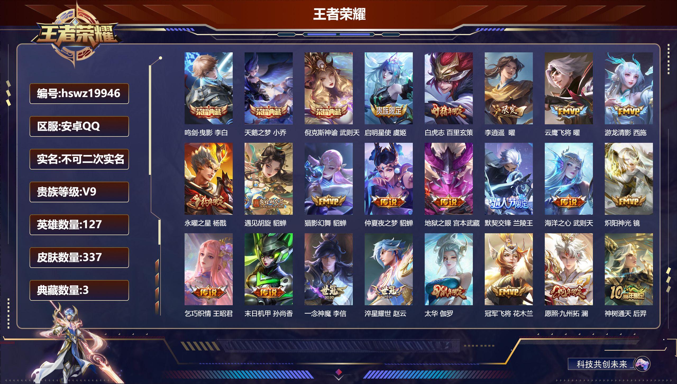 PX_2306420-Q/绝世王者/337皮肤/127英雄/3典藏/0珍品无双/0无双/0珍品传说/22传说/106史诗/9稀有英雄 【3,典藏皮肤】鸣剑·曳影,李白,天鹅之梦,小乔,倪克斯神谕,武则天, 【22,传说皮肤】启明星使,虞姬,白虎志,百里玄策,李逍遥,,曜,云鹰飞将,曜,游龙清影,西施,永曜之星,杨戬,遇见胡旋,貂蝉,猫影幻舞,貂蝉,仲夏夜之梦,貂蝉,地狱之眼,宫本武藏,默契交锋,兰陵王,海洋之心,武则天,炽阳神光,镜,乞巧织情,王昭君,末日机甲,孙尚香,一念神魔,李信,淬星耀世,赵云,太华,伽罗,冠军飞将,花木兰,愿照·九州拓,澜,神树通天,后羿,幻光神枪,云缨, 【106,史诗皮肤】奔雷神使,牛魔,霸王别姬,项羽,时之奇旅,安琪拉,白昼王子,嬴政,逐梦之星,马可波罗,紫霞仙子,露娜,高山流水,庄周,银河之约,李元芳,匿光追影者,镜,暗渊魔法,司马懿,暗影游猎,马可波罗,冰霜恋舞曲,干将莫邪,狮舞东方,鲁班七号,猫狗日记,大乔,德古拉伯爵,刘邦,心灵战警,亚瑟,鬼剑武藏,宫本武藏,星夜王子,白起,寅虎·心曲,杨玉环,无限星赏官,公孙离,遇见飞天,杨玉环,摇滚巨星,嬴政,冰锋战神,关羽,蜜橘之夏,公孙离,修罗,橘右京,拒霜思,嫦娥,魅力维加斯,妲己,黄金分割率,诸葛亮,乐园奇幻夜,钟馗,如梦令,嫦娥,偶像歌手,王昭君,梅西,裴擒虎,女仆咖啡,妲己,天降福星,梦奇,晚萤,娜可露露,猪悟能,猪八戒,遇见神鹿,瑶,舞动绿茵,蔡文姬,繁星吟游,蔡文姬,暗夜贵公子,嬴政,鹰眼统帅,狄仁杰,胡桃异想国,米莱狄,白晶晶,芈月,大圣娶亲,孙悟空,飞衡,韩信,孙行者,孙悟空,李小龙,裴擒虎,纤云弄巧,云中君,驯魔猎人,兰陵王,金属风暴,墨子,傲雪梅枪,韩信,特工魅影,百里守约,猫狗日记,孙策,原初追逐者,百里玄策,逐浪之夏,李元芳,时之祈愿,云中君,未来纪元,赵云,灵蛊蚀心,扁鹊,朱雀志,百里守约,黎明之约,雅典娜,魔术师,狄仁杰,神威,马超,皇家上将,赵云,冰冠公主,雅典娜,至尊宝,孙悟空,辉光之辰,后羿,功夫厨神,程咬金,梁祝,上官婉儿,天才门将,刘禅,圣诞恋歌,貂蝉,水晶猎龙者,花木兰,涂山容容,公孙离,一生所爱,露娜,御风骁将,吕布,圣诞狂欢,吕布,魅语,不知火舞,器灵·浮梦炉,赵怀真,天狼绘梦者,上官婉儿,圣诞老人,老夫子,地狱岩魂,廉颇,茶境仙,孙膑,虎魄,张飞,冰雪圆舞曲,甄姬,默契交锋,花木兰,航海奇遇记,老夫子,千年之狐,李白,节奏热浪,阿轲,女儿国国王,甄姬,游园惊梦,甄姬,曙光守护者,铠,万灵启世,女娲,瑞麟志,花木兰,心灵骇客,安琪拉,箭羽风息,伽罗,乱世虎臣,张飞,万物之道,弈星,缤纷独角兽,小乔,蓝屏警告,典韦,天狼狩猎者,裴擒虎,真爱魔法,干将莫邪,水果甜心,孙尚香,狂想玩偶喵,蒙犽,化蝶舞,阿轲,幽灵船长,曹操,乘风破浪,夏侯惇,暗隐猎兽者,兰陵王, 【123,勇者皮肤】圆桌骑士,盾山,烛龙,曹操,爱心护理,阿轲,星际陆战队,达摩,沙漠行僧,达摩,缤纷绘卷,张良,纽约教父,刘备,拳王,达摩,大发明家,达摩,龙舞盛年,沈梦溪,丁香结,小乔,功夫炙烤,廉颇,铁甲之心,典韦,沉稳之力,孙尚香,幻夜卜梦,芈月,海盐诗旅,桑启,朔风刀,夏侯惇,醍醐杖,老夫子,朔望之晖,女娲,归虚梦演,孙膑,汉昭烈帝,刘备,白色死神,白起,黑桃队长,鲁班七号,黄金武士,典韦,夺宝奇兵,刘邦,御旌,牛魔,阴阳师,狄仁杰,炼金王,扁鹊,致命风华,阿轲,次元突破,哪吒,古海寻踪,张良,科学大爆炸,项羽,功夫老勺,老夫子,西部大镖客,牛魔,鲨炮海盗猫,沈梦溪,虎啸剑宗,刘邦,海滩派对,项羽,万华元夜,狄仁杰,无尽征程,廉颇,制霸全明星,牛魔,踏浪烽翎,莱西奥,演武夺筹,程咬金,红桃皇后,芈月,奇妙博物学,庄周,蜃楼王,庄周,猎兽之王,吕布,野性能量,吕布,哥特玫瑰,露娜,守护之力,大乔,无双福将,程咬金,原初探秘者,鬼谷子,星空之诺,沈梦溪,潮玩探月行,猪八戒,天穹祈灯,鬼谷子,西部大镖客,猪八戒,疑决卦,明世隐,如懿,安琪拉,化身博士,扁鹊,阿尔法小队,后羿,五福同心,张飞,次元傲视,杨戬,星际陆战队,程咬金,幻乐之宴,鬼谷子,霸王丸,宫本武藏,虹云星官,明世隐,潮玩牛仔,马可波罗,救世之瞳,扁鹊,赤莲之焰,周瑜,死亡骑士,亚瑟,敏锐之力,李白,危途狂花,戈娅,破局者,亚连,玩偶对对碰,安琪拉,掌控之力,诸葛亮,海滩丽影,钟无艳,圣弓游侠,后羿,忍·炎影,赵云,狰,白起,重明,芈月,炽热元素使,姜子牙,坚韧之力,苏烈,万事如意,刘备,死亡摇滚,高渐离,妖精王,孙膑,探海日志,鲁班大师,天使之翼,孙膑,兔女郎,花木兰,龙腾万里,关羽,罗小黑战记,哪吒,千军破阵,苏烈,花好人间,甄姬,万象初新,宫本武藏,御銮,盾山,单词大作战,雅典娜,时尚教父,姜子牙,秘密基地,刘禅,穷奇,典韦,教廷特使,韩信,街头霸王,韩信,云中旅人,李元芳,西部大镖客,孙悟空,神迹守卫,墨子,凯尔特女王,虞姬,进击墨子号,墨子,少女阿狸,妲己,混沌棋,弈星,御霄,米莱狄,契约魔法,米莱狄,幻想奇妙夜,王昭君,驱傩正仪,钟馗,神迹守卫,钟馗,命运角斗场,狂铁,御狮,狂铁,白执事,赵云,饕餮,太乙真人,罗小黑战记,张良,访茗客,马超,星梦巡礼,姜子牙,谧流熔炉,太乙真人,鹤鸣心笺,艾琳,逆浪荇歌,甄姬,玫蓝誓约,戈娅,景韶洛都,明世隐, 【84,其他皮肤】伊势巫女,大乔,金属狂潮,高渐离,前尘,金蝉,战争骑士,夏侯惇,圣殿之光,刘邦,芝加哥教父,黄忠,潮流仙人,老夫子,三太子,哪吒,棒球奇才,沈梦溪,极冰防御线,盾山,龙域领主,铠,生化警戒,钟无艳,死神来了,曹操,超能战警,曹操,花见巫女,伽罗,爱与和平,苏烈,未来旅行,孙膑,第七人偶,干将莫邪,万圣前夜,小乔