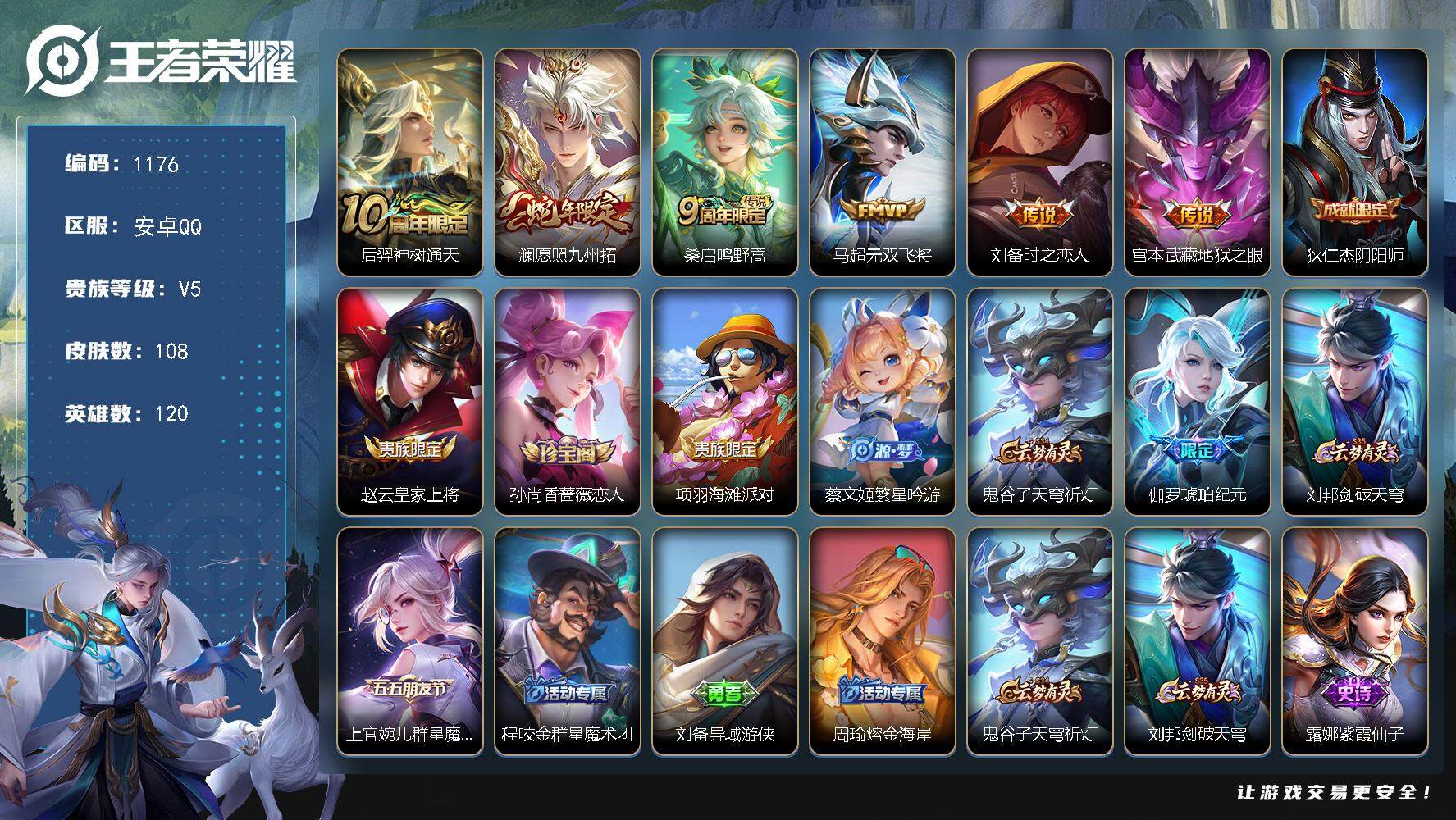 PX_2268053-【108皮肤6传说,澜愿照九州拓,马超无双飞将】安卓Q-V5-最强王者段位-120英雄-108皮肤-0典藏-0珍品无双-0无双-0珍品传说-6传说-29史诗 【英雄全皮】:孙权全皮 【传说皮肤】:后羿神树通天,澜愿照九州拓,桑启鸣野蒿,马超无双飞将,刘备时之恋人,宫本武藏地狱之眼 【限定皮肤】:狄仁杰阴阳师,赵云皇家上将,孙尚香蔷薇恋人,项羽海滩派对,蔡文姬繁星吟游,鬼谷子天穹祈灯,伽罗琥珀纪元,刘邦剑破天穹,上官婉儿群星魔术团,程咬金群星魔术团,刘备异域游侠,周瑜熔金海岸 【赛季限定】:鬼谷子天穹祈灯,刘邦剑破天穹 【史诗皮肤】:露娜紫霞仙子,赵云皇家上将,貂蝉圣诞恋歌,宫本武藏鬼剑武藏,孙尚香蔷薇恋人,孙尚香水果甜心,嬴政暗夜贵公子,妲己魅力维加斯,墨子金属风暴,吕布圣诞狂欢,曹操幽灵船长,吕布末日机甲,花木兰水晶猎龙者,兰陵王暗隐猎兽者,诸葛亮黄金分割率,铠曙光守护者,李元芳逐浪之夏,程咬金功夫厨神,狄仁杰鹰眼统帅,蔡文姬繁星吟游,司马懿暗渊魔法,夏洛特永昼,伽罗琥珀纪元,上官婉儿群星魔术团,刘禅鸭鸭历险记,狂铁龙之律动,周瑜百相守梦,黄忠百相守梦,女娲万灵启世 【其他皮肤】:项羽海滩派对,韩信教廷特使,韩信街头霸王,赵云白执事,赵云忍炎影,程咬金星际陆战队,白起白色死神,安琪拉玩偶对对碰,孙膑天使之翼,典韦黄金武士,亚瑟死亡骑士,甄姬花好人间,后羿阿尔法小队,狄仁杰阴阳师,关羽龙腾万里,诸葛亮掌控之力,李白敏锐之力,小乔丁香结,狂铁特工战影,盘古重装意志,鲁班大师乓乓大师,猪八戒潮玩探月行,亚连破局者,后羿完美运算,鬼谷子天穹祈灯,嫦娥漠中幻影,刘邦剑破天穹,程咬金群星魔术团,大司命暗都幽影,刘备异域游侠,周瑜熔金海岸,东皇太一噬灭天穹,太乙真人谧流熔炉,姜子牙星梦巡礼,明世隐景韶洛都,戈娅玫蓝誓约,刘备浪漫序章,钟馗虚灵犬护,沈梦溪鸭鸭历险记,苏烈春野闲踪,张良灵野札记,露娜命运加冕,姬小满小满鸭,白起死霸装,甄姬逆浪荇歌,云中君云械蓝图,孙策百相守梦,庄周锦麟游梦,莱西奥踏浪烽翎,鬼谷子克喵,哪吒罗小黑战记,亚瑟荣光之誓,孙权径山谋武,艾琳鹤鸣心笺,孙悟空西部大镖客,马可波罗激情绿茵,杨戬埃及法老,东皇太一东海龙王,干将莫邪第七人偶,铠龙域领主,百里守约绝影神枪,公孙离花间舞,裴擒虎街头旋风,弈星踏雪寻梅,伽罗花见巫女,李信灼热之刃,盘古创世神祝,马超幸存者,澜孤猎,司空震启蛰,云缨赤焰之缨,金蝉前尘,暃碧珀绯影 【内测皮肤】:孙尚香蔷薇恋人,狂铁特工战影 【营地ID】:1767042022