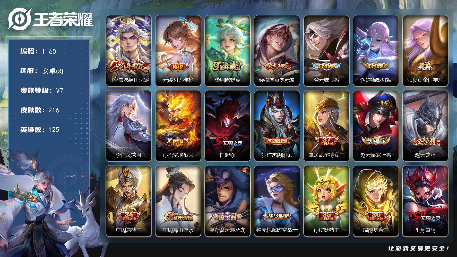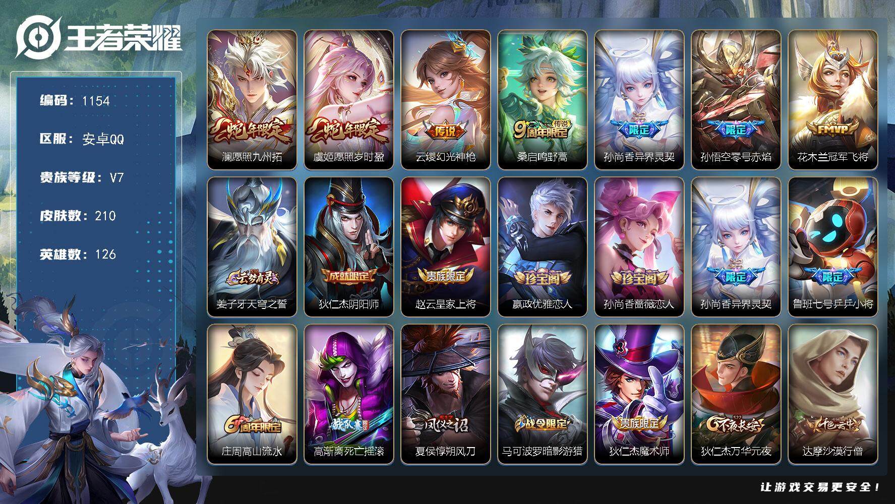 PX_2258954-【210皮7传说,愿照九州拓,愿照岁时盈,异界灵契,零号赤焰,至尊宝】安卓Q-V7-最强王者段位-126英雄-210皮肤-0典藏-0珍品无双-0无双-0珍品传说-7传说-59史诗 【传说皮肤】:澜愿照九州拓,虞姬愿照岁时盈,云缨幻光神枪,桑启鸣野蒿,孙尚香异界灵契,孙悟空零号赤焰,花木兰冠军飞将 【限定皮肤】:姜子牙天穹之誓,狄仁杰阴阳师,赵云皇家上将,嬴政优雅恋人,孙尚香蔷薇恋人,孙尚香异界灵契,鲁班七号乒乒小将,庄周高山流水,高渐离死亡摇滚,夏侯惇朔风刀,马可波罗暗影游猎,狄仁杰魔术师,狄仁杰万华元夜,达摩沙漠行僧,项羽海滩派对,老夫子醍醐杖,程咬金演武夺筹,韩信傲雪梅枪,兰陵王金庭之子,孙悟空至尊宝,孙悟空零号赤焰,孙悟空孙行者,后羿圣弓游侠,李元芳云中旅人,钟馗驱傩正仪,干将莫邪真爱魔法,雅典娜黎明之约,蔡文姬繁星吟游,鬼谷子原初探秘者,鬼谷子五谷丰年,苏烈千军破阵,弈星混沌棋,梦奇顽趣,沈梦溪大漠名商,明世隐疑决卦,裴擒虎李小龙,裴擒虎擒涛扼浪,云中君纤云弄巧,猪八戒西部大镖客,上官婉儿梁祝,鲁班大师探海日志,桑启海盐诗旅,阿古朵江河有灵,张良古海寻踪,蒙恬荣光圣徽,鬼谷子天穹祈灯,刘邦剑破天穹,程咬金群星魔术团,周瑜熔金海岸 【赛季限定】:夏侯惇朔风刀,狄仁杰万华元夜,达摩沙漠行僧,老夫子醍醐杖,程咬金演武夺筹,兰陵王金庭之子,张良古海寻踪,李元芳云中旅人,钟馗驱傩正仪,雅典娜黎明之约,鬼谷子原初探秘者,苏烈千军破阵,弈星混沌棋,梦奇顽趣,沈梦溪大漠名商,明世隐疑决卦,裴擒虎擒涛扼浪,鲁班大师探海日志,桑启海盐诗旅,鬼谷子天穹祈灯,蒙恬荣光圣徽,刘邦剑破天穹,姜子牙天穹之誓 【战令限定】:马可波罗暗影游猎,后羿圣弓游侠,干将莫邪真爱魔法,猪八戒西部大镖客 【史诗皮肤】:赵云皇家上将,貂蝉圣诞恋歌,甄姬冰雪圆舞曲,王昭君偶像歌手,狄仁杰魔术师,宫本武藏鬼剑武藏,孙尚香蔷薇恋人,孙尚香水果甜心,嬴政优雅恋人,嬴政暗夜贵公子,嬴政摇滚巨星,妲己魅力维加斯,墨子龙骑士,墨子金属风暴,吕布圣诞狂欢,李白千年之狐,吕布末日机甲,张飞乱世虎臣,韩信白龙吟,孙悟空至尊宝,花木兰水晶猎龙者,刘邦德古拉伯爵,兰陵王暗隐猎兽者,诸葛亮黄金分割率,雅典娜冰冠公主,安琪拉心灵骇客,百里守约特工魅影,白起星夜王子,阿轲节奏热浪,孙策猫狗日记,狄仁杰鹰眼统帅,上官婉儿梁祝,蔡文姬繁星吟游,瑶遇见神鹿,孙尚香时之恋人,马可波罗暗影游猎,裴擒虎李小龙,云中君纤云弄巧,鲁班七号乒乒小将,杨戬天秀启明,干将莫邪真爱魔法,沈梦溪月团寄思,孙悟空孙行者,庄周高山流水,雅典娜黎明之约,韩信傲雪梅枪,鬼谷子五谷丰年,梦奇顽趣,阿古朵江河有灵,蒙恬荣光圣徽,牛魔星界战将,弈星万物之道,赵怀真器灵浮梦炉,刘禅鸭鸭历险记,狂铁龙之律动,后羿石田雨龙,周瑜百相守梦,黄忠百相守梦,朵莉亚幻珠鲛人 【其他皮肤】:项羽海滩派对,韩信教廷特使,韩信街头霸王,露娜哥特玫瑰,达摩大发明家,赵云忍炎影,芈月红桃皇后,白起白色死神,牛魔西部大镖客,扁鹊救世之瞳,宫本武藏未来纪元,安琪拉玩偶对对碰,孙膑天使之翼,姜子牙时尚教父,妲己少女阿狸,典韦黄金武士,亚瑟死亡骑士,花木兰兔女郎,张飞五福同心,甄姬花好人间,刘备万事如意,宫本武藏万象初新,狄仁杰阴阳师,高渐离死亡摇滚,关羽龙腾万里,钟无艳海滩丽影,宫本武藏霸王丸,王昭君幻想奇妙夜,狂铁命运角斗场,老夫子功夫老勺,牛魔制霸全明星,孙尚香沉稳之力,李白敏锐之力,鬼谷子幻乐之宴,苏烈坚韧之力,大乔守护之力,明世隐虹云星官,小乔丁香结,沈梦溪鲨炮海盗猫,夏侯惇朔风刀,弈星混沌棋,哪吒次元突破,鲁班七号黑桃队长,明世隐疑决卦,老夫子醍醐杖,猪八戒西部大镖客,狂铁特工战影,廉颇无尽征程,鬼谷子原初探秘者,狄仁杰万华元夜,刘禅秘密基地,露娜瓷语鉴心,程咬金演武夺筹,张良缤纷绘卷,盘古重装意志,钟馗驱傩正仪,鲁班大师乓乓大师,苏烈千军破阵,后羿圣弓游侠,典韦铁甲之心,妲己紫罗兰之誓,马可波罗潮玩牛仔,达摩沙漠行僧,程咬金无双福将,兰陵王金庭之子,沈梦溪大漠名商,李元芳云中旅人,桑启海盐诗旅,猪八戒潮玩探月行,裴擒虎擒涛扼浪,鲁班大师探海日志,张良古海寻踪,鬼谷子天穹祈灯,廉颇功夫炙烤,刘邦剑破天穹,程咬金群星魔术团,大司命暗都幽影,姜子牙天穹之誓,周瑜熔金海岸,东皇太一噬灭天穹,苍苍林狼骑,太乙真人谧流熔炉,典韦铁骨偃魂,西施雪境奇遇,姜子牙星梦巡礼,少司缘灵卦秘语,明世隐景韶洛都,戈娅玫蓝誓约,刘备浪漫序章,钟馗虚灵犬护,沈梦溪鸭鸭历险记,苏烈春野闲踪,张良灵野札记,阿古朵布丁狗之约,露娜命运加冕,姬小满小满鸭,白起死霸装,甄姬逆浪荇歌,云中君云械蓝图,孙策百相守梦,庄周锦麟游梦,莱西奥踏浪烽翎,亚瑟荣光之誓,鲁班七号福禄兄弟,露娜绯红之刃,钟无艳生化警戒,貂蝉异域舞娘,曹操超能战警,张良一千零一夜,小乔万圣前夜,孙膑未来旅行,孙悟空西部大镖客,刘禅英喵野望,李白范海辛,钟馗地府判官,李元芳特种部队,虞姬加勒比小姐,马可波罗激情绿茵,杨戬埃及法老,哪吒三太子,诸葛亮星航指挥官,黄忠芝加哥教父,东皇太一东海龙王,干将莫邪第七人偶,铠龙域领主,百里守约绝影神枪,女娲尼罗河女神,裴擒虎街头旋风,米莱狄精准探案法,孙策海之征途,司马懿魇语军师,盾山极冰防御线,