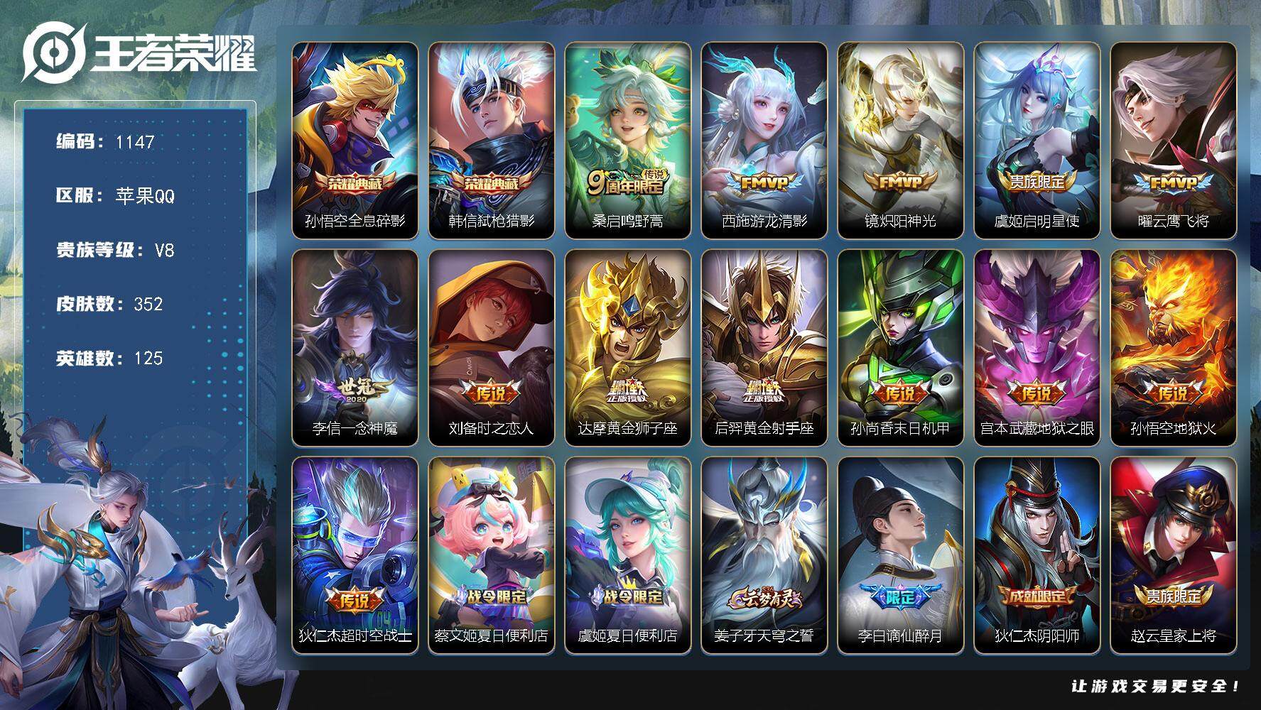 PX_2258921-【352皮13传说2典藏全息碎影,弑枪猎影,游龙清影,云鹰飞将,末日机甲,黄金狮子座】苹果Q-V8-尊贵铂金I段位-125英雄-352皮肤-2典藏-0珍品无双-0无双-0珍品传说-13传说-106史诗 【英雄全皮】:刘邦全皮,鬼谷子全皮,戈娅全皮,海诺全皮 【荣耀典藏】:孙悟空全息碎影,韩信弑枪猎影 【传说皮肤】:桑启鸣野蒿,西施游龙清影,镜炽阳神光,虞姬启明星使,曜云鹰飞将,李信一念神魔,刘备时之恋人,达摩黄金狮子座,后羿黄金射手座,孙尚香末日机甲,宫本武藏地狱之眼,孙悟空地狱火,狄仁杰超时空战士 【限定皮肤】:蔡文姬夏日便利店,虞姬夏日便利店,姜子牙天穹之誓,李白谪仙醉月,狄仁杰阴阳师,赵云皇家上将,赵云百木心枪,墨子神迹守卫,孙尚香蔷薇恋人,鲁班七号狮舞东方,钟无艳王者之锤,钟无艳超时空战士,白起夜都怪侠,芈月幻夜卜梦,吕布猎兽之王,元歌云间偶戏,元歌无心,甄姬女儿国国王,甄姬游园惊梦,甄姬落雪兰心,典韦蓝屏警告,马可波罗暗影游猎,狄仁杰魔术师,狄仁杰万华元夜,达摩星际陆战队,达摩沙漠行僧,项羽海滩派对,老夫子醍醐杖,老夫子航海奇遇记,程咬金演武夺筹,刘邦夺宝奇兵,韩信逐梦之影,王昭君午后时光,兰陵王驯魔猎人,兰陵王金庭之子,亚瑟潮玩骑士王,后羿圣弓游侠,李元芳云中旅人,虞姬启明星使,钟馗神迹守卫,钟馗驱傩正仪,女娲朔望之晖,雅典娜单词大作战,雅典娜黎明之约,蔡文姬繁星吟游,鬼谷子原初探秘者,鬼谷子五谷丰年,黄忠火炮绅士,苏烈千军破阵,百里玄策原初追逐者,百里守约朱雀志,梦奇顽趣,公孙离玉兔公主,沈梦溪星空之诺,沈梦溪大漠名商,明世隐疑决卦,明世隐吟游魔法,裴擒虎天狼狩猎者,裴擒虎李小龙,裴擒虎擒涛扼浪,狂铁电玩高手,米莱狄胡桃异想国,云中君纤云弄巧,云中君时之祈愿,猪八戒西部大镖客,嫦娥拒霜思,嫦娥暖冬兔眠,西施玲珑珍味,蒙犽狂想玩偶喵,鲁班大师探海日志,镜匿光追影者,桑启海盐诗旅,暃星界游侠,戈娅驭风魔法,艾琳女武神,艾琳流音漫舞,司空震地狱燃心,阿古朵江河有灵,张良古海寻踪,蒙犽百解令,高渐离燃音魔法,妲己灵卜魔法,鬼谷子天穹祈灯,伽罗琥珀纪元,沈梦溪龙舞盛年,鲁班七号蔬乡物语,李元芳蔬乡物语,刘邦剑破天穹,上官婉儿群星魔术团,程咬金群星魔术团,镜青焰无极,项羽苍威无极,海诺心动手记,刘备异域游侠,周瑜熔金海岸 【年限皮肤】:百里守约朱雀志,马超神威 【赛季限定】:狄仁杰万华元夜,达摩沙漠行僧,老夫子醍醐杖,程咬金演武夺筹,兰陵王金庭之子,张良古海寻踪,李元芳云中旅人,钟馗驱傩正仪,雅典娜黎明之约,鬼谷子原初探秘者,苏烈千军破阵,百里玄策原初追逐者,梦奇顽趣,沈梦溪大漠名商,明世隐疑决卦,裴擒虎擒涛扼浪,鲁班大师探海日志,桑启海盐诗旅,鬼谷子天穹祈灯,刘邦剑破天穹,姜子牙天穹之誓 【战令限定】:墨子神迹守卫,蔡文姬夏日便利店,虞姬夏日便利店,鲁班七号狮舞东方,钟无艳超时空战士,白起夜都怪侠,芈月幻夜卜梦,吕布猎兽之王,元歌云间偶戏,甄姬落雪兰心,典韦蓝屏警告,马可波罗暗影游猎,达摩星际陆战队,老夫子航海奇遇记,刘邦夺宝奇兵,王昭君午后时光,兰陵王驯魔猎人,艾琳流音漫舞,亚瑟潮玩骑士王,后羿圣弓游侠,钟馗神迹守卫,女娲朔望之晖,雅典娜单词大作战,黄忠火炮绅士,沈梦溪星空之诺,明世隐吟游魔法,狂铁电玩高手,米莱狄胡桃异想国,猪八戒西部大镖客,嫦娥暖冬兔眠,西施玲珑珍味,蒙犽狂想玩偶喵,司空震地狱燃心,暃星界游侠,戈娅驭风魔法,高渐离燃音魔法,妲己灵卜魔法,鲁班七号蔬乡物语,李元芳蔬乡物语,镜青焰无极,项羽苍威无极 【史诗皮肤】:鲁班七号电玩小子,露娜紫霞仙子,阿轲暗夜猫娘,钟无艳王者之锤,赵云皇家上将,赵云未来纪元,貂蝉圣诞恋歌,甄姬冰雪圆舞曲,王昭君偶像歌手,狄仁杰魔术师,廉颇地狱岩魂,宫本武藏鬼剑武藏,孙尚香蔷薇恋人,孙尚香水果甜心,嬴政暗夜贵公子,嬴政摇滚巨星,妲己魅力维加斯,妲己女仆咖啡,墨子金属风暴,吕布圣诞狂欢,刘禅绅士熊喵,曹操幽灵船长,李白千年之狐,吕布末日机甲,张飞乱世虎臣,花木兰水晶猎龙者,刘邦德古拉伯爵,韩信逐梦之影,夏侯惇乘风破浪,小乔缤纷独角兽,兰陵王暗隐猎兽者,诸葛亮黄金分割率,甄姬游园惊梦,亚瑟心灵战警,雅典娜冰冠公主,安琪拉心灵骇客,百里守约特工魅影,铠曙光守护者,蔡文姬舞动绿茵,刘禅天才门将,李元芳逐浪之夏,程咬金功夫厨神,白起星夜王子,阿轲节奏热浪,孙策猫狗日记,大乔猫狗日记,百里守约朱雀志,典韦蓝屏警告,伽罗箭羽风息,裴擒虎天狼狩猎者,鲁班七号狮舞东方,狄仁杰鹰眼统帅,公孙离无限星赏官,兰陵王驯魔猎人,蔡文姬繁星吟游,娜可露露晚萤,小乔青蛇,不知火舞魅语,橘右京修罗,瑶遇见神鹿,马超神威,马可波罗暗影游猎,蒙犽狂想玩偶喵,百里玄策原初追逐者,裴擒虎李小龙,云中君纤云弄巧,元歌云间偶戏,米莱狄胡桃异想国,百里玄策热力回旋,老夫子航海奇遇记,嫦娥拒霜思,镜匿光追影者,黄忠火炮绅士,雅典娜黎明之约,甄姬女儿国国王,云中君时之祈愿,夏洛特永昼,赵云百木心枪,公孙离玉兔公主,澜赏金猎手,明世隐吟游魔法,貂蝉唤灵魅影,高渐离天秀音浪,狂铁电玩高手,钟无艳超时空战士,鬼谷子五谷丰年,元歌无心,梦奇顽趣,暃星界游侠,戈娅驭风魔法,莱西奥末日机甲,司空震地狱燃心,阿古朵江河有灵,蒙犽百解令,妲己灵卜魔法,高渐离燃