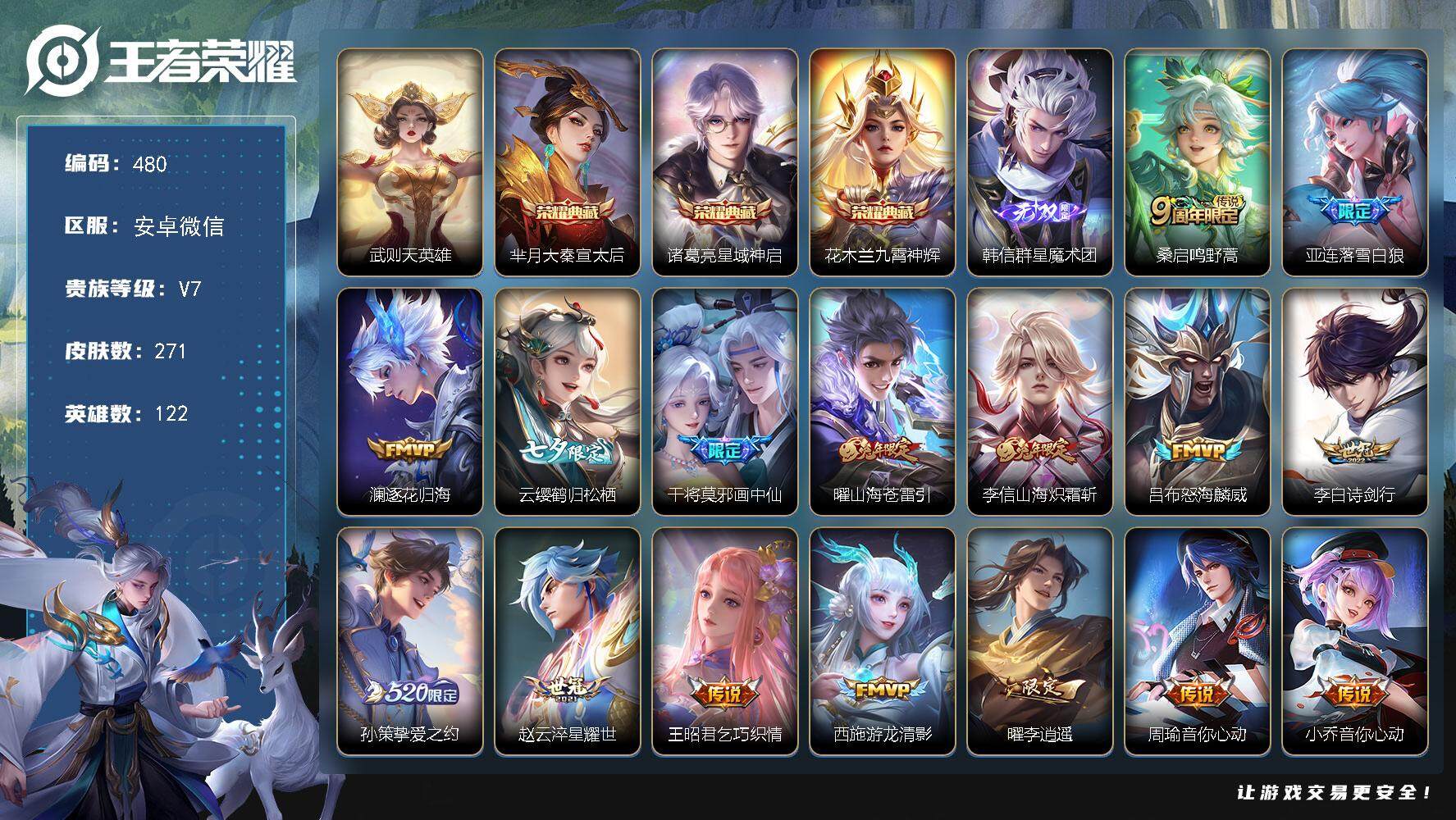 PX_2004191-愿照九州拓,愿照山河定,云鹰飞将,胖达荣荣,安卓Q-V7-267皮肤8传说-(可二次),242幸运值, 【全皮英雄】,司空震全皮,影全皮,金蝉全皮 【传说】,惊梅引,幻光神枪,愿照九州拓,愿照山河定,鸣野蒿,炽阳神光,云鹰飞将,胖达荣荣, 【热门】岱宗,飞衡,傲雪梅枪,唐三藏,拒霜思,降魔,银河之约,黎明之约,梁祝,狂想玩偶喵,玫瑰异探,器灵浮梦炉,战舞者,燃音魔法,伽罗琥珀纪元,百解令,关羽百相守梦,电玩爆裂旋风,原初探秘者,李小龙,暗隐猎兽者,猫狗日记男,金属风暴,特工魅影,曙光守护者,特工战影,青蛇,蔷薇恋人,舞动绿茵,妄想食味,千年之狐,紫霞仙子,功夫厨神,心灵骇客,圣诞恋歌,幽灵船长,乘风破浪,圣诞狂欢,永昼,节奏热浪,暗夜贵公子,偶像歌手,街头霸王,摇滚巨星,缤纷独角兽,鬼剑武藏,德古拉伯爵,单词大作战,冰雪圆舞曲,青焰无极,花好人间,苍威无极,疑决卦,醍醐杖,万华元夜,东方不败,演武夺筹,群星魔术团程咬金,驱傩正仪,千军破阵,拳王,沙漠行僧,女仆咖啡,金庭之子,大漠名商,敏锐之力,云中旅人,丁香结,海盐诗旅,皇家上将,擒涛扼浪,魅力维加斯,探海日志,水果甜心,古海寻踪,蔬乡物语鲁班,天穹祈灯,高山流水,无心,驭风魔法,地狱燃心,江河有灵,荣光圣徽,纤云弄巧,胡桃异想国,电玩高手,火炮绅士,五谷丰年,真爱魔法,遇见飞天,乱世虎臣,航海奇遇记,鹰眼统帅,魔术师,8印记-贵族积分24597-123英雄-营地ID:1862740182,
