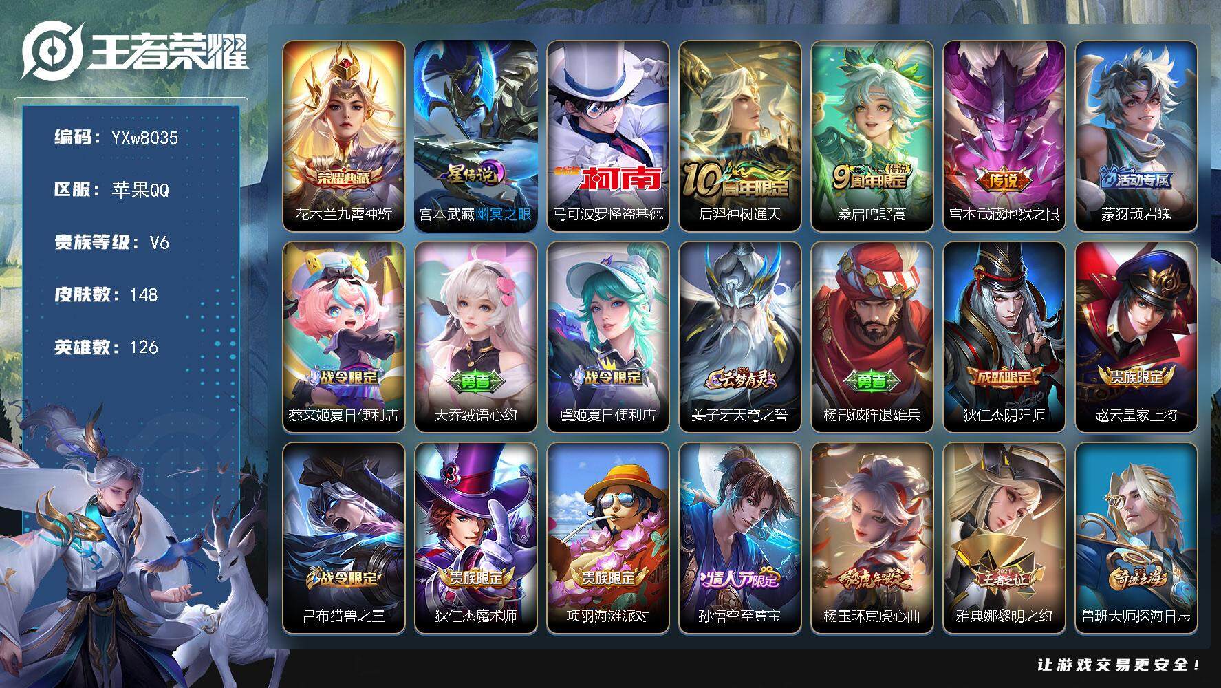 PX_2306088-??价比·九霄神辉·马可怪盗基德·杨玉环寅虎心曲·可二次】YXw8035-苹果Q-126英雄-148皮肤-9王者印记-110铭文-贵族积分1w【贵族6】【1典藏·1珍品·1星传说·3传说·4按键】【因赛季更新游戏段付以上号为准!】 【荣耀典藏】:花木兰九霄神辉 【珍品传说】:马可波罗怪盗基德 【星元皮肤】:宫本武藏幽冥之眼 【传说皮肤】:后羿神树通天,桑启鸣野蒿,宫本武藏地狱之眼 【限定皮肤】:蒙犽顽岩魄,蔡文姬夏日便利店,大乔绒语心约,虞姬夏日便利店,姜子牙天穹之誓,杨戬破阵退雄兵,狄仁杰阴阳师,赵云皇家上将,吕布猎兽之王,狄仁杰魔术师,项羽海滩派对,孙悟空至尊宝,杨玉环寅虎心曲,雅典娜黎明之约,鲁班大师探海日志,阿古朵江河有灵,张良古海寻踪,蒙恬荣光圣徽,高渐离燃音魔法,妲己灵卜魔法,鬼谷子天穹祈灯,沈梦溪龙舞盛年,李元芳蔬乡物语,刘邦剑破天穹,上官婉儿群星魔术团,程咬金群星魔术团,镜青焰无极,项羽苍威无极,周瑜熔金海岸 【年限皮肤】:杨玉环寅虎心曲 【赛季限定】:张良古海寻踪,雅典娜黎明之约,鲁班大师探海日志,鬼谷子天穹祈灯,蒙恬荣光圣徽,刘邦剑破天穹,姜子牙天穹之誓 【战令限定】:蔡文姬夏日便利店,虞姬夏日便利店,吕布猎兽之王,高渐离燃音魔法,妲己灵卜魔法,李元芳蔬乡物语,镜青焰无极,项羽苍威无极 【史诗皮肤】:赵云皇家上将,貂蝉圣诞恋歌,甄姬冰雪圆舞曲,王昭君偶像歌手,狄仁杰魔术师,宫本武藏鬼剑武藏,孙尚香水果甜心,嬴政暗夜贵公子,嬴政摇滚巨星,妲己魅力维加斯,墨子金属风暴,吕布圣诞狂欢,刘禅绅士熊喵,曹操幽灵船长,李白千年之狐,吕布末日机甲,张飞乱世虎臣,孙悟空至尊宝,花木兰水晶猎龙者,夏侯惇乘风破浪,小乔缤纷独角兽,兰陵王暗隐猎兽者,亚瑟心灵战警,雅典娜冰冠公主,安琪拉心灵骇客,百里守约特工魅影,刘禅天才门将,白起星夜王子,阿轲节奏热浪,伽罗箭羽风息,狄仁杰鹰眼统帅,不知火舞魅语,孙尚香时之恋人,沈梦溪月团寄思,司马懿暗渊魔法,雅典娜黎明之约,杨玉环寅虎心曲,阿古朵江河有灵,妲己灵卜魔法,高渐离燃音魔法,蒙恬荣光圣徽,上官婉儿群星魔术团,镜青焰无极,蔡文姬夏日便利店,蒙犽顽岩魄,姬小满战舞者,亚连破空之剑,牛魔星界战将,弈星万物之道,阿轲化蝶舞,狂铁龙之律动,黄忠百相守梦,公孙离涂山容容,女娲万灵启世 【其他皮肤】:项羽海滩派对,韩信街头霸王,露娜哥特玫瑰,赵云白执事,武则天东方不败,扁鹊救世之瞳,安琪拉玩偶对对碰,典韦黄金武士,亚瑟死亡骑士,达摩拳王,花木兰兔女郎,甄姬花好人间,后羿阿尔法小队,狄仁杰阴阳师,刘备纽约教父,关羽龙腾万里,王昭君幻想奇妙夜,老夫子功夫老勺,诸葛亮掌控之力,吕布猎兽之王,小乔丁香结,沈梦溪鲨炮海盗猫,鲁班七号黑桃队长,狂铁特工战影,鲁班大师乓乓大师,程咬金无双福将,刘邦虎啸剑宗,猪八戒潮玩探月行,太乙真人劲辣红锅,鲁班大师探海日志,张良古海寻踪,鬼谷子天穹祈灯,妲己灵卜魔法,廉颇功夫炙烤,沈梦溪龙舞盛年,钟无艳春野之旅,李元芳蔬乡物语,刘邦剑破天穹,程咬金群星魔术团,项羽苍威无极,杨戬破阵退雄兵,貂蝉长夏之忆,姜子牙天穹之誓,周瑜熔金海岸,虞姬夏日便利店,大乔绒语心约,孙悟空神迹守卫,盘古敬我三分,东皇太一噬灭天穹,米莱狄怪诞之夜,干将莫邪雾都夜雨,吕布逐霄战戟,苍苍林狼骑,太乙真人谧流熔炉,西施雪境奇遇,姜子牙星梦巡礼,少司缘灵卦秘语,明世隐景韶洛都,钟馗虚灵犬护,苏烈春野闲踪,张良灵野札记,阿古朵布丁狗之约,露娜命运加冕,白起死霸装,甄姬逆浪荇歌,庄周锦麟游梦,莱西奥踏浪烽翎,鬼谷子克喵,哪吒罗小黑战记,亚瑟荣光之誓,艾琳鹤鸣心笺,鲁班七号木偶奇遇记,项羽帝国元帅,王昭君精灵公主,周瑜海军大将,兰陵王隐刃,钟馗地府判官,李元芳特种部队,虞姬加勒比小姐,马可波罗激情绿茵,干将莫邪第七人偶,百里守约绝影神枪,女娲尼罗河女神,杨玉环霓裳曲,裴擒虎街头旋风,元歌午夜歌剧院,司马懿魇语军师,嫦娥露花倒影,司空震启蛰,云缨赤焰之缨 【内测皮肤】:狂铁特工战影
