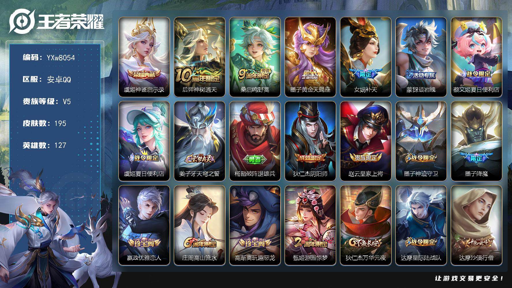 PX_2306098-??推荐·神鉴启示录·千山共赴·愿照山河定·愿照千秋盛·九山相柳·时雨天司·凤求凰·纵目迁山·猫影幻舞·冠军飞将·朱雀志·青龙志·飞衡·岱宗·可二次】YXw8059-安卓Q-126英雄-377皮肤-19王者印记-220铭文-贵族积分5w【贵族8】【1典藏·4星传说·20传说·1天幕·10按键】【因赛季更新游戏段付以上号为准!】 【英雄全皮】:刘禅全皮,阿轲全皮,达摩全皮,孙权全皮,太乙真人全皮,蒙恬全皮,司空震全皮,空空儿全皮,影全皮 【荣耀典藏】:虞姬神鉴启示录 【星元皮肤】:狄仁杰星际治安官,孙尚香未来机甲,孙悟空幽冥火,宫本武藏幽冥之眼 【天幕】:共赏芳华天幕 【传说皮肤】:杨戬纵目迁山,后羿神树通天,干将莫邪千山共赴,司马懿九山相柳,司空震愿照山河定,女娲愿照千秋盛,云缨幻光神枪,桑启鸣野蒿,诸葛亮时雨天司,虞姬启明星使,貂蝉猫影幻舞,干将莫邪久胜战神,达摩黄金狮子座,花木兰冠军飞将,后羿黄金射手座,李白凤求凰,孙尚香末日机甲,宫本武藏地狱之眼,孙悟空地狱火,狄仁杰超时空战士 【限定皮肤】:白起狰,蒙犽顽岩魄,姜子牙天穹之誓,杨戬破阵退雄兵,狄仁杰阴阳师,虞姬凯尔特女王,赵云皇家上将,赵云引擎之心,墨子神迹守卫,嬴政白昼王子,鲁班七号狮舞东方,庄周高山流水,高渐离死亡摇滚,高渐离玩趣恶龙,阿轲迷踪丽影,芈月重明,吕布猎兽之王,周瑜赤莲之焰,元歌云间偶戏,元歌无心,夏侯惇朔风刀,甄姬游园惊梦,曹操烛龙,典韦穷奇,典韦蓝屏警告,典韦岱宗,马可波罗暗影游猎,狄仁杰魔术师,狄仁杰万华元夜,达摩星际陆战队,达摩沙漠行僧,项羽海滩派对,老夫子醍醐杖,老夫子航海奇遇记,关羽冰锋战神,程咬金演武夺筹,刘邦夺宝奇兵,韩信飞衡,兰陵王驯魔猎人,兰陵王金庭之子,花木兰青春决赛季,亚瑟潮玩骑士王,孙悟空至尊宝,孙悟空大圣娶亲,孙悟空孙行者,牛魔御旌,后羿辉光之辰,后羿如梦令,李元芳银河之约,李元芳云中旅人,虞姬启明星使,钟馗神迹守卫,钟馗驱傩正仪,杨玉环遇见飞天,女娲朔望之晖,哪吒逐梦之翼,干将莫邪胡桃夹子,雅典娜单词大作战,雅典娜黎明之约,蔡文姬繁星吟游,太乙真人饕餮,太乙真人华丽摇滚,东皇太一逐梦之光,鬼谷子原初探秘者,鬼谷子五谷丰年,诸葛亮时雨天司,铠青龙志,苏烈千军破阵,百里玄策原初追逐者,百里守约朱雀志,弈星混沌棋,梦奇顽趣,沈梦溪星空之诺,明世隐疑决卦,裴擒虎李小龙,裴擒虎擒涛扼浪,狂铁御狮,米莱狄御霄,米莱狄胡桃异想国,云中君纤云弄巧,盾山御銮,猪八戒西部大镖客,上官婉儿梁祝,上官婉儿天狼绘梦者,嫦娥拒霜思,蒙犽狂想玩偶喵,鲁班大师探海日志,桑启海盐诗旅,艾琳流音漫舞,司空震地狱燃心,阿古朵江河有灵,张良古海寻踪,蒙犽百解令,蒙恬荣光圣徽,鬼谷子天穹祈灯,伽罗琥珀纪元,沈梦溪龙舞盛年,刘邦剑破天穹,程咬金群星魔术团,刘备异域游侠,周瑜熔金海岸 【年限皮肤】:百里守约朱雀志,铠青龙志,李白凤求凰,后羿辉光之辰,诸葛亮时雨天司,韩信飞衡,典韦岱宗 【赛季限定】:白起狰,芈月重明,夏侯惇朔风刀,曹操烛龙,典韦穷奇,狄仁杰万华元夜,达摩沙漠行僧,老夫子醍醐杖,程咬金演武夺筹,兰陵王金庭之子,张良古海寻踪,牛魔御旌,李元芳云中旅人,虞姬凯尔特女王,钟馗驱傩正仪,雅典娜黎明之约,太乙真人饕餮,鬼谷子原初探秘者,苏烈千军破阵,百里玄策原初追逐者,弈星混沌棋,梦奇顽趣,明世隐疑决卦,裴擒虎擒涛扼浪,狂铁御狮,米莱狄御霄,盾山御銮,鲁班大师探海日志,桑启海盐诗旅,鬼谷子天穹祈灯,蒙恬荣光圣徽,刘邦剑破天穹,姜子牙天穹之誓 【战令限定】:墨子神迹守卫,嬴政白昼王子,鲁班七号狮舞东方,阿轲迷踪丽影,吕布猎兽之王,周瑜赤莲之焰,元歌云间偶戏,典韦蓝屏警告,马可波罗暗影游猎,达摩星际陆战队,老夫子航海奇遇记,刘邦夺宝奇兵,兰陵王驯魔猎人,艾琳流音漫舞,亚瑟潮玩骑士王,李元芳银河之约,钟馗神迹守卫,女娲朔望之晖,雅典娜单词大作战,沈梦溪星空之诺,米莱狄胡桃异想国,猪八戒西部大镖客,蒙犽狂想玩偶喵,司空震地狱燃心 【史诗皮肤】:项羽苍穹之光,露娜紫霞仙子,阿轲暗夜猫娘,赵云皇家上将,赵云未来纪元,貂蝉圣诞恋歌,甄姬冰雪圆舞曲,王昭君偶像歌手,狄仁杰魔术师,廉颇地狱岩魂,宫本武藏鬼剑武藏,孙尚香水果甜心,嬴政暗夜贵公子,嬴政摇滚巨星,妲己魅力维加斯,妲己女仆咖啡,墨子金属风暴,吕布圣诞狂欢,刘禅绅士熊喵,曹操幽灵船长,李白千年之狐,吕布末日机甲,张飞乱世虎臣,关羽冰锋战神,孙悟空至尊宝,赵云引擎之心,花木兰水晶猎龙者,刘邦德古拉伯爵,夏侯惇乘风破浪,小乔缤纷独角兽,兰陵王暗隐猎兽者,诸葛亮黄金分割率,甄姬游园惊梦,亚瑟心灵战警,雅典娜冰冠公主,安琪拉心灵骇客,后羿辉光之辰,花木兰青春决赛季,百里守约特工魅影,铠曙光守护者,蔡文姬舞动绿茵,哪吒逐梦之翼,刘禅天才门将,李元芳逐浪之夏,程咬金功夫厨神,白起星夜王子,阿轲节奏热浪,杨玉环遇见飞天,东皇太一逐梦之光,嬴政白昼王子,孙策猫狗日记,大乔猫狗日记,铠青龙志,百里守约朱雀志,孙悟空大圣娶亲,典韦蓝屏警告,伽罗箭羽风息,鲁班七号狮舞东方,狄仁杰鹰眼统帅,公孙离无限星赏官,兰陵王驯魔猎人,上官婉儿梁祝,蔡文姬繁星吟游,李元芳银河之约,韩信飞衡,典韦岱宗,后羿如梦令,大乔白蛇,阿轲迷踪丽影,橘右京修罗,上官婉儿天狼绘梦者,马可波罗暗影游猎,