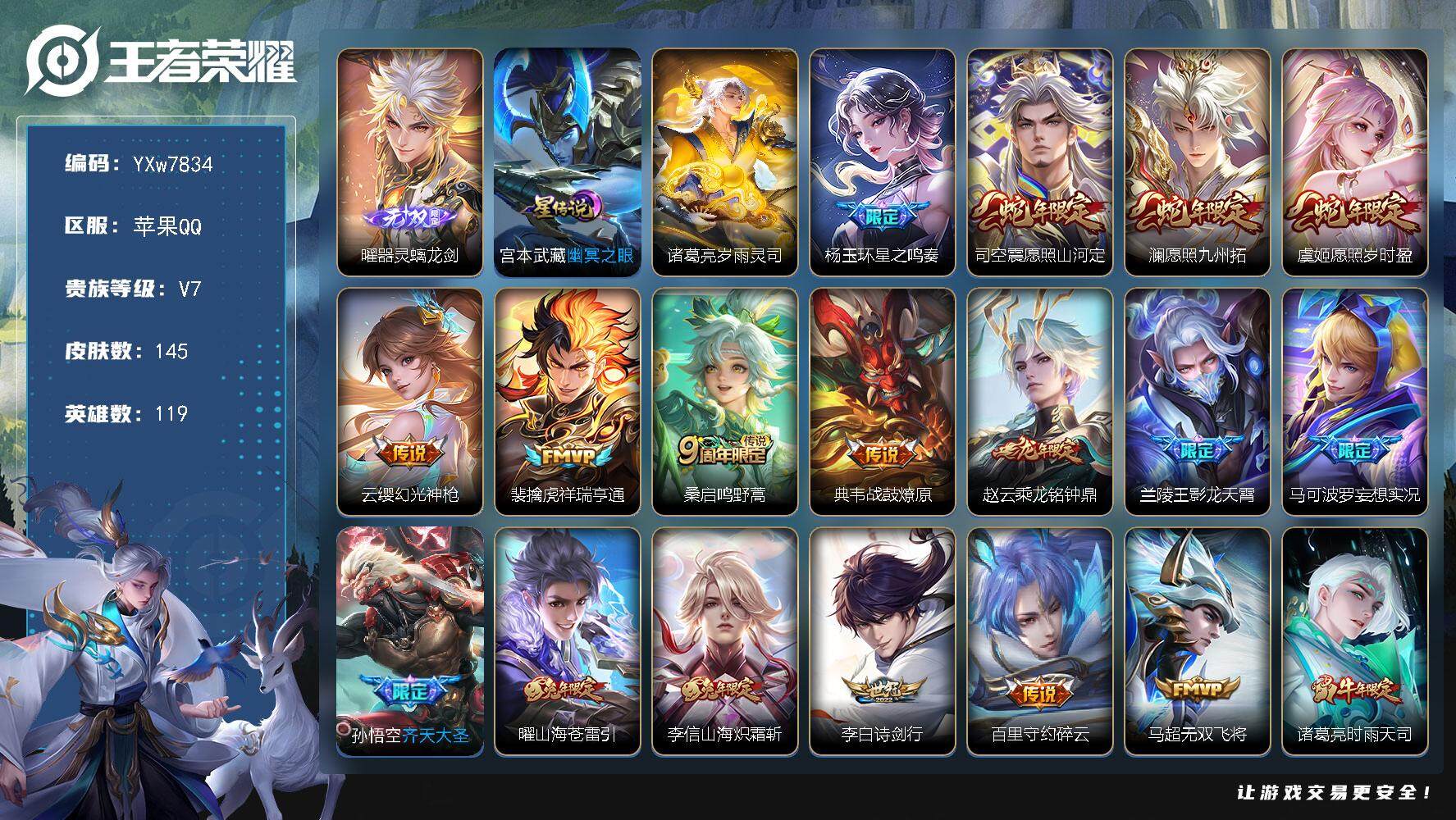 PX_2306059-??质量v7·司空震全皮·器灵螭龙剑·星之鸣奏·影龙天霄·山海苍雷引·山海炽霜斩·诗剑行·时雨天司·无双飞将·岁雨灵司·可二次】YXw7834-苹果Q-119英雄-145皮肤-5王者印记-130铭文-贵族积分4w【贵族7】【·1无双·2星传说·22传说·15按键·259幸运值】【因赛季更新游戏段付以上号为准!】 【英雄全皮】:司空震全皮 【无双皮肤】:曜器灵螭龙剑 【星元皮肤】:诸葛亮岁雨灵司,宫本武藏幽冥之眼 【传说皮肤】:杨玉环星之鸣奏,司空震愿照山河定,澜愿照九州拓,虞姬愿照岁时盈,云缨幻光神枪,裴擒虎祥瑞亨通,桑启鸣野蒿,典韦战鼓燎原,赵云乘龙铭钟鼎,兰陵王影龙天霄,马可波罗妄想实况,孙悟空齐天大圣,曜山海苍雷引,李信山海炽霜斩,李白诗剑行,百里守约碎云,马超无双飞将,诸葛亮时雨天司,铠绛天战甲,刘备时之恋人,后羿黄金射手座,宫本武藏地狱之眼 【限定皮肤】:暃埋骨钱,姜子牙天穹之誓,狄仁杰阴阳师,赵云皇家上将,马可波罗妄想实况,狄仁杰魔术师,项羽海滩派对,兰陵王影龙天霄,孙悟空齐天大圣,刘备百相守梦,干将莫邪胡桃夹子,诸葛亮时雨天司,百里玄策原初追逐者,裴擒虎擒涛扼浪,李信山海炽霜斩,曜山海苍雷引,西施玲珑珍味,鲁班大师探海日志,镜匿光追影者,桑启海盐诗旅,戈娅驭风魔法,艾琳流音漫舞,司空震地狱燃心,阿古朵江河有灵,张良古海寻踪,鬼谷子天穹祈灯,赵云乘龙铭钟鼎,沈梦溪龙舞盛年,周瑜熔金海岸 【年限皮肤】:诸葛亮时雨天司,李信山海炽霜斩,曜山海苍雷引,赵云乘龙铭钟鼎 【赛季限定】:张良古海寻踪,百里玄策原初追逐者,裴擒虎擒涛扼浪,鲁班大师探海日志,桑启海盐诗旅,鬼谷子天穹祈灯,姜子牙天穹之誓 【战令限定】:艾琳流音漫舞,西施玲珑珍味,司空震地狱燃心,戈娅驭风魔法 【史诗皮肤】:露娜紫霞仙子,赵云皇家上将,貂蝉圣诞恋歌,甄姬冰雪圆舞曲,王昭君偶像歌手,狄仁杰魔术师,宫本武藏鬼剑武藏,孙尚香水果甜心,嬴政摇滚巨星,妲己女仆咖啡,墨子龙骑士,墨子金属风暴,刘禅绅士熊喵,曹操幽灵船长,李白千年之狐,吕布末日机甲,花木兰水晶猎龙者,夏侯惇乘风破浪,兰陵王暗隐猎兽者,雅典娜冰冠公主,百里守约特工魅影,铠曙光守护者,刘禅天才门将,李元芳逐浪之夏,伽罗箭羽风息,狄仁杰鹰眼统帅,橘右京修罗,百里玄策原初追逐者,镜匿光追影者,夏洛特永昼,澜赏金猎手,刘备百相守梦,戈娅驭风魔法,司空震地狱燃心,阿古朵江河有灵,暃埋骨钱,孙膑茶境仙,赵怀真器灵浮梦炉,阿轲化蝶舞,狂铁龙之律动,黄忠百相守梦,女娲万灵启世 【其他皮肤】:项羽海滩派对,韩信街头霸王,赵云白执事,赵云忍炎影,白起白色死神,扁鹊化身博士,孙膑天使之翼,典韦黄金武士,亚瑟死亡骑士,达摩拳王,甄姬花好人间,狄仁杰阴阳师,关羽龙腾万里,老夫子功夫老勺,孙尚香沉稳之力,大乔守护之力,小乔丁香结,哪吒次元突破,狂铁特工战影,鲁班大师乓乓大师,干将莫邪胡桃夹子,桑启海盐诗旅,海月幻泉雾影,猪八戒潮玩探月行,赵怀真太极少年,裴擒虎擒涛扼浪,太乙真人劲辣红锅,鲁班大师探海日志,西施玲珑珍味,姬小满零食大作战,李元芳妄想特派,艾琳流音漫舞,张良古海寻踪,钟无艳聚星闪耀,海月王牌新星,鬼谷子天穹祈灯,沈梦溪龙舞盛年,盘古经纬探寻者,姜子牙天穹之誓,周瑜熔金海岸,东皇太一噬灭天穹,干将莫邪雾都夜雨,苍苍林狼骑,太乙真人谧流熔炉,典韦铁骨偃魂,马超访茗客,西施雪境奇遇,东皇太一金福满堂,少司缘灵卦秘语,明世隐景韶洛都,戈娅玫蓝誓约,刘备浪漫序章,钟馗虚灵犬护,张良灵野札记,甄姬逆浪荇歌,庄周锦麟游梦,莱西奥踏浪烽翎,鬼谷子克喵,哪吒罗小黑战记,亚瑟荣光之誓,张良罗小黑战记,艾琳鹤鸣心笺,老夫子潮流仙人,周瑜海军大将,虞姬加勒比小姐,夏侯惇战争骑士,杨戬埃及法老,鬼谷子阿摩司公爵,女娲尼罗河女神,弈星踏雪寻梅,元歌午夜歌剧院,司马懿魇语军师,嫦娥露花倒影,猪八戒年年有余,盘古创世神祝,云中君荷鲁斯之眼,马超幸存者,司空震启蛰,桑启画中游 【内测皮肤】:狂铁特工战影,干将莫邪胡桃夹子