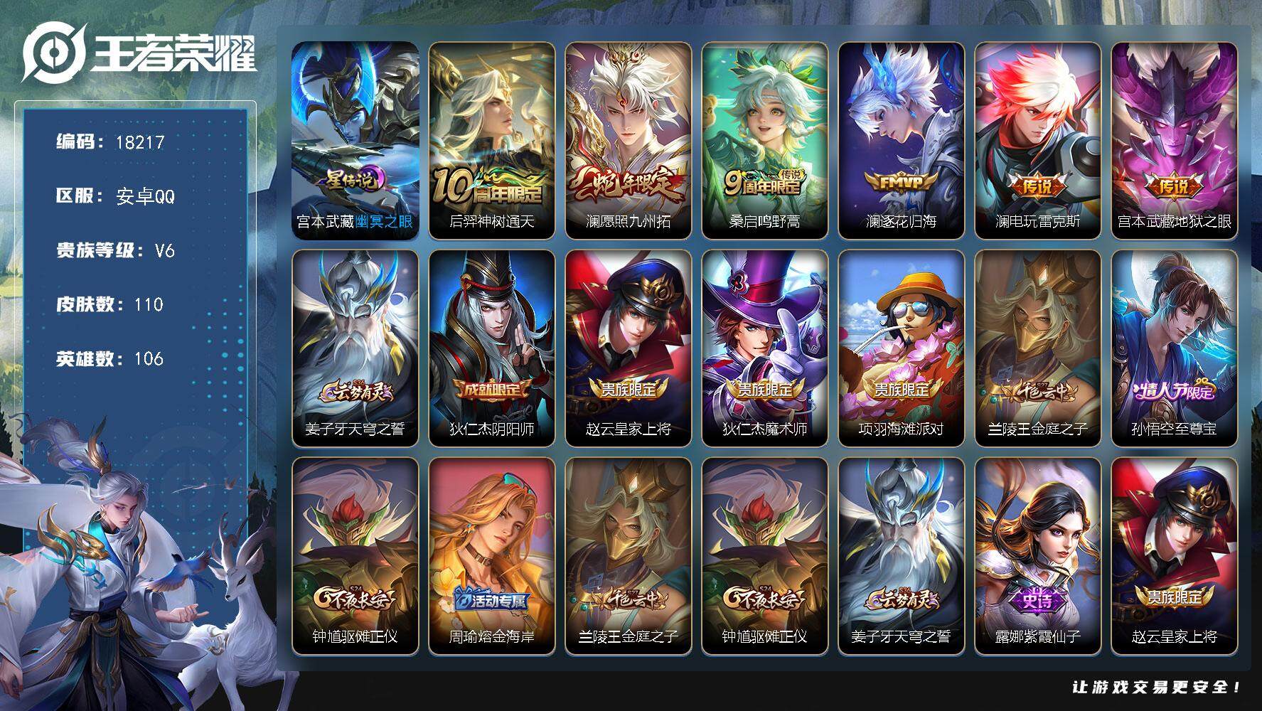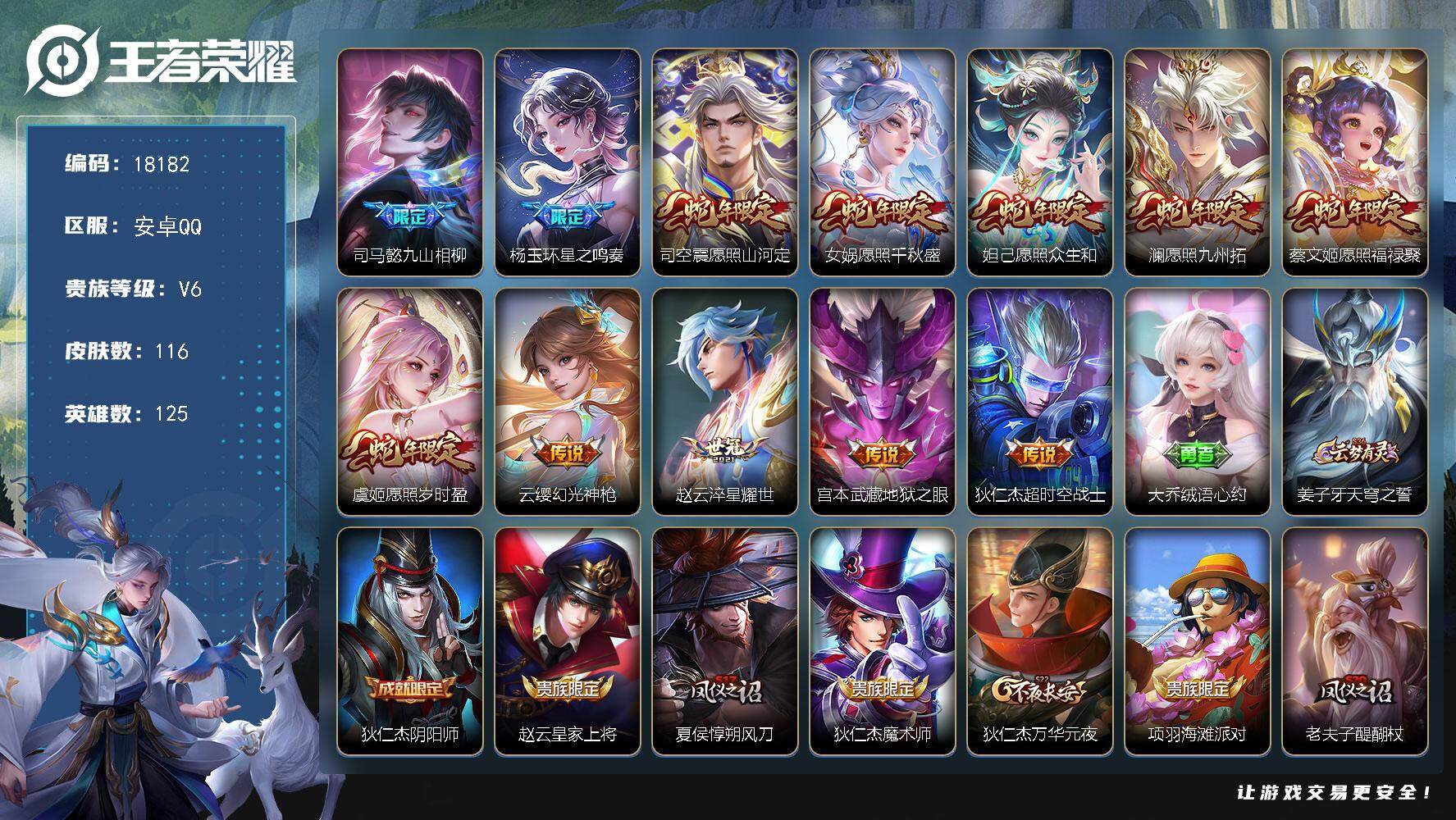 PX_2312371-可换绑【性价比优质号,蛇年全套,多传说限定号】,12按键,五级铭文120,可二次KK6788,安卓Q-V6-116皮肤-12传说-24史诗【英雄全皮】:空空儿全皮,影全皮【传说皮肤】:司马懿九山相柳,杨玉环星之鸣奏,司空震愿照山河定,女娲愿照千秋盛,妲己愿照众生和,澜愿照九州拓,蔡文姬愿照福禄聚,虞姬愿照岁时盈,云缨幻光神枪,赵云淬星耀世,宫本武藏地狱之眼,狄仁杰超时空战士【限定皮肤】:大乔绒语心约,姜子牙天穹之誓,狄仁杰阴阳师,赵云皇家上将,夏侯惇朔风刀,狄仁杰魔术师,狄仁杰万华元夜,项羽海滩派对,老夫子醍醐杖,钟馗驱傩正仪,鬼谷子原初探秘者,裴擒虎李小龙,裴擒虎擒涛扼浪,云中君纤云弄巧,鲁班大师探海日志,鬼谷子天穹祈灯,沈梦溪龙舞盛年,刘邦剑破天穹,程咬金群星魔术团,周瑜熔金海岸【赛季限定】:夏侯惇朔风刀,狄仁杰万华元夜,老夫子醍醐杖,钟馗驱傩正仪,鬼谷子原初探秘者,裴擒虎擒涛扼浪,鲁班大师探海日志,鬼谷子天穹祈灯,刘邦剑破天穹,姜子牙天穹之誓【史诗皮肤】:赵云皇家上将,赵云未来纪元,甄姬冰雪圆舞曲,狄仁杰魔术师,宫本武藏鬼剑武藏,嬴政摇滚巨星,妲己魅力维加斯,兰陵王暗隐猎兽者,孙策猫狗日记,狄仁杰鹰眼统帅,裴擒虎李小龙,云中君纤云弄巧,黄忠怒海争锋,弈星万物之道,亚连糖绘人间,苍狼魂孤将,狄仁杰绮世丹青,阿轲化蝶舞,狂铁龙之律动,百里守约雪豹霜爪,后羿石田雨龙,云缨赞萌露比,朵莉亚幻珠鲛人,公孙离涂山容容【其他皮肤】:项羽海滩派对,露娜哥特玫瑰,阿轲爱心护理,赵云白执事,白起白色死神,武则天东方不败,扁鹊化身博士,扁鹊救世之瞳,典韦黄金武士,亚瑟死亡骑士,花木兰兔女郎,张飞五福同心,甄姬花好人间,宫本武藏万象初新,狄仁杰阴阳师,关羽龙腾万里,老夫子功夫老勺,诸葛亮掌控之力,李白敏锐之力,小乔丁香结,沈梦溪鲨炮海盗猫,夏侯惇朔风刀,老夫子醍醐杖,鬼谷子原初探秘者,狄仁杰万华元夜,露娜瓷语鉴心,钟馗驱傩正仪,鲁班大师乓乓大师,典韦铁甲之心,妲己紫罗兰之誓,蒙犽胡桃狂想曲,猪八戒潮玩探月行,裴擒虎擒涛扼浪,鲁班大师探海日志,姬小满零食大作战,李元芳妄想特派,鬼谷子天穹祈灯,沈梦溪龙舞盛年,刘邦剑破天穹,盘古经纬探寻者,程咬金群星魔术团,大司命暗都幽影,姜子牙天穹之誓,周瑜熔金海岸,大乔绒语心约,太乙真人谧流熔炉,影魅影绮裳,姜子牙星梦巡礼,东皇太一金福满堂,达摩爆裂喵拳,少司缘灵卦秘语,明世隐景韶洛都,戈娅玫蓝誓约,钟馗虚灵犬护,苏烈春野闲踪,张良灵野札记,白起死霸装,甄姬逆浪荇歌,空空儿戏梦巡演,高渐离落日弦歌,莱西奥踏浪烽翎,蚩奼极光幻客,露娜绯红之刃,狄仁杰锦衣卫,刘邦圣殿之光,虞姬加勒比小姐,苍维京掠夺者,杨戬埃及法老,铠龙域领主,百里守约绝影神枪,百里玄策威尼斯狂欢,公孙离花间舞,李信灼热之刃,上官婉儿修竹墨客,马超幸存者,西施归虚梦演,鲁班大师归虚梦演,澜孤猎,司空震启蛰,云缨赤焰之缨