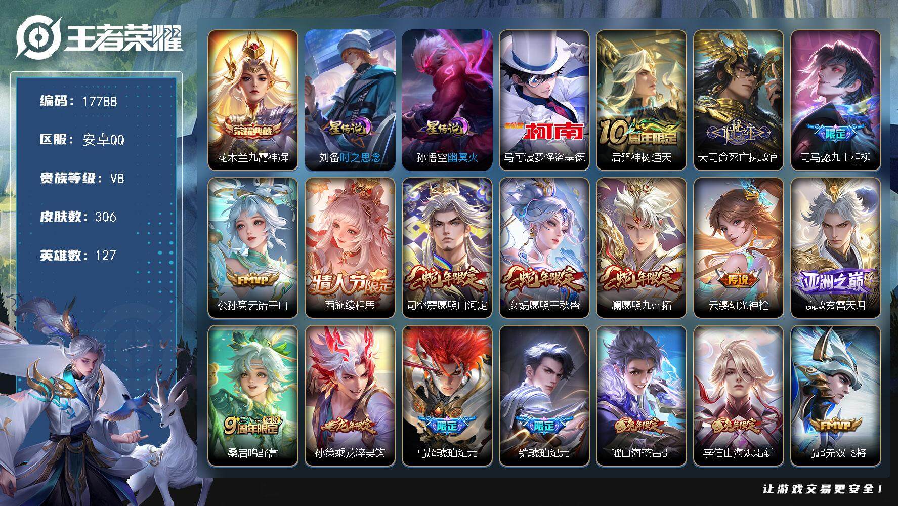 PX_2311480-可换绑【V8精品号,金标干将,金标刘备,金标姜子牙,花木兰典藏,怪盗基德,马超铠琥珀纪元,神威,多传说限定号】,11按键,2星传说,1天幕,19王者印记,五级铭文190,可二次CD15124,安卓Q-V8-306皮肤-1典藏皮肤-1珍品传说-28传说-93史诗【英雄全皮】:孙权全皮,马超全皮,蒙恬全皮,司空震全皮,空空儿全皮,影全皮【荣耀典藏】:花木兰九霄神辉【珍品传说】:马可波罗怪盗基德【星元皮肤】:孙悟空幽冥火,刘备时之思念【天幕】:财神纳福天幕【传说皮肤】:后羿神树通天,大司命死亡执政官,司马懿九山相柳,公孙离云诺千山,西施续相思,司空震愿照山河定,女娲愿照千秋盛,澜愿照九州拓,云缨幻光神枪,嬴政玄雷天君,桑启鸣野蒿,孙策乘龙淬吴钩,马超琥珀纪元,铠琥珀纪元,曜山海苍雷引,李信山海炽霜斩,马超无双飞将,周瑜音你心动,镜炽阳神光,虞姬启明星使,刘备时之恋人,貂蝉猫影幻舞,干将莫邪久胜战神,花木兰冠军飞将,梦奇胖达荣荣,后羿黄金射手座,宫本武藏地狱之眼,孙悟空地狱火【限定皮肤】:姜子牙天穹之誓,狄仁杰阴阳师,赵云皇家上将,赵云龙胆,庄周高山流水,高渐离死亡摇滚,扁鹊奇幻香踪,马可波罗暗影游猎,狄仁杰魔术师,狄仁杰万华元夜,达摩沙漠行僧,项羽海滩派对,老夫子航海奇遇记,程咬金演武夺筹,兰陵王金庭之子,后羿辉光之辰,后羿圣弓游侠,李元芳银河之约,李元芳云中旅人,虞姬启明星使,钟馗驱傩正仪,杨玉环遇见飞天,杨戬潮玩骑兵,女娲朔望之晖,干将莫邪冰霜恋舞曲,干将莫邪胡桃夹子,干将莫邪真爱魔法,雅典娜黎明之约,太乙真人华丽摇滚,鬼谷子原初探秘者,苏烈千军破阵,百里玄策原初追逐者,弈星混沌棋,梦奇顽趣,沈梦溪星空之诺,沈梦溪大漠名商,明世隐疑决卦,裴擒虎李小龙,裴擒虎擒涛扼浪,米莱狄胡桃异想国,云中君纤云弄巧,李信山海炽霜斩,上官婉儿天狼绘梦者,嫦娥拒霜思,嫦娥暖冬兔眠,曜山海苍雷引,鲁班大师探海日志,镜匿光追影者,桑启海盐诗旅,暃星界游侠,艾琳流音漫舞,司空震地狱燃心,阿古朵江河有灵,张良古海寻踪,蒙犽百解令,蒙恬荣光圣徽,高渐离燃音魔法,妲己灵卜魔法,鬼谷子天穹祈灯,伽罗琥珀纪元,铠琥珀纪元,马超琥珀纪元,姬小满妄想食味,安琪拉乘龙聚宝船,孙策乘龙淬吴钩,沈梦溪龙舞盛年,鲁班七号蔬乡物语,李元芳蔬乡物语,刘邦剑破天穹,程咬金群星魔术团,周瑜熔金海岸【年限皮肤】:后羿辉光之辰,马超神威,赵云龙胆,李信山海炽霜斩,曜山海苍雷引,安琪拉乘龙聚宝船,孙策乘龙淬吴钩【赛季限定】:狄仁杰万华元夜,达摩沙漠行僧,程咬金演武夺筹,兰陵王金庭之子,张良古海寻踪,李元芳云中旅人,钟馗驱傩正仪,雅典娜黎明之约,鬼谷子原初探秘者,苏烈千军破阵,百里玄策原初追逐者,弈星混沌棋,梦奇顽趣,沈梦溪大漠名商,明世隐疑决卦,裴擒虎擒涛扼浪,鲁班大师探海日志,桑启海盐诗旅,鬼谷子天穹祈灯,蒙恬荣光圣徽,刘邦剑破天穹,姜子牙天穹之誓【战令限定】:扁鹊奇幻香踪,马可波罗暗影游猎,老夫子航海奇遇记,艾琳流音漫舞,后羿圣弓游侠,李元芳银河之约,杨戬潮玩骑兵,女娲朔望之晖,干将莫邪真爱魔法,沈梦溪星空之诺,米莱狄胡桃异想国,嫦娥暖冬兔眠,司空震地狱燃心,暃星界游侠,高渐离燃音魔法,妲己灵卜魔法,鲁班七号蔬乡物语,李元芳蔬乡物语【史诗皮肤】:项羽苍穹之光,露娜紫霞仙子,赵云皇家上将,赵云未来纪元,貂蝉圣诞恋歌,甄姬冰雪圆舞曲,王昭君偶像歌手,狄仁杰魔术师,廉颇地狱岩魂,宫本武藏鬼剑武藏,孙尚香水果甜心,嬴政暗夜贵公子,嬴政摇滚巨星,妲己魅力维加斯,妲己女仆咖啡,墨子龙骑士,墨子金属风暴,吕布圣诞狂欢,刘禅绅士熊喵,曹操幽灵船长,李白千年之狐,吕布末日机甲,张飞乱世虎臣,花木兰水晶猎龙者,刘邦德古拉伯爵,夏侯惇乘风破浪,小乔缤纷独角兽,兰陵王暗隐猎兽者,诸葛亮黄金分割率,亚瑟心灵战警,后羿辉光之辰,百里守约特工魅影,蔡文姬舞动绿茵,李元芳逐浪之夏,程咬金功夫厨神,白起星夜王子,阿轲节奏热浪,杨玉环遇见飞天,孙策猫狗日记,大乔猫狗日记,干将莫邪冰霜恋舞曲,伽罗箭羽风息,狄仁杰鹰眼统帅,李元芳银河之约,娜可露露晚萤,大乔白蛇,不知火舞魅语,橘右京修罗,马超神威,赵云龙胆,孙尚香时之恋人,上官婉儿天狼绘梦者,马可波罗暗影游猎,百里玄策原初追逐者,裴擒虎李小龙,云中君纤云弄巧,米莱狄胡桃异想国,老夫子航海奇遇记,杨戬天秀启明,干将莫邪真爱魔法,钟馗乐园奇幻夜,庄周高山流水,嫦娥拒霜思,镜匿光追影者,雅典娜黎明之约,夏洛特永昼,梦奇顽趣,暃星界游侠,扁鹊奇幻香踪,司空震地狱燃心,阿古朵江河有灵,蒙犽百解令,周瑜雪夜绮愿,妲己灵卜魔法,高渐离燃音魔法,蒙恬荣光圣徽,伽罗琥珀纪元,姬小满妄想食味,安琪拉乘龙聚宝船,鲁班七号蔬乡物语,亚连破空之剑,百里守约百相守梦,牛魔星界战将,孙膑茶境仙,弈星万物之道,赵怀真器灵浮梦炉,阿轲化蝶舞,刘禅鸭鸭历险记,狂铁龙之律动,扁鹊灵蛊蚀心,后羿石田雨龙,黄忠百相守梦,百里玄策罗小黑战记,少司缘巫礼祀神【其他皮肤】:项羽海滩派对,韩信教廷特使,韩信街头霸王,露娜哥特玫瑰,阿轲爱心护理,达摩大发明家,赵云白执事,赵云忍炎影,芈月红桃皇后,程咬金星际陆战队,白起白色死神,牛魔西部大镖客,扁鹊化身博士,扁鹊救世之瞳,宫本武藏未来纪元,孙膑天使之翼,姜子牙时尚教父,妲己少女阿狸,典韦