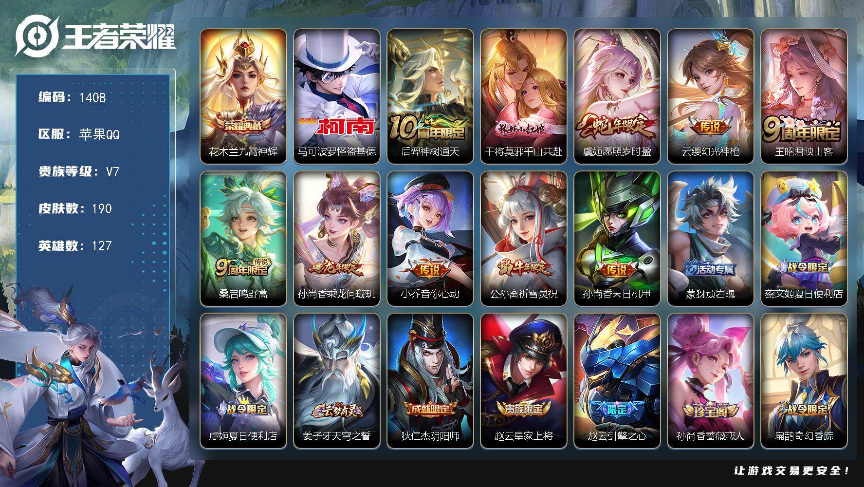PX_2312739-【190皮1典藏1珍品10传说1天幕,狸尾假日天幕,九霄神辉,怪盗基德,至尊宝,千山共赴,映山客,乘龙问璇玑,祈雪灵祝】苹果Q-V7-永恒钻石II段位-127英雄-190皮肤-1典藏皮肤-1珍品传说-10传说-69史诗 【英雄全皮】:赵怀真全皮 【荣耀典藏】:花木兰九霄神辉 【珍品传说】:马可波罗怪盗基德 【传说皮肤】:后羿神树通天,干将莫邪千山共赴,虞姬愿照岁时盈,云缨幻光神枪,王昭君映山客,桑启鸣野蒿,孙尚香乘龙问璇玑,小乔音你心动,公孙离祈雪灵祝,孙尚香末日机甲 【限定皮肤】:蒙犽顽岩魄,蔡文姬夏日便利店,虞姬夏日便利店,姜子牙天穹之誓,狄仁杰阴阳师,赵云皇家上将,赵云引擎之心,孙尚香蔷薇恋人,扁鹊奇幻香踪,元歌云间偶戏,马可波罗暗影游猎,马可波罗山海玄木吟,狄仁杰魔术师,项羽海滩派对,露娜一生所爱,孙悟空至尊宝,孙悟空大圣娶亲,李元芳云中旅人,杨戬潮玩骑兵,公孙离祈雪灵祝,沈梦溪大漠名商,裴擒虎李小龙,裴擒虎擒涛扼浪,盾山梦圆繁星,嫦娥拒霜思,嫦娥暖冬兔眠,西施玲珑珍味,鲁班大师探海日志,桑启海盐诗旅,暃星界游侠,戈娅驭风魔法,赵怀真鹤归松栖,阿古朵江河有灵,张良古海寻踪,高渐离燃音魔法,妲己灵卜魔法,鬼谷子天穹祈灯,伽罗琥珀纪元,孙尚香乘龙问璇玑,沈梦溪龙舞盛年,鲁班七号蔬乡物语,刘邦剑破天穹,上官婉儿群星魔术团,程咬金群星魔术团,镜青焰无极,项羽苍威无极,刘备异域游侠,周瑜熔金海岸 【年限皮肤】:公孙离祈雪灵祝,马可波罗山海玄木吟,孙尚香乘龙问璇玑 【赛季限定】:张良古海寻踪,李元芳云中旅人,沈梦溪大漠名商,裴擒虎擒涛扼浪,鲁班大师探海日志,桑启海盐诗旅,鬼谷子天穹祈灯,刘邦剑破天穹,姜子牙天穹之誓 【战令限定】:蔡文姬夏日便利店,虞姬夏日便利店,扁鹊奇幻香踪,元歌云间偶戏,马可波罗暗影游猎,杨戬潮玩骑兵,嫦娥暖冬兔眠,西施玲珑珍味,暃星界游侠,戈娅驭风魔法,高渐离燃音魔法,妲己灵卜魔法,鲁班七号蔬乡物语,镜青焰无极,项羽苍威无极 【史诗皮肤】:鲁班七号电玩小子,露娜紫霞仙子,赵云皇家上将,貂蝉圣诞恋歌,甄姬冰雪圆舞曲,狄仁杰魔术师,宫本武藏鬼剑武藏,孙尚香蔷薇恋人,孙尚香水果甜心,嬴政摇滚巨星,妲己魅力维加斯,墨子龙骑士,墨子金属风暴,吕布圣诞狂欢,刘禅绅士熊喵,李白千年之狐,吕布末日机甲,孙悟空至尊宝,赵云引擎之心,花木兰水晶猎龙者,夏侯惇乘风破浪,兰陵王暗隐猎兽者,亚瑟心灵战警,雅典娜冰冠公主,安琪拉心灵骇客,李元芳逐浪之夏,程咬金功夫厨神,阿轲节奏热浪,孙策猫狗日记,大乔猫狗日记,露娜一生所爱,孙悟空大圣娶亲,狄仁杰鹰眼统帅,孙尚香时之恋人,马可波罗暗影游猎,裴擒虎李小龙,元歌云间偶戏,钟馗乐园奇幻夜,安琪拉时之奇旅,嫦娥拒霜思,盾山梦圆繁星,暃星界游侠,马可波罗山海玄木吟,扁鹊奇幻香踪,戈娅驭风魔法,赵怀真鹤归松栖,阿古朵江河有灵,妲己灵卜魔法,高渐离燃音魔法,伽罗琥珀纪元,鲁班七号蔬乡物语,上官婉儿群星魔术团,镜青焰无极,蔡文姬夏日便利店,蒙犽顽岩魄,大司命东方月初,亚连破空之剑,马可波罗星界特工,弈星万物之道,赵怀真器灵浮梦炉,狄仁杰绮世丹青,阿轲化蝶舞,刘禅鸭鸭历险记,狂铁龙之律动,周瑜百相守梦,云缨赞萌露比,黄忠百相守梦,朵莉亚幻珠鲛人,公孙离涂山容容,少司缘巫礼祀神 【其他皮肤】:项羽海滩派对,韩信教廷特使,韩信街头霸王,露娜哥特玫瑰,赵云白执事,赵云忍炎影,芈月红桃皇后,白起白色死神,武则天东方不败,安琪拉玩偶对对碰,典韦黄金武士,亚瑟死亡骑士,花木兰兔女郎,张飞五福同心,甄姬花好人间,后羿阿尔法小队,狄仁杰阴阳师,刘备汉昭烈帝,李元芳黑猫爱糖果,关羽龙腾万里,钟无艳海滩丽影,王昭君幻想奇妙夜,狂铁命运角斗场,老夫子功夫老勺,孙尚香沉稳之力,苏烈坚韧之力,明世隐虹云星官,小乔丁香结,沈梦溪鲨炮海盗猫,哪吒次元突破,鲁班七号黑桃队长,盾山圆桌骑士,狂铁特工战影,刘禅秘密基地,张良缤纷绘卷,鲁班大师乓乓大师,马可波罗潮玩牛仔,沈梦溪大漠名商,李元芳云中旅人,刘备潮玩造梦师,桑启海盐诗旅,嫦娥暖冬兔眠,猪八戒潮玩探月行,赵怀真太极少年,裴擒虎擒涛扼浪,杨戬潮玩骑兵,太乙真人劲辣红锅,鲁班大师探海日志,西施玲珑珍味,李元芳妄想特派,张良古海寻踪,曹操决胜大满贯,程咬金暖冬絮语,鬼谷子天穹祈灯,妲己灵卜魔法,海诺时空谍影,嫦娥漠中幻影,廉颇功夫炙烤,亚瑟鸿运当头,沈梦溪龙舞盛年,刘邦剑破天穹,盘古经纬探寻者,程咬金群星魔术团,项羽苍威无极,刘备异域游侠,姜子牙天穹之誓,周瑜熔金海岸,虞姬夏日便利店,孙悟空神迹守卫,盘古敬我三分,东皇太一噬灭天穹,米莱狄怪诞之夜,吕布逐霄战戟,苍苍林狼骑,太乙真人谧流熔炉,典韦铁骨偃魂,西施雪境奇遇,东皇太一金福满堂,达摩爆裂喵拳,戈娅玫蓝誓约,钟馗虚灵犬护,沈梦溪鸭鸭历险记,苏烈春野闲踪,阿古朵布丁狗之约,露娜命运加冕,雅典娜潮玩士官长,姬小满小满鸭,白起死霸装,甄姬逆浪荇歌,孙策百相守梦,庄周锦麟游梦,莱西奥踏浪烽翎,哪吒罗小黑战记,亚瑟荣光之誓,艾琳鹤鸣心笺,王昭君精灵公主,小乔万圣前夜,周瑜海军大将,李元芳特种部队,关羽天启骑士,马可波罗激情绿茵,黄忠芝加哥教父,明世隐占星师,公孙离花间舞,米莱狄精准探案法,沈梦溪棒球奇才,马超幸存者,蒙犽归虚梦演,金蝉前尘 【内测皮肤】: