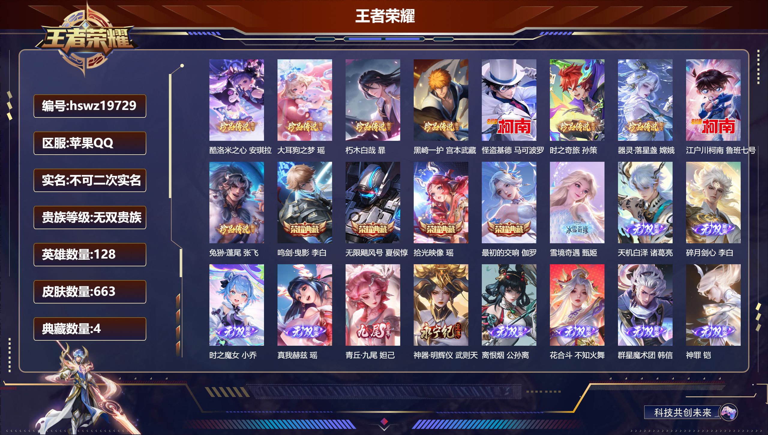 PX_2306748-Q/传奇王者/663皮肤/128英雄/4典藏/0珍品无双/12无双/9珍品传说/117传说/222史诗/10稀有英雄 【9,珍品传说】酷洛米之心,安琪拉,大耳狗之梦,瑶,朽木白哉,暃,黑崎一护,宫本武藏,怪盗基德,马可波罗,时之奇旅,孙策,器灵·落星盏,嫦娥,江户川柯南,鲁班七号,兔狲·蓬尾,张飞, 【4,典藏皮肤】鸣剑·曳影,李白,无限飓风号,夏侯惇,拾光映像,瑶,最初的交响,伽罗, 【12,无双皮肤】雪境奇遇,甄姬,天机白泽,诸葛亮,碎月剑心,李白,时之魔女,小乔,真我赫兹,瑶,青丘·九尾,妲己,神器·明辉仪,武则天,离恨烟,公孙离,花合斗,不知火舞,群星魔术团,韩信,神罪,铠,器灵·螭龙剑,曜, 【117,传说皮肤】枫霜尽,橘右京,胖达荣荣,梦奇,鹤归松栖,云缨,星穹之声,王昭君,永恒水手月亮,王昭君,启明星使,虞姬,云霓雀翎,虞姬,前尘镜,娜可露露,无限倾心,虞姬,花朝如约,蔡文姬,碎云,百里守约,纵目迁山,杨戬,逐花归海,澜,时之祈愿,瑶,电玩·雷克斯,澜,飞鸢探春,李元芳,无双飞将,马超,白虎志,百里玄策,九山相柳,司马懿,死亡执政官,大司命,李逍遥,,曜,地狱火,孙悟空,云鹰飞将,曜,齐天大圣,孙悟空,夜礼服假面,狄仁杰,神器·狴犴令,狄仁杰,追逃游戏,亚瑟,深海之息,马可波罗,觅芳踪,艾琳,游龙清影,西施,追逃游戏,安琪拉,永曜之星,杨戬,凤求凰,李白,诗剑行,李白,燃星之曲,花木兰,灼幽烈阳,东皇太一,浮生妄,夏洛特,猫影幻舞,貂蝉,仲夏夜之梦,貂蝉,落雪白狼,亚连,影龙天霄,兰陵王,地狱之眼,宫本武藏,武陵仙君,诸葛亮,鹤羽星尊,诸葛亮,海洋之心,武则天,音你心动,周瑜,炽阳神光,镜,启示之音,露娜,黄金射手座,后羿,曦玄引,吕布,霜月吟,露娜,无限倾心,项羽,无尽星芒,后羿,寅虎·瑞焰,鲁班七号,时之奇旅,鲁班七号,怒海麟威,吕布,乞巧织情,王昭君,乘龙·问璇玑,孙尚香,时之恋人,刘备,挚爱之约,孙策,黄金狮子座,达摩,绯月行,不知火舞,久胜战神,干将莫邪,末日机甲,孙尚香,乘龙·淬吴钩,孙策,异界灵契,孙尚香,末日机甲,孙策,山海·炽霜斩,李信,一念神魔,李信,音你心动,小乔,战鼓燎原,典韦,画中仙,干将莫邪,天魔缭乱,吕布,山海·琳琅生,小乔,淬星耀世,赵云,百相守梦,张飞,乘龙·铭钟鼎,赵云,琥珀纪元,铠,太华,伽罗,绛天战甲,铠,时之奇旅,大乔,挚爱花嫁,大乔,妄想奇谈,上官婉儿,妄想实况,马可波罗,寅虎·赤拳,裴擒虎,超时空战士,狄仁杰,山海·苍雷引,曜,琥珀纪元,马超,霜北刀,夏侯惇,冥王哈迪斯,铠,冠军飞将,花木兰,黄金白羊座,张良,千山共赴,干将莫邪,星之鸣奏,杨玉环,金乌负日,海月,心动手记,朵莉亚,愿照·九州拓,澜,群星魔术团,云中君,黄金天蝎座,墨子,万灵伏威,曹操,玄雷天君,嬴政,愿照·众生和,妲己,愿照·福禄聚,蔡文姬,诡秘之主,元歌,神树通天,后羿,幻光神枪,云缨,愿照·山河定,司空震,祥瑞亨通,裴擒虎,愿照·岁时盈,虞姬,千劫归真,后羿,牧神诗旅,庄周,愿照·千秋盛,女娲,曦玄引,貂蝉,鸣野蒿,桑启,映山客,王昭君,云诺千山,公孙离,续相思,西施, 【222,史诗皮肤】龙鼓争鸣,蒙犽,时之奇旅,安琪拉,电玩小子,鲁班七号,末日机甲,吕布,白昼王子,嬴政,蔬乡物语,鲁班七号,超元猎域,百里玄策,紫霞仙子,露娜,百解令,蒙犽,时之奇旅,妲己,高山流水,庄周,银河之约,李元芳,匿光追影者,镜,雪夜绮愿,周瑜,奇遇舞章,艾琳,唐三藏,金蝉,暗渊魔法,司马懿,匿光决锋者,夏侯惇,乘龙·忆丹青,大乔,暗影游猎,马可波罗,燃音魔法,高渐离,天秀·音浪,高渐离,白鹤梁神女,大乔,苍穹之光,项羽,天秀·启明,杨戬,狮舞东方,鲁班七号,猫狗日记,大乔,妄想食味,姬小满,糖绘人间,亚连,德古拉伯爵,刘邦,山海·玄木吟,马可波罗,心灵战警,亚瑟,闲日渔趣,姜子牙,五谷丰年,鬼谷子,诗语江南,西施,无心,元歌,戍鼓铭心,钟无艳,巫礼祀神,少司缘,鬼剑武藏,宫本武藏,百相守梦,黄忠,幻珠鲛人,朵莉亚,星夜王子,白起,守夜人,弈星,寅虎·心曲,杨玉环,至美·乘鲤谣,西施,无限星赏官,公孙离,千筹问战,张良,地狱燃心,司空震,玉兔公主,公孙离,遇见飞天,杨玉环,摇滚巨星,嬴政,电玩高手,狂铁,顽趣,梦奇,冰锋战神,关羽,百相守梦,关羽,蜜橘之夏,公孙离,修罗,橘右京,拒霜思,嫦娥,魅力维加斯,妲己,黄金分割率,诸葛亮,赞萌露比,云缨,电玩·兔顽号,蔡文姬,滕王阁序,弈星,乐园奇幻夜,钟馗,凤凰于飞,王昭君,苍鳞隐世,白起,偶像歌手,王昭君,完美假期,米莱狄,荣光圣徽,蒙恬,女仆咖啡,妲己,白蛇,大乔,赏金猎手,澜,星界游侠,暃,晚萤,娜可露露,猪悟能,猪八戒,遇见神鹿,瑶,舞动绿茵,蔡文姬,繁星吟游,蔡文姬,暗夜贵公子,嬴政,鹰眼统帅,狄仁杰,胡桃异想国,米莱狄,匿光启智者,鲁班大师,大圣娶亲,孙悟空,末日机甲,莱西奥,孙行者,孙悟空,傩神司,兰陵王,李小龙,裴擒虎,光弋星穹,莱西奥,纤云弄巧,云中君,驯魔猎人,兰陵王,奇迹圣诞,蔡文姬,龙骑士,墨子,降魔,墨子,金属风暴,墨子,嘻哈天王,赵云,傲雪梅枪,韩信,匿光侦查者,李元芳,特工魅影,百里守约,猫狗日记,孙策,原初追逐者,百里玄策,逐浪之夏,李元芳,奇幻香踪,扁鹊,时之祈愿,云中君,未来纪元,赵云,藏狐·褐绒,老夫子,时之彼端,妲己,小牛鸭,牛魔,引擎之心,赵云,灵蛊蚀心,扁鹊,朱雀志,百里守约,雪豹·霜爪,百里守约,黎明之约,雅典娜,石田雨龙,后羿,优雅恋人,嬴政,鸭鸭历险记,刘禅,驭风魔法,戈娅,魔术师,狄仁杰,布丁狗之誓,亚瑟,热力回旋,百里玄策,埋骨钱,暃,龙之律动,狂铁,唤灵魅影,貂蝉,顽岩魄,蒙犽,皇家上将,赵云,