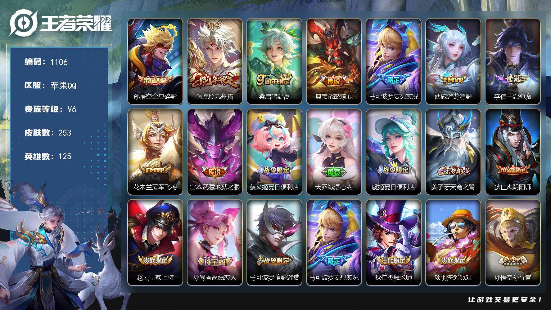PX_2251184-【253皮1典藏8传说,全息碎影,九州拓,游龙清影,妄想实况】苹果Q-V7-最强王者段位-125英雄-253皮肤-1典藏-0珍品无双-0无双-0珍品传说-8传说-71史诗 【英雄全皮】:空空儿全皮 【荣耀典藏】:孙悟空全息碎影 【传说皮肤】:澜愿照九州拓,桑启鸣野蒿,典韦战鼓燎原,马可波罗妄想实况,西施游龙清影,李信一念神魔,花木兰冠军飞将,宫本武藏地狱之眼 【限定皮肤】:蔡文姬夏日便利店,大乔绒语心约,虞姬夏日便利店,姜子牙天穹之誓,狄仁杰阴阳师,赵云皇家上将,孙尚香蔷薇恋人,马可波罗暗影游猎,马可波罗妄想实况,狄仁杰魔术师,项羽海滩派对,孙悟空孙行者,李元芳云中旅人,雅典娜黎明之约,蔡文姬繁星吟游,鬼谷子五谷丰年,黄忠烈魂,裴擒虎擒涛扼浪,云中君纤云弄巧,上官婉儿梁祝,嫦娥拒霜思,西施玲珑珍味,鲁班大师探海日志,桑启海盐诗旅,戈娅驭风魔法,艾琳流音漫舞,司空震地狱燃心,阿古朵江河有灵,张良古海寻踪,蒙犽百解令,高渐离燃音魔法,妲己灵卜魔法,鬼谷子天穹祈灯,姬小满妄想食味,沈梦溪龙舞盛年,鲁班七号蔬乡物语,李元芳蔬乡物语,刘邦剑破天穹,程咬金群星魔术团,镜青焰无极,项羽苍威无极,刘备异域游侠,周瑜熔金海岸 【年限皮肤】:黄忠烈魂 【赛季限定】:张良古海寻踪,李元芳云中旅人,雅典娜黎明之约,裴擒虎擒涛扼浪,鲁班大师探海日志,桑启海盐诗旅,鬼谷子天穹祈灯,刘邦剑破天穹,姜子牙天穹之誓 【战令限定】:蔡文姬夏日便利店,虞姬夏日便利店,马可波罗暗影游猎,艾琳流音漫舞,西施玲珑珍味,司空震地狱燃心,戈娅驭风魔法,高渐离燃音魔法,妲己灵卜魔法,鲁班七号蔬乡物语,李元芳蔬乡物语,镜青焰无极,项羽苍威无极 【史诗皮肤】:项羽苍穹之光,露娜紫霞仙子,赵云皇家上将,赵云未来纪元,甄姬冰雪圆舞曲,王昭君偶像歌手,狄仁杰魔术师,廉颇地狱岩魂,宫本武藏鬼剑武藏,孙尚香蔷薇恋人,孙尚香水果甜心,嬴政摇滚巨星,妲己魅力维加斯,妲己女仆咖啡,墨子金属风暴,吕布圣诞狂欢,刘禅绅士熊喵,曹操幽灵船长,吕布末日机甲,花木兰水晶猎龙者,夏侯惇乘风破浪,小乔缤纷独角兽,兰陵王暗隐猎兽者,诸葛亮黄金分割率,安琪拉心灵骇客,百里守约特工魅影,铠曙光守护者,刘禅天才门将,李元芳逐浪之夏,程咬金功夫厨神,白起星夜王子,阿轲节奏热浪,孙策猫狗日记,大乔猫狗日记,伽罗箭羽风息,狄仁杰鹰眼统帅,上官婉儿梁祝,蔡文姬繁星吟游,小乔青蛇,黄忠烈魂,孙尚香时之恋人,马可波罗暗影游猎,云中君纤云弄巧,杨戬天秀启明,沈梦溪月团寄思,孙悟空孙行者,嫦娥拒霜思,雅典娜黎明之约,鬼谷子五谷丰年,刘禅电玩爆裂旋风,戈娅驭风魔法,司空震地狱燃心,阿古朵江河有灵,蒙犽百解令,妲己灵卜魔法,高渐离燃音魔法,姬小满妄想食味,鲁班七号蔬乡物语,镜青焰无极,蔡文姬夏日便利店,亚连破空之剑,马可波罗星界特工,百里守约百相守梦,牛魔星界战将,孙膑茶境仙,狄仁杰绮世丹青,阿轲化蝶舞,刘禅鸭鸭历险记,狂铁龙之律动,亚瑟布丁狗之誓,公孙离涂山容容,女娲万灵启世 【其他皮肤】:项羽海滩派对,韩信教廷特使,露娜哥特玫瑰,达摩大发明家,赵云白执事,赵云忍炎影,芈月红桃皇后,白起白色死神,牛魔西部大镖客,扁鹊化身博士,宫本武藏未来纪元,安琪拉玩偶对对碰,孙膑天使之翼,姜子牙时尚教父,妲己少女阿狸,典韦黄金武士,亚瑟死亡骑士,花木兰兔女郎,张飞五福同心,甄姬花好人间,刘备万事如意,宫本武藏万象初新,后羿阿尔法小队,狄仁杰阴阳师,刘备汉昭烈帝,关羽龙腾万里,钟无艳海滩丽影,狂铁命运角斗场,老夫子功夫老勺,诸葛亮掌控之力,李白敏锐之力,鬼谷子幻乐之宴,苏烈坚韧之力,大乔守护之力,明世隐虹云星官,张良幽兰居士,小乔丁香结,吕布野性能量,沈梦溪鲨炮海盗猫,姜子牙炽热元素使,哪吒次元突破,盾山圆桌骑士,狂铁特工战影,廉颇无尽征程,刘禅秘密基地,露娜瓷语鉴心,鲁班大师乓乓大师,马可波罗潮玩牛仔,程咬金无双福将,刘邦虎啸剑宗,米莱狄契约魔法,蒙犽胡桃狂想曲,蒙恬蔚蓝守将,李元芳云中旅人,刘备潮玩造梦师,桑启海盐诗旅,海月幻泉雾影,猪八戒潮玩探月行,白起乐园追猎者,赵怀真太极少年,裴擒虎擒涛扼浪,太乙真人劲辣红锅,莱西奥西部游侠,鲁班大师探海日志,西施玲珑珍味,姬小满零食大作战,李元芳妄想特派,艾琳流音漫舞,张良古海寻踪,钟无艳聚星闪耀,亚连破局者,兰陵王幻夜行动,曹操决胜大满贯,后羿完美运算,程咬金暖冬絮语,鬼谷子天穹祈灯,妲己灵卜魔法,海诺时空谍影,嫦娥漠中幻影,朵莉亚金色潮汐,廉颇功夫炙烤,亚瑟鸿运当头,沈梦溪龙舞盛年,钟无艳春野之旅,李元芳蔬乡物语,扁鹊无尽旅途,刘邦剑破天穹,盘古经纬探寻者,程咬金群星魔术团,项羽苍威无极,大司命暗都幽影,刘备异域游侠,貂蝉长夏之忆,姜子牙天穹之誓,周瑜熔金海岸,虞姬夏日便利店,大乔绒语心约,孙悟空神迹守卫,盘古敬我三分,东皇太一噬灭天穹,老夫子百相守梦,干将莫邪雾都夜雨,吕布逐霄战戟,苍苍林狼骑,太乙真人谧流熔炉,典韦铁骨偃魂,马超访茗客,西施雪境奇遇,姜子牙星梦巡礼,东皇太一金福满堂,达摩爆裂喵拳,少司缘灵卦秘语,明世隐景韶洛都,戈娅玫蓝誓约,刘备浪漫序章,钟馗虚灵犬护,沈梦溪鸭鸭历险记,苏烈春野闲踪,张良灵野札记,阿古朵布丁狗之约,露娜命运加冕,姬小满小满鸭,白起死霸装,甄姬逆浪荇歌,空空儿戏梦巡演,莱西