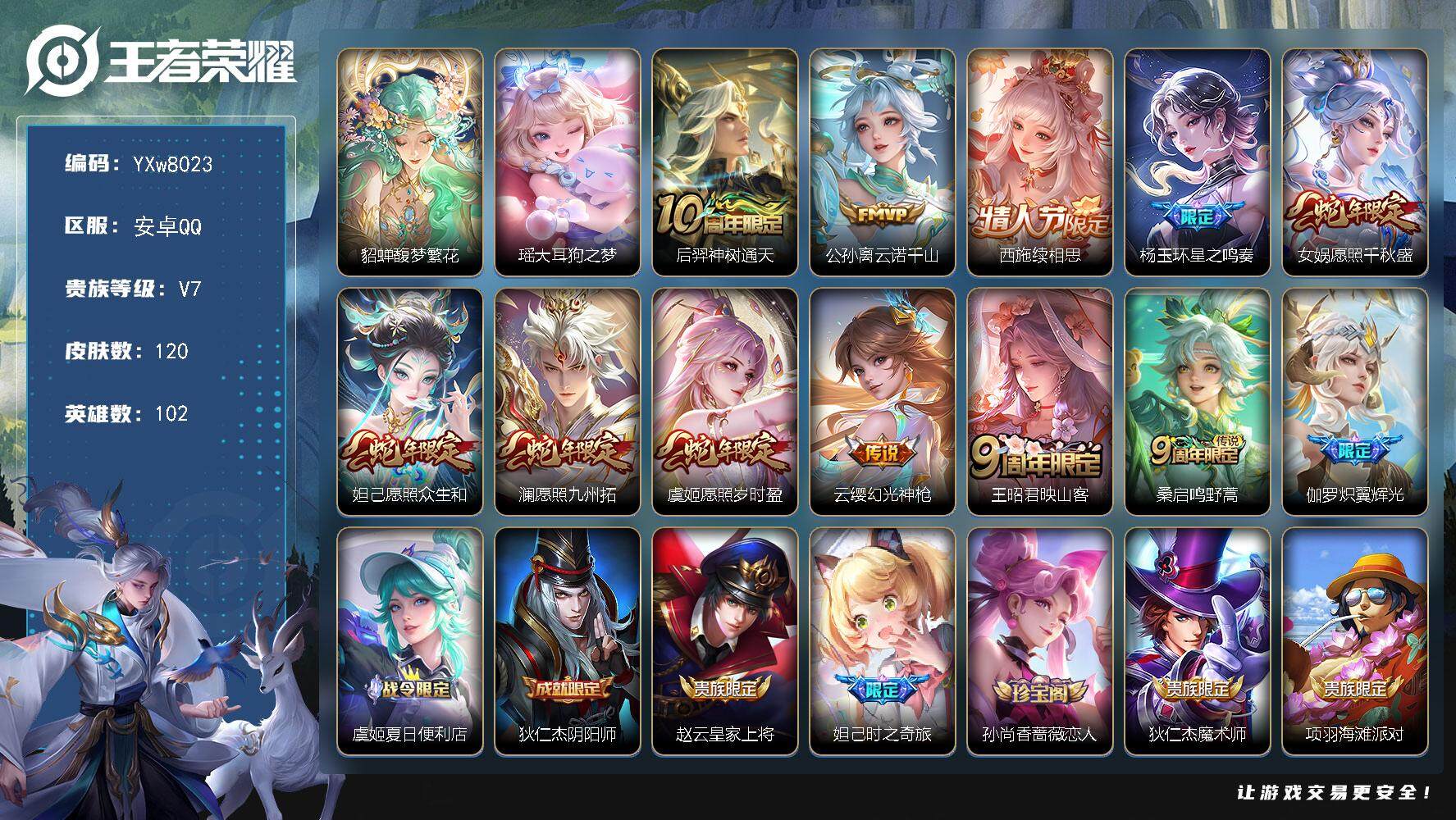 PX_2305654-??女号·馥梦繁花·大耳狗之梦·繁花交响诗天幕·续相思·星之鸣奏·愿照千秋盛·愿照众生和·愿照岁时盈·云诺千山·映山客·炽翼辉光·妲己时之奇旅·玲珑珍味·可二次】YXw8023-安卓Q-102英雄-120皮肤-1王者印记-30铭文-贵族积分3w【贵族7】【·1珍品无双·1珍品·1传说·1天幕·17按键】【因赛季更新游戏段付以上号为准!】 【英雄全皮】:孙权全皮,影全皮,少司缘全皮 【珍品无双】:貂蝉馥梦繁花 【珍品传说】:瑶大耳狗之梦 【天幕】:繁花交响诗天幕 【传说皮肤】:后羿神树通天,公孙离云诺千山,西施续相思,杨玉环星之鸣奏,女娲愿照千秋盛,妲己愿照众生和,澜愿照九州拓,虞姬愿照岁时盈,云缨幻光神枪,王昭君映山客,桑启鸣野蒿,伽罗炽翼辉光 【限定皮肤】:虞姬夏日便利店,狄仁杰阴阳师,赵云皇家上将,妲己时之奇旅,孙尚香蔷薇恋人,狄仁杰魔术师,项羽海滩派对,伽罗炽翼辉光,西施玲珑珍味,艾琳流音漫舞 【年限皮肤】:伽罗炽翼辉光 【战令限定】:虞姬夏日便利店,艾琳流音漫舞,西施玲珑珍味 【史诗皮肤】:露娜紫霞仙子,赵云皇家上将,甄姬冰雪圆舞曲,狄仁杰魔术师,廉颇地狱岩魂,孙尚香蔷薇恋人,孙尚香水果甜心,妲己魅力维加斯,墨子金属风暴,刘禅绅士熊喵,李白千年之狐,小乔缤纷独角兽,兰陵王暗隐猎兽者,安琪拉心灵骇客,百里守约特工魅影,蔡文姬舞动绿茵,白起星夜王子,阿轲节奏热浪,伽罗箭羽风息,狄仁杰鹰眼统帅,小乔青蛇,西施诗语江南,妲己时之奇旅,少司缘涂山红红,百里守约百相守梦,孙膑茶境仙,姬小满飞车小橘子,白起苍鳞隐世,赵怀真器灵浮梦炉,阿轲化蝶舞,刘禅鸭鸭历险记,狂铁龙之律动,扁鹊灵蛊蚀心,周瑜百相守梦,黄忠百相守梦,朵莉亚幻珠鲛人,西施织梦人,公孙离涂山容容,莱西奥光弋星穹,女娲万灵启世,少司缘巫礼祀神 【其他皮肤】:项羽海滩派对,露娜哥特玫瑰,程咬金星际陆战队,白起白色死神,宫本武藏未来纪元,典韦黄金武士,亚瑟死亡骑士,花木兰兔女郎,张飞五福同心,甄姬花好人间,狄仁杰阴阳师,王昭君幻想奇妙夜,大乔守护之力,明世隐虹云星官,妲己紫罗兰之誓,西施玲珑珍味,艾琳流音漫舞,海诺时空谍影,朵莉亚金色潮汐,虞姬夏日便利店,东皇太一噬灭天穹,老夫子百相守梦,米莱狄怪诞之夜,苍苍林狼骑,太乙真人谧流熔炉,典韦铁骨偃魂,马超访茗客,影魅影绮裳,西施雪境奇遇,少司缘灵卦秘语,戈娅玫蓝誓约,钟馗虚灵犬护,沈梦溪鸭鸭历险记,苏烈春野闲踪,小乔秘证寻踪,张良灵野札记,阿古朵布丁狗之约,露娜命运加冕,雅典娜潮玩士官长,甄姬逆浪荇歌,孙策百相守梦,莱西奥踏浪烽翎,鬼谷子克喵,桑启青衿临川,哪吒罗小黑战记,亚瑟荣光之誓,明世隐往忆晖光,张良罗小黑战记,孙权径山谋武,艾琳鹤鸣心笺,蚩奼极光幻客,露娜绯红之刃,花木兰剑舞者,王昭君精灵公主,小乔万圣前夜,杨戬埃及法老,太乙真人圆桌骑士,大乔伊势巫女,公孙离花间舞,杨玉环霓裳曲,弈星踏雪寻梅,伽罗花见巫女,上官婉儿修竹墨客,嫦娥露花倒影,蒙犽归虚梦演 【内测皮肤】:孙尚香蔷薇恋人