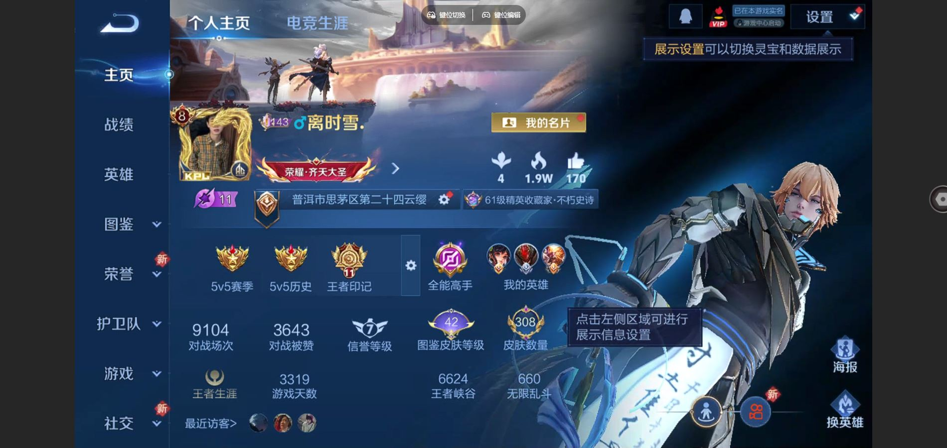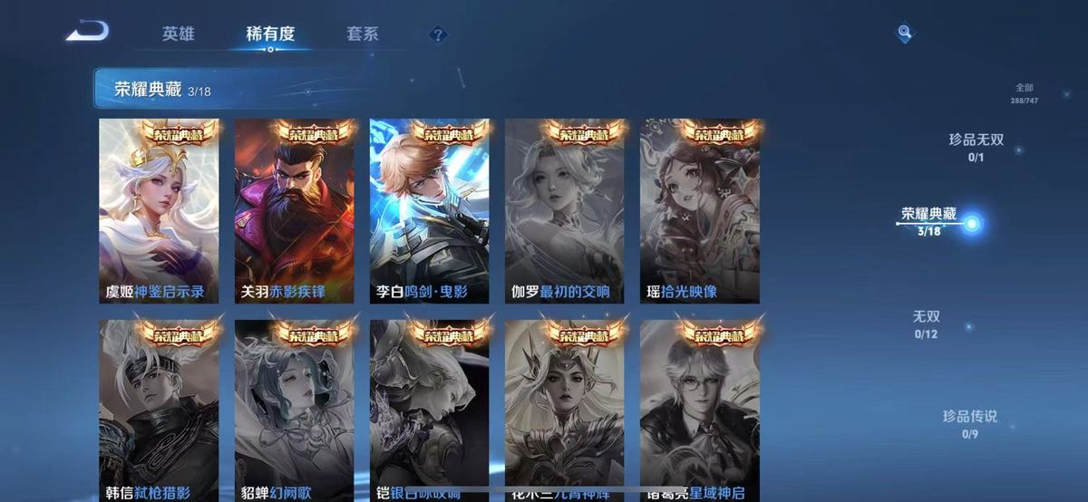 PX_2305608-实名:,可修改,贵族等级:,V8,英雄数:,127,皮肤数:,288,荣耀水晶:,鸣剑·曳影,赤影疾锋,神鉴启示录,传说皮:,黄金狮子座,炽阳神光,李逍遥,超时空战士-狄仁杰,无双飞将,音你闪耀,山海·炽霜斩,澜逐花归海,琥珀纪元马超,乘龙·淬吴钩,幻光神枪,祥瑞亨通,限定皮:,祈雪灵祝,白晶晶,白虎志,默契交锋-花木兰,五谷丰年,诗剑行,怒海麟威,山海·玄木吟,鸣野蒿,逐霄战戟,愿照·千秋盛,愿照·山河定,愿照·岁时盈