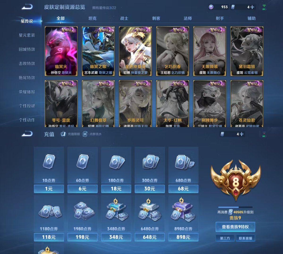 PX_2272152-实名:,可修改,贵族等级:,V8,英雄数:,125,皮肤数:,251,荣耀水晶:,银白咏叹调,传说皮:,黄金狮子座,云鹰飞将,绛天战甲,久胜战神,炽阳神光,一念神魔,末日机甲-孙尚香,地狱火,零号·赤焰,淬星耀世,末日机甲-孙策,挚爱之约,无双飞将,碎云,山海·炽霜斩,霜月吟,落雪白狼,幻光神枪,神树通天,限定皮:,李小龙,岱宗,幽恒,飞衡,青龙志,朱雀志,如梦令-后羿,寅虎·赤拳,深海之息,五谷丰年,诗剑行,怒海麟威,山海·玄木吟,齐天大圣,无限倾心-虞姬,无限倾心-项羽