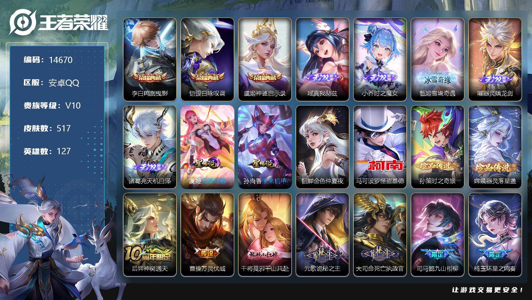 PX_2257877-可换绑【V10精品号,3典藏,5无双,3珍品,生肖限定24个,多传说限定号】,游戏内不影响,全场禁言到2026.1.11,幸运值282,37按键,3星传说,1天幕,65戳戳,16王者印记,五级铭文290,可二次BX1332,安卓Q-V10-517皮肤-3典藏-5无双-3珍品传说-87传说-158史诗【英雄全皮】:墨子全皮,元歌全皮,司马懿全皮,刘邦全皮,孙权全皮,朵莉亚全皮,娜可露露全皮,橘右京全皮,刘备全皮,钟馗全皮,鬼谷子全皮,李信全皮,嫦娥全皮,蒙恬全皮,夏洛特全皮,司空震全皮,赵怀真全皮,戈娅全皮,影全皮,海诺全皮【荣耀典藏】:李白鸣剑曳影,铠银白咏叹调,虞姬神鉴启示录【无双皮肤】:瑶真我赫兹,小乔时之魔女,甄姬雪境奇遇,曜器灵螭龙剑,诸葛亮天机白泽【珍品传说】:马可波罗怪盗基德,孙策时之奇旅,嫦娥器灵落星盏【星元皮肤】:貂蝉金色仲夏夜,孙尚香未来机甲,虞姬无限倾慕【天幕】:秋月华灯天幕【传说皮肤】:后羿神树通天,曹操万灵伏威,干将莫邪千山共赴,元歌诡秘之主,大司命死亡执政官,司马懿九山相柳,杨玉环星之鸣奏,后羿千劫归真,司空震愿照山河定,女娲愿照千秋盛,妲己愿照众生和,澜愿照九州拓,蔡文姬愿照福禄聚,虞姬愿照岁时盈,云缨幻光神枪,裴擒虎祥瑞亨通,嬴政玄雷天君,王昭君映山客,桑启鸣野蒿,朵莉亚心动手记,云中君群星魔术团,墨子黄金天蝎座,海月金乌负日,典韦战鼓燎原,赵云乘龙铭钟鼎,澜逐花归海,艾琳觅芳踪,大乔时之奇旅,鲁班七号时之奇旅,兰陵王影龙天霄,吕布遇见神鼓,上官婉儿妄想奇谈,马可波罗妄想实况,亚瑟追逃游戏,张飞百相守梦,公孙离记忆之芯,夏洛特浮生妄,干将莫邪画中仙,花木兰燃星之曲,虞姬无限倾心,伽罗炽翼辉光,孙悟空齐天大圣,小乔山海琳琅生,曜山海苍雷引,李信山海炽霜斩,狄仁杰神器狴犴令,不知火舞绯月行,王昭君星穹之声,百里守约碎云,橘右京枫霜尽,娜可露露前尘镜,马可波罗深海之息,马超无双飞将,大乔挚爱花嫁,孙策挚爱之约,露娜启示之音,裴擒虎寅虎赤拳,鲁班七号寅虎瑞焰,孙尚香异界灵契,赵云淬星耀世,王昭君乞巧织情,西施游龙清影,周瑜音你心动,小乔音你心动,公孙离祈雪灵祝,诸葛亮时雨天司,铠绛天战甲,镜炽阳神光,虞姬启明星使,关羽武圣,曜云鹰飞将,李信一念神魔,刘备时之恋人,伽罗太华,貂蝉猫影幻舞,张良黄金白羊座,干将莫邪久胜战神,虞姬云霓雀翎,达摩黄金狮子座,花木兰冠军飞将,梦奇胖达荣荣,后羿黄金射手座,诸葛亮武陵仙君,貂蝉仲夏夜之梦,孙尚香末日机甲,宫本武藏地狱之眼,狄仁杰超时空战士【限定皮肤】:蔡文姬夏日便利店,虞姬夏日便利店,姜子牙天穹之誓,杨戬破阵退雄兵,狄仁杰阴阳师,廉颇寅虎御盾,小乔山海琳琅生,赵云皇家上将,赵云引擎之心,赵云百木心枪,墨子神迹守卫,墨子降魔,妲己时之奇旅,嬴政优雅恋人,孙尚香蔷薇恋人,孙尚香异界灵契,鲁班七号寅虎瑞焰,鲁班七号时之奇旅,庄周云端筑梦师,庄周高山流水,高渐离死亡摇滚,钟无艳超时空战士,孙膑天狼运算者,孙膑寅虎展翼,扁鹊奇幻香踪,白起夜都怪侠,芈月幻夜卜梦,吕布御风骁将,吕布遇见神鼓,周瑜赤莲之焰,元歌云间偶戏,元歌无心,甄姬女儿国国王,甄姬落雪兰心,典韦蓝屏警告,马可波罗暗影游猎,马可波罗深海之息,马可波罗山海玄木吟,马可波罗妄想实况,狄仁杰魔术师,狄仁杰万华元夜,狄仁杰神器狴犴令,达摩沙漠行僧,项羽海滩派对,老夫子醍醐杖,老夫子航海奇遇记,关羽武圣,关羽百相守梦,貂蝉逐梦之音,安琪拉魔法小厨娘,程咬金演武夺筹,露娜一生所爱,露娜启示之音,刘邦夺宝奇兵,韩信傲雪梅枪,王昭君午后时光,王昭君星穹之声,兰陵王影龙天霄,兰陵王金庭之子,花木兰青春决赛季,花木兰燃星之曲,不知火舞绯月行,娜可露露前尘镜,橘右京枫霜尽,亚瑟追逃游戏,孙悟空美猴王,孙悟空至尊宝,孙悟空孙行者,孙悟空齐天大圣,后羿如梦令,后羿圣弓游侠,刘备百相守梦,张飞百相守梦,李元芳匿光侦查者,李元芳云中旅人,虞姬启明星使,虞姬无限倾心,钟馗神迹守卫,钟馗驱傩正仪,杨玉环遇见飞天,杨玉环寅虎心曲,杨戬潮玩骑兵,女娲朔望之晖,哪吒逐梦之翼,干将莫邪真爱魔法,干将莫邪画中仙,雅典娜单词大作战,雅典娜黎明之约,蔡文姬繁星吟游,鬼谷子原初探秘者,鬼谷子五谷丰年,诸葛亮武陵仙君,诸葛亮时雨天司,大乔白鹤梁神女,大乔挚爱花嫁,大乔时之奇旅,黄忠火炮绅士,铠青龙志,苏烈千军破阵,百里玄策原初追逐者,梦奇顽趣,公孙离祈雪灵祝,沈梦溪星空之诺,沈梦溪大漠名商,沈梦溪匿光破解者,明世隐疑决卦,明世隐吟游魔法,裴擒虎天狼狩猎者,裴擒虎李小龙,裴擒虎寅虎赤拳,裴擒虎擒涛扼浪,狂铁电玩高手,瑶山海碧波行,云中君纤云弄巧,李信山海炽霜斩,伽罗太华,伽罗天狼溯光者,伽罗炽翼辉光,孙策挚爱之约,猪八戒西部大镖客,上官婉儿梁祝,上官婉儿妄想奇谈,嫦娥如梦令,嫦娥拒霜思,嫦娥暖冬兔眠,曜山海苍雷引,西施玲珑珍味,西施至美乘鲤谣,蒙犽狂想玩偶喵,鲁班大师探海日志,盘古冰霜神祇,镜匿光追影者,桑启海盐诗旅,夏洛特浮生妄,暃星界游侠,戈娅驭风魔法,艾琳女武神,艾琳流音漫舞,赵怀真鹤归松栖,司空震地狱燃心,阿古朵江河有灵,张良古海寻踪,蒙犽百解令,艾琳觅芳踪,蒙恬荣光圣徽,高渐离燃音魔法,妲己灵卜魔法,鬼谷子天穹祈灯,伽罗琥珀纪元,姬小满妄想食味,小乔时之魔女,大乔乘龙忆丹青,赵云乘龙铭钟鼎,沈梦溪龙舞盛年,鲁班