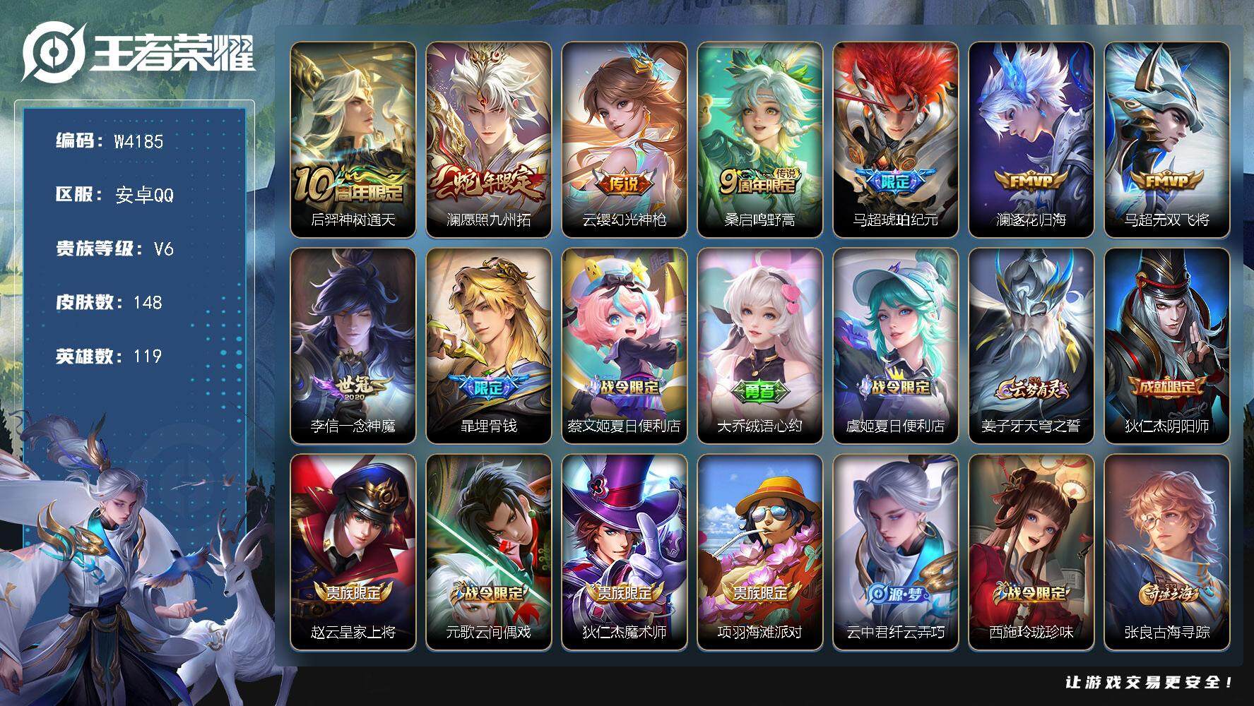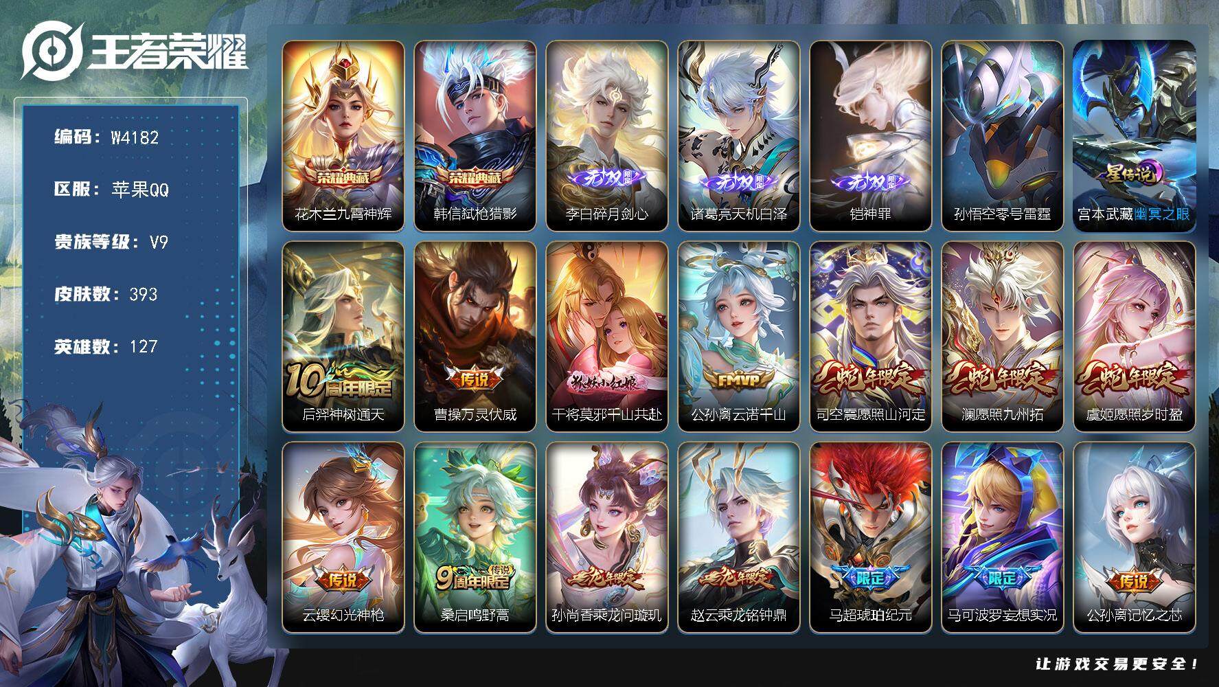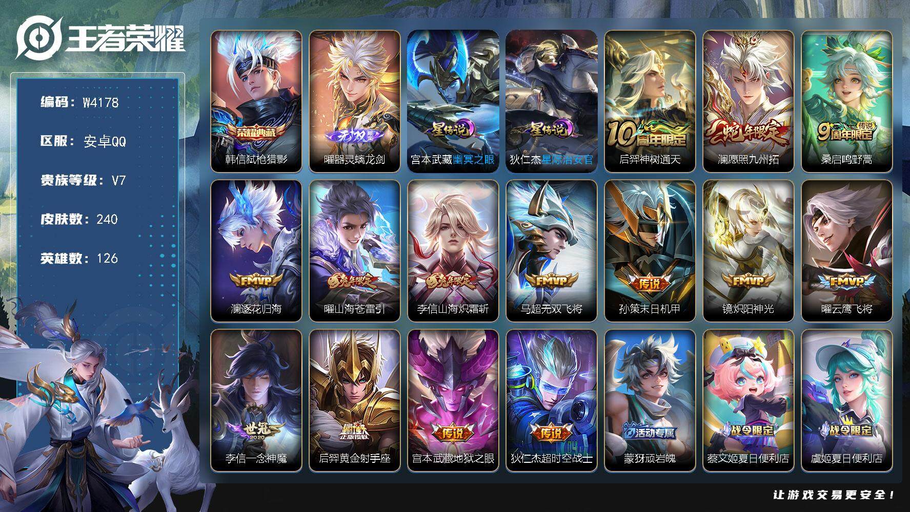 PX_2304928-【W4177】安卓QQ-有二次-贵4-126英雄-145皮肤-1典藏-2传说-40限定-2按键-灵宝-10印记-3474贵族积分-营地1736048616-热门皮肤-铠银白咏叹调,后羿神树通天,桑启鸣野蒿,雅典娜冰冠公主,花木兰水晶猎龙者,吕布末日机甲,李白千年之狐,甄姬冰雪圆舞曲,露娜紫霞仙子