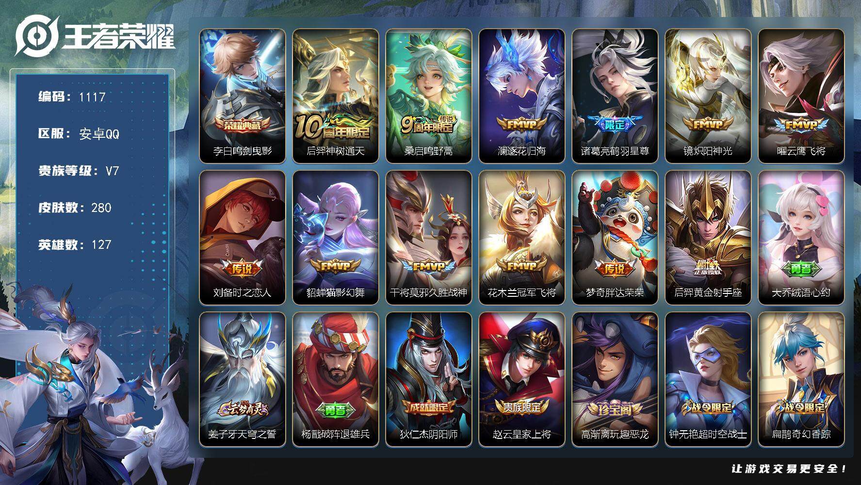 PX_2251212-【李白典藏,澜逐花归海,诸葛亮鹤羽星尊,至尊宝,280皮12传说】安卓Q-V7-最强王者段位-127英雄-280皮肤-1典藏-0珍品无双-0无双-0珍品传说-12传说-74史诗 【英雄全皮】:戈娅全皮,影全皮 【荣耀典藏】:李白鸣剑曳影 【传说皮肤】:后羿神树通天,桑启鸣野蒿,澜逐花归海,诸葛亮鹤羽星尊,镜炽阳神光,曜云鹰飞将,刘备时之恋人,貂蝉猫影幻舞,干将莫邪久胜战神,花木兰冠军飞将,梦奇胖达荣荣,后羿黄金射手座 【限定皮肤】:大乔绒语心约,姜子牙天穹之誓,杨戬破阵退雄兵,狄仁杰阴阳师,赵云皇家上将,高渐离玩趣恶龙,钟无艳超时空战士,扁鹊奇幻香踪,元歌无心,甄姬落雪兰心,典韦蓝屏警告,典韦岱宗,狄仁杰魔术师,狄仁杰万华元夜,达摩沙漠行僧,项羽海滩派对,老夫子航海奇遇记,程咬金演武夺筹,兰陵王金庭之子,孙悟空至尊宝,孙悟空孙行者,李元芳银河之约,李元芳云中旅人,钟馗驱傩正仪,杨戬潮玩骑兵,干将莫邪胡桃夹子,鬼谷子五谷丰年,诸葛亮鹤羽星尊,苏烈千军破阵,百里玄策原初追逐者,梦奇顽趣,公孙离玉兔公主,沈梦溪大漠名商,裴擒虎李小龙,裴擒虎擒涛扼浪,云中君纤云弄巧,上官婉儿梁祝,嫦娥拒霜思,嫦娥暖冬兔眠,西施玲珑珍味,鲁班大师探海日志,桑启海盐诗旅,暃星界游侠,戈娅驭风魔法,艾琳流音漫舞,司空震地狱燃心,阿古朵江河有灵,张良古海寻踪,蒙犽百解令,蒙恬荣光圣徽,高渐离燃音魔法,妲己灵卜魔法,鬼谷子天穹祈灯,伽罗琥珀纪元,百里玄策超元猎域,沈梦溪龙舞盛年,鲁班七号蔬乡物语,李元芳蔬乡物语,刘邦剑破天穹,程咬金群星魔术团,刘备异域游侠,周瑜熔金海岸 【年限皮肤】:典韦岱宗 【赛季限定】:狄仁杰万华元夜,达摩沙漠行僧,程咬金演武夺筹,兰陵王金庭之子,张良古海寻踪,李元芳云中旅人,钟馗驱傩正仪,苏烈千军破阵,百里玄策原初追逐者,梦奇顽趣,沈梦溪大漠名商,裴擒虎擒涛扼浪,鲁班大师探海日志,桑启海盐诗旅,鬼谷子天穹祈灯,蒙恬荣光圣徽,刘邦剑破天穹,姜子牙天穹之誓 【战令限定】:钟无艳超时空战士,扁鹊奇幻香踪,甄姬落雪兰心,典韦蓝屏警告,老夫子航海奇遇记,艾琳流音漫舞,李元芳银河之约,杨戬潮玩骑兵,嫦娥暖冬兔眠,西施玲珑珍味,司空震地狱燃心,暃星界游侠,戈娅驭风魔法,高渐离燃音魔法,妲己灵卜魔法,鲁班七号蔬乡物语,李元芳蔬乡物语 【史诗皮肤】:鲁班七号电玩小子,项羽苍穹之光,露娜紫霞仙子,阿轲暗夜猫娘,赵云皇家上将,赵云未来纪元,甄姬冰雪圆舞曲,王昭君偶像歌手,狄仁杰魔术师,廉颇地狱岩魂,宫本武藏鬼剑武藏,孙尚香水果甜心,嬴政暗夜贵公子,嬴政摇滚巨星,妲己魅力维加斯,妲己女仆咖啡,墨子龙骑士,墨子金属风暴,刘禅绅士熊喵,吕布末日机甲,张飞乱世虎臣,孙悟空至尊宝,花木兰水晶猎龙者,夏侯惇乘风破浪,小乔缤纷独角兽,雅典娜冰冠公主,安琪拉心灵骇客,百里守约特工魅影,刘禅天才门将,李元芳逐浪之夏,程咬金功夫厨神,阿轲节奏热浪,典韦蓝屏警告,狄仁杰鹰眼统帅,上官婉儿梁祝,李元芳银河之约,娜可露露晚萤,典韦岱宗,橘右京修罗,孙尚香时之恋人,百里玄策原初追逐者,裴擒虎李小龙,云中君纤云弄巧,老夫子航海奇遇记,孙悟空孙行者,司马懿暗渊魔法,嫦娥拒霜思,公孙离玉兔公主,钟无艳超时空战士,鬼谷子五谷丰年,元歌无心,梦奇顽趣,暃星界游侠,扁鹊奇幻香踪,刘禅电玩爆裂旋风,戈娅驭风魔法,司空震地狱燃心,阿古朵江河有灵,蒙犽百解令,周瑜雪夜绮愿,妲己灵卜魔法,高渐离燃音魔法,蒙恬荣光圣徽,伽罗琥珀纪元,百里玄策超元猎域,鲁班七号蔬乡物语,黄忠怒海争锋,亚连破空之剑,牛魔星界战将,弈星万物之道,阿轲化蝶舞,狂铁龙之律动,黄忠百相守梦,西施织梦人,女娲万灵启世 【其他皮肤】:项羽海滩派对,韩信教廷特使,韩信街头霸王,露娜哥特玫瑰,阿轲爱心护理,达摩大发明家,赵云白执事,赵云忍炎影,芈月红桃皇后,程咬金星际陆战队,白起白色死神,牛魔西部大镖客,武则天东方不败,扁鹊化身博士,宫本武藏未来纪元,安琪拉玩偶对对碰,孙膑天使之翼,姜子牙时尚教父,妲己少女阿狸,典韦黄金武士,亚瑟死亡骑士,达摩拳王,花木兰兔女郎,张飞五福同心,甄姬花好人间,刘备万事如意,后羿阿尔法小队,狄仁杰阴阳师,刘备纽约教父,刘备汉昭烈帝,关羽龙腾万里,钟无艳海滩丽影,王昭君幻想奇妙夜,老夫子功夫老勺,孙尚香沉稳之力,诸葛亮掌控之力,李白敏锐之力,鬼谷子幻乐之宴,苏烈坚韧之力,大乔守护之力,明世隐虹云星官,张良幽兰居士,小乔丁香结,吕布野性能量,高渐离玩趣恶龙,沈梦溪鲨炮海盗猫,哪吒次元突破,盾山圆桌骑士,狂铁特工战影,狄仁杰万华元夜,刘禅秘密基地,露娜瓷语鉴心,程咬金演武夺筹,钟馗驱傩正仪,鲁班大师乓乓大师,苏烈千军破阵,干将莫邪胡桃夹子,马可波罗潮玩牛仔,达摩沙漠行僧,程咬金无双福将,刘邦虎啸剑宗,兰陵王金庭之子,米莱狄契约魔法,沈梦溪大漠名商,蒙犽胡桃狂想曲,蒙恬蔚蓝守将,甄姬落雪兰心,李元芳云中旅人,戈娅危途狂花,刘备潮玩造梦师,桑启海盐诗旅,嫦娥暖冬兔眠,海月幻泉雾影,猪八戒潮玩探月行,牛魔牛运亨通,白起乐园追猎者,赵怀真太极少年,裴擒虎擒涛扼浪,杨戬潮玩骑兵,太乙真人劲辣红锅,莱西奥西部游侠,鲁班大师探海日志,西施玲珑珍味,姬小满零食大作战,李元芳妄想特派,哪吒热血海滩,艾琳流音漫舞,张良古海寻踪,钟无艳聚星闪耀,海月王牌
