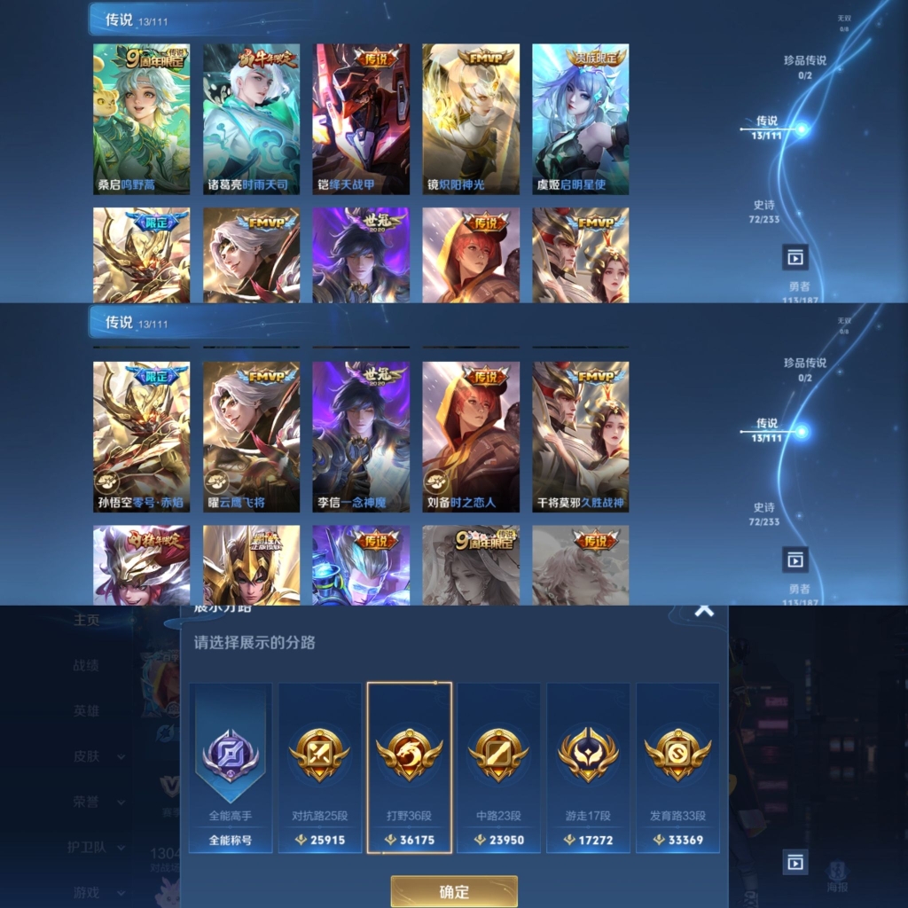 PX_2073185-野36段,发育路33段,中路23段,对抗路25段,省标成吉思汗,3市标,鸣剑·曳影13传说炽阳神光,云鹰飞将,一念神魔,白虎志,绛天战甲,久胜战神,时雨天司,黄金射手座,零号·赤焰,星际治安官,时之恋人(刘备),启明星使,星界游侠,赏金猎手,顽趣,狂想玩偶喵,神威,纤云弄巧,拒霜思,梁祝,暗渊魔法,猫狗日记(孙策),云间偶戏,无心,胡桃异编号:QNNXV83