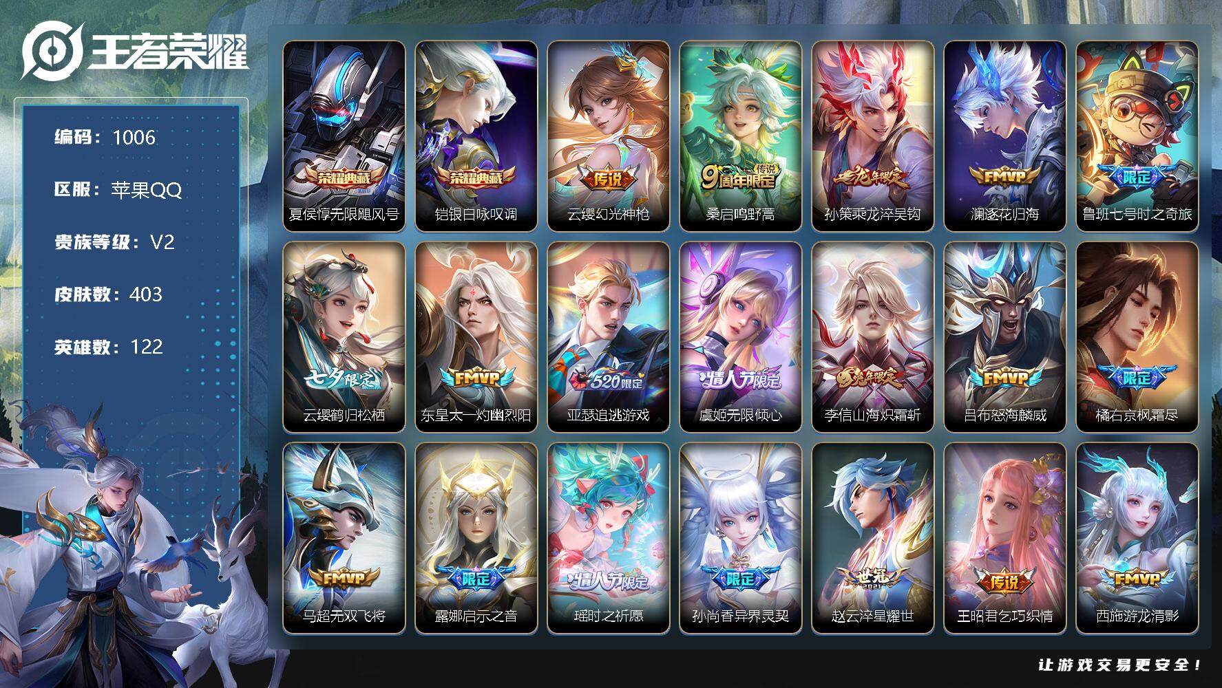 PX_2210580-【403皮2典藏30传说,无限飓风,银白咏叹调,李信全皮,逐花归海,游龙清影,时之祈愿】:苹果Q-V2-至尊星耀V段位-122英雄-403皮肤-2典藏-0珍品无双-0无双-0珍品传说-30传说-122史诗 【英雄全皮】:橘右京全皮,李信全皮,猪八戒全皮,鲁班大师全皮,赵怀真全皮 【荣耀典藏】:夏侯惇无限飓风号,铠银白咏叹调 【传说皮肤】:云缨幻光神枪,桑启鸣野蒿,孙策乘龙淬吴钩,澜逐花归海,鲁班七号时之奇旅,云缨鹤归松栖,东皇太一灼幽烈阳,亚瑟追逃游戏,虞姬无限倾心,李信山海炽霜斩,吕布怒海麟威,橘右京枫霜尽,马超无双飞将,露娜启示之音,瑶时之祈愿,孙尚香异界灵契,赵云淬星耀世,王昭君乞巧织情,西施游龙清影,兰陵王默契交锋,诸葛亮时雨天司,镜炽阳神光,虞姬启明星使,曜云鹰飞将,李信一念神魔,干将莫邪久胜战神,诸葛亮武陵仙君,貂蝉仲夏夜之梦,孙尚香末日机甲,狄仁杰超时空战士 【限定皮肤】:白起狰,姜子牙天穹之誓,狄仁杰阴阳师,虞姬凯尔特女王,赵云皇家上将,墨子神迹守卫,孙尚香异界灵契,鲁班七号乒乒小将,鲁班七号时之奇旅,庄周蜃楼王,庄周高山流水,高渐离玩趣恶龙,阿轲迷踪丽影,钟无艳超时空战士,孙膑妖精王,孙膑天狼运算者,扁鹊炼金王,扁鹊奇幻香踪,白起夜都怪侠,芈月重明,芈月白晶晶,芈月幻夜卜梦,元歌云间偶戏,元歌无心,甄姬女儿国国王,甄姬游园惊梦,甄姬落雪兰心,曹操烛龙,典韦穷奇,典韦岱宗,马可波罗暗影游猎,狄仁杰魔术师,狄仁杰万华元夜,达摩星际陆战队,达摩沙漠行僧,项羽海滩派对,项羽霸王别姬,老夫子醍醐杖,老夫子航海奇遇记,程咬金演武夺筹,露娜启示之音,韩信逐梦之影,王昭君午后时光,兰陵王默契交锋,兰陵王金庭之子,花木兰默契交锋,橘右京枫霜尽,亚瑟潮玩骑士王,亚瑟追逃游戏,孙悟空至尊宝,孙悟空孙行者,牛魔奔雷神使,后羿辉光之辰,后羿圣弓游侠,李元芳银河之约,李元芳云中旅人,虞姬霸王别姬,虞姬启明星使,虞姬无限倾心,钟馗驱傩正仪,杨玉环遇见飞天,杨戬潮玩骑兵,女娲朔望之晖,干将莫邪真爱魔法,雅典娜单词大作战,蔡文姬奇迹圣诞,太乙真人饕餮,鬼谷子原初探秘者,鬼谷子五谷丰年,诸葛亮武陵仙君,诸葛亮时雨天司,大乔白鹤梁神女,黄忠烈魂,黄忠火炮绅士,铠青龙志,苏烈千军破阵,弈星混沌棋,公孙离玉兔公主,沈梦溪星空之诺,沈梦溪大漠名商,明世隐疑决卦,明世隐吟游魔法,裴擒虎李小龙,裴擒虎擒涛扼浪,狂铁电玩高手,瑶时之祈愿,云中君纤云弄巧,李信山海炽霜斩,伽罗天狼溯光者,盾山梦圆繁星,猪八戒西部大镖客,猪八戒猪悟能,上官婉儿天狼绘梦者,嫦娥拒霜思,嫦娥暖冬兔眠,西施玲珑珍味,蒙犽狂想玩偶喵,鲁班大师匿光启智者,鲁班大师探海日志,镜匿光追影者,桑启海盐诗旅,暃星界游侠,戈娅驭风魔法,艾琳流音漫舞,赵怀真鹤归松栖,云缨鹤归松栖,司空震地狱燃心,阿古朵江河有灵,张良古海寻踪,蒙犽百解令,高渐离燃音魔法,妲己灵卜魔法,鬼谷子天穹祈灯,伽罗琥珀纪元,姬小满妄想食味,安琪拉乘龙聚宝船,孙策乘龙淬吴钩,沈梦溪龙舞盛年,鲁班七号蔬乡物语,李元芳蔬乡物语,刘邦剑破天穹,芈月浮光幕影,周瑜熔金海岸 【年限皮肤】:铠青龙志,后羿辉光之辰,牛魔奔雷神使,诸葛亮时雨天司,典韦岱宗,马超神威,黄忠烈魂,李信山海炽霜斩,安琪拉乘龙聚宝船,孙策乘龙淬吴钩 【赛季限定】:庄周蜃楼王,孙膑妖精王,扁鹊炼金王,白起狰,芈月重明,曹操烛龙,典韦穷奇,狄仁杰万华元夜,达摩沙漠行僧,老夫子醍醐杖,程咬金演武夺筹,兰陵王金庭之子,张良古海寻踪,李元芳云中旅人,虞姬凯尔特女王,钟馗驱傩正仪,太乙真人饕餮,鬼谷子原初探秘者,苏烈千军破阵,弈星混沌棋,沈梦溪大漠名商,明世隐疑决卦,裴擒虎擒涛扼浪,鲁班大师探海日志,桑启海盐诗旅,鬼谷子天穹祈灯,刘邦剑破天穹,姜子牙天穹之誓 【战令限定】:墨子神迹守卫,阿轲迷踪丽影,钟无艳超时空战士,扁鹊奇幻香踪,白起夜都怪侠,芈月幻夜卜梦,元歌云间偶戏,甄姬落雪兰心,马可波罗暗影游猎,达摩星际陆战队,老夫子航海奇遇记,王昭君午后时光,艾琳流音漫舞,亚瑟潮玩骑士王,后羿圣弓游侠,李元芳银河之约,杨戬潮玩骑兵,女娲朔望之晖,干将莫邪真爱魔法,雅典娜单词大作战,黄忠火炮绅士,沈梦溪星空之诺,明世隐吟游魔法,狂铁电玩高手,猪八戒西部大镖客,嫦娥暖冬兔眠,西施玲珑珍味,蒙犽狂想玩偶喵,司空震地狱燃心,暃星界游侠,戈娅驭风魔法,高渐离燃音魔法,妲己灵卜魔法,鲁班七号蔬乡物语,李元芳蔬乡物语 【史诗皮肤】:露娜紫霞仙子,阿轲暗夜猫娘,赵云皇家上将,赵云未来纪元,貂蝉圣诞恋歌,甄姬冰雪圆舞曲,王昭君偶像歌手,狄仁杰魔术师,廉颇地狱岩魂,宫本武藏鬼剑武藏,孙尚香水果甜心,嬴政暗夜贵公子,嬴政摇滚巨星,妲己魅力维加斯,妲己女仆咖啡,墨子金属风暴,吕布圣诞狂欢,刘禅绅士熊喵,曹操幽灵船长,李白千年之狐,吕布末日机甲,张飞乱世虎臣,项羽霸王别姬,虞姬霸王别姬,孙悟空至尊宝,花木兰水晶猎龙者,刘邦德古拉伯爵,韩信逐梦之影,夏侯惇乘风破浪,小乔缤纷独角兽,兰陵王暗隐猎兽者,诸葛亮黄金分割率,甄姬游园惊梦,亚瑟心灵战警,雅典娜冰冠公主,安琪拉心灵骇客,后羿辉光之辰,百里守约特工魅影,铠曙光守护者,蔡文姬舞动绿茵,刘禅天才门将,李元芳逐浪之夏,程咬金功夫厨神,白起星夜王子,阿轲节奏热浪,杨玉环遇见飞天,蔡文姬奇迹圣诞,