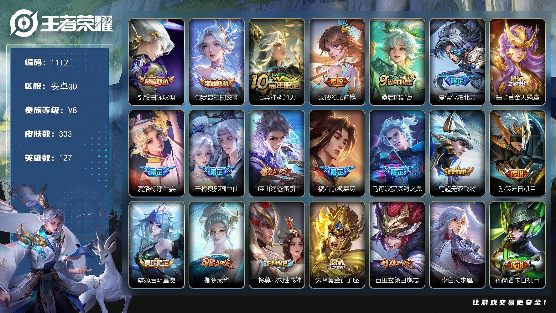 PX_2251190-【2典藏303皮肤21传说,多限定皮,至尊宝,白虎志,深海之息,凤求凰】安卓Q-V8-最强王者段位-127英雄-303皮肤-2典藏-0珍品无双-0无双-0珍品传说-21传说-81史诗 【英雄全皮】:橘右京全皮,夏洛特全皮 【荣耀典藏】:铠银白咏叹调,伽罗最初的交响 【传说皮肤】:后羿神树通天,云缨幻光神枪,桑启鸣野蒿,夏侯惇霜北刀,墨子黄金天蝎座,夏洛特浮生妄,干将莫邪画中仙,曜山海苍雷引,橘右京枫霜尽,马可波罗深海之息,马超无双飞将,孙策末日机甲,虞姬启明星使,伽罗太华,干将莫邪久胜战神,达摩黄金狮子座,百里玄策白虎志,李白凤求凰,孙尚香末日机甲,宫本武藏地狱之眼,狄仁杰超时空战士 【限定皮肤】:白起狰,夏侯惇霜北刀,蔡文姬夏日便利店,大乔绒语心约,虞姬夏日便利店,姜子牙天穹之誓,杨戬破阵退雄兵,李白谪仙醉月,狄仁杰阴阳师,虞姬凯尔特女王,赵云皇家上将,墨子神迹守卫,嬴政白昼王子,庄周高山流水,高渐离死亡摇滚,高渐离玩趣恶龙,阿轲迷踪丽影,钟无艳超时空战士,芈月重明,芈月幻夜卜梦,吕布猎兽之王,周瑜赤莲之焰,元歌云间偶戏,夏侯惇朔风刀,夏侯惇匿光决锋者,甄姬游园惊梦,甄姬落雪兰心,曹操烛龙,马可波罗暗影游猎,马可波罗深海之息,狄仁杰魔术师,狄仁杰万华元夜,达摩星际陆战队,达摩沙漠行僧,项羽海滩派对,老夫子醍醐杖,老夫子航海奇遇记,程咬金演武夺筹,刘邦夺宝奇兵,韩信逐梦之影,王昭君午后时光,兰陵王驯魔猎人,兰陵王金庭之子,橘右京枫霜尽,亚瑟潮玩骑士王,孙悟空至尊宝,后羿圣弓游侠,李元芳银河之约,李元芳云中旅人,虞姬启明星使,钟馗驱傩正仪,女娲朔望之晖,干将莫邪真爱魔法,干将莫邪画中仙,雅典娜单词大作战,雅典娜黎明之约,蔡文姬繁星吟游,太乙真人饕餮,鬼谷子原初探秘者,鬼谷子五谷丰年,黄忠火炮绅士,苏烈千军破阵,百里玄策白虎志,弈星混沌棋,梦奇顽趣,沈梦溪星空之诺,沈梦溪大漠名商,明世隐疑决卦,裴擒虎李小龙,裴擒虎擒涛扼浪,狂铁御狮,狂铁电玩高手,米莱狄御霄,云中君纤云弄巧,伽罗太华,盾山御銮,猪八戒西部大镖客,上官婉儿梁祝,曜山海苍雷引,蒙犽狂想玩偶喵,桑启海盐诗旅,夏洛特浮生妄,艾琳女武神,张良古海寻踪,鬼谷子天穹祈灯,姬小满妄想食味,沈梦溪龙舞盛年,刘邦剑破天穹,程咬金群星魔术团,关羽决胜骁骑,周瑜熔金海岸 【年限皮肤】:百里玄策白虎志,李白凤求凰,伽罗太华,马超神威,曜山海苍雷引 【赛季限定】:白起狰,芈月重明,夏侯惇朔风刀,曹操烛龙,狄仁杰万华元夜,达摩沙漠行僧,老夫子醍醐杖,程咬金演武夺筹,兰陵王金庭之子,张良古海寻踪,李元芳云中旅人,虞姬凯尔特女王,钟馗驱傩正仪,雅典娜黎明之约,太乙真人饕餮,鬼谷子原初探秘者,苏烈千军破阵,弈星混沌棋,梦奇顽趣,沈梦溪大漠名商,明世隐疑决卦,裴擒虎擒涛扼浪,狂铁御狮,米莱狄御霄,盾山御銮,桑启海盐诗旅,鬼谷子天穹祈灯,刘邦剑破天穹,姜子牙天穹之誓 【战令限定】:墨子神迹守卫,蔡文姬夏日便利店,虞姬夏日便利店,嬴政白昼王子,阿轲迷踪丽影,钟无艳超时空战士,芈月幻夜卜梦,吕布猎兽之王,周瑜赤莲之焰,元歌云间偶戏,甄姬落雪兰心,马可波罗暗影游猎,达摩星际陆战队,老夫子航海奇遇记,刘邦夺宝奇兵,王昭君午后时光,兰陵王驯魔猎人,亚瑟潮玩骑士王,后羿圣弓游侠,李元芳银河之约,女娲朔望之晖,干将莫邪真爱魔法,雅典娜单词大作战,黄忠火炮绅士,沈梦溪星空之诺,狂铁电玩高手,猪八戒西部大镖客,蒙犽狂想玩偶喵 【史诗皮肤】:鲁班七号电玩小子,项羽苍穹之光,露娜紫霞仙子,阿轲暗夜猫娘,赵云皇家上将,赵云未来纪元,貂蝉圣诞恋歌,甄姬冰雪圆舞曲,王昭君偶像歌手,狄仁杰魔术师,廉颇地狱岩魂,宫本武藏鬼剑武藏,孙尚香水果甜心,嬴政摇滚巨星,妲己魅力维加斯,墨子龙骑士,墨子金属风暴,吕布圣诞狂欢,曹操幽灵船长,李白千年之狐,张飞乱世虎臣,孙悟空至尊宝,花木兰水晶猎龙者,刘邦德古拉伯爵,韩信逐梦之影,夏侯惇乘风破浪,小乔缤纷独角兽,兰陵王暗隐猎兽者,诸葛亮黄金分割率,甄姬游园惊梦,亚瑟心灵战警,安琪拉心灵骇客,百里守约特工魅影,蔡文姬舞动绿茵,刘禅天才门将,李元芳逐浪之夏,程咬金功夫厨神,白起星夜王子,阿轲节奏热浪,嬴政白昼王子,孙策猫狗日记,狄仁杰鹰眼统帅,兰陵王驯魔猎人,上官婉儿梁祝,蔡文姬繁星吟游,李元芳银河之约,娜可露露晚萤,不知火舞魅语,阿轲迷踪丽影,橘右京修罗,马超神威,孙尚香时之恋人,马可波罗暗影游猎,蒙犽狂想玩偶喵,裴擒虎李小龙,云中君纤云弄巧,元歌云间偶戏,老夫子航海奇遇记,干将莫邪真爱魔法,沈梦溪月团寄思,钟馗乐园奇幻夜,庄周高山流水,黄忠火炮绅士,雅典娜黎明之约,夏洛特永昼,澜赏金猎手,夏侯惇匿光决锋者,貂蝉唤灵魅影,狂铁电玩高手,钟无艳超时空战士,鬼谷子五谷丰年,梦奇顽趣,姬小满妄想食味,关羽决胜骁骑,蔡文姬夏日便利店,亚连破空之剑,弈星炽弈燎原,李白谪仙醉月,牛魔星界战将,赵怀真器灵浮梦炉,后羿石田雨龙 【其他皮肤】:项羽海滩派对,韩信教廷特使,韩信街头霸王,露娜哥特玫瑰,阿轲致命风华,阿轲爱心护理,达摩大发明家,赵云白执事,赵云忍炎影,艾琳女武神,程咬金星际陆战队,白起白色死神,牛魔西部大镖客,武则天东方不败,扁鹊化身博士,扁鹊救世之瞳,宫本武藏未来纪元,安琪拉玩偶对对碰,孙膑天使之翼,姜子牙时尚教父,妲己少女