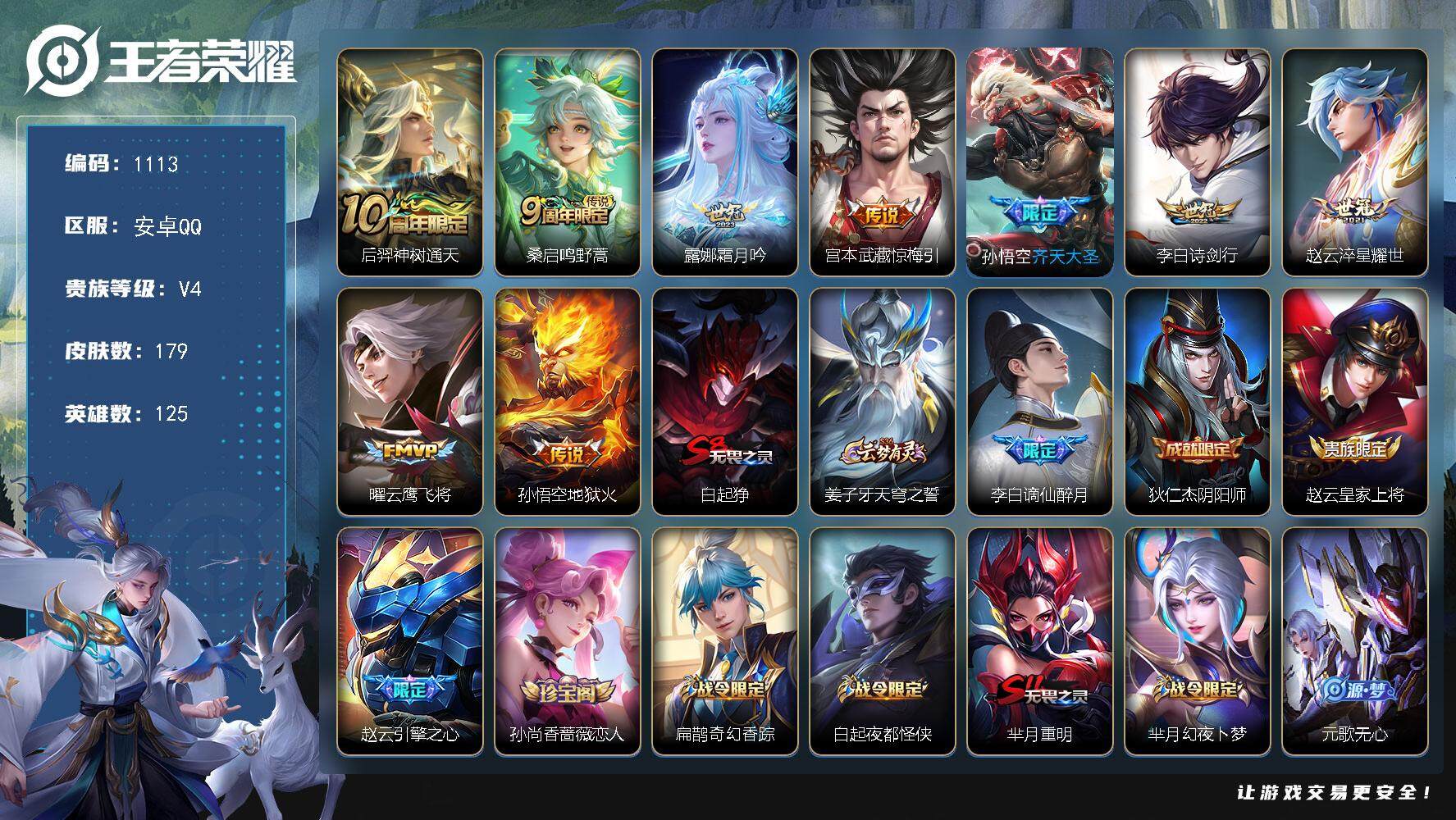 PX_2251191-【179皮9传说,霜月吟,惊梅引,诗剑行,淬星耀世,云鹰飞将】安卓Q-V4-永恒钻石V段位-125英雄-179皮肤-0典藏-0珍品无双-0无双-0珍品传说-9传说-38史诗 【英雄全皮】:影全皮 【传说皮肤】:后羿神树通天,桑启鸣野蒿,露娜霜月吟,宫本武藏惊梅引,孙悟空齐天大圣,李白诗剑行,赵云淬星耀世,曜云鹰飞将,孙悟空地狱火 【限定皮肤】:白起狰,姜子牙天穹之誓,李白谪仙醉月,狄仁杰阴阳师,赵云皇家上将,赵云引擎之心,孙尚香蔷薇恋人,扁鹊奇幻香踪,白起夜都怪侠,芈月重明,芈月幻夜卜梦,元歌无心,夏侯惇朔风刀,曹操烛龙,典韦穷奇,狄仁杰魔术师,狄仁杰万华元夜,达摩沙漠行僧,项羽海滩派对,老夫子醍醐杖,韩信逐梦之影,兰陵王金庭之子,孙悟空美猴王,孙悟空齐天大圣,牛魔御旌,李元芳云中旅人,杨戬潮玩骑兵,太乙真人饕餮,鬼谷子原初探秘者,鬼谷子五谷丰年,弈星混沌棋,沈梦溪大漠名商,明世隐疑决卦,裴擒虎李小龙,裴擒虎擒涛扼浪,狂铁御狮,米莱狄御霄,盾山御銮,鲁班大师探海日志,桑启海盐诗旅,张良古海寻踪,鬼谷子天穹祈灯,刘邦剑破天穹,程咬金群星魔术团,镜青焰无极,项羽苍威无极 【年限皮肤】:孙悟空美猴王 【赛季限定】:白起狰,芈月重明,夏侯惇朔风刀,曹操烛龙,典韦穷奇,狄仁杰万华元夜,达摩沙漠行僧,老夫子醍醐杖,兰陵王金庭之子,张良古海寻踪,牛魔御旌,李元芳云中旅人,太乙真人饕餮,鬼谷子原初探秘者,弈星混沌棋,沈梦溪大漠名商,明世隐疑决卦,裴擒虎擒涛扼浪,狂铁御狮,米莱狄御霄,盾山御銮,鲁班大师探海日志,桑启海盐诗旅,鬼谷子天穹祈灯,刘邦剑破天穹,姜子牙天穹之誓 【战令限定】:扁鹊奇幻香踪,白起夜都怪侠,芈月幻夜卜梦,杨戬潮玩骑兵,镜青焰无极,项羽苍威无极 【史诗皮肤】:赵云皇家上将,甄姬冰雪圆舞曲,王昭君偶像歌手,狄仁杰魔术师,宫本武藏鬼剑武藏,孙尚香蔷薇恋人,孙尚香水果甜心,嬴政摇滚巨星,妲己魅力维加斯,李白千年之狐,赵云引擎之心,花木兰水晶猎龙者,韩信逐梦之影,兰陵王暗隐猎兽者,亚瑟心灵战警,雅典娜冰冠公主,安琪拉心灵骇客,百里守约特工魅影,刘禅天才门将,李元芳逐浪之夏,狄仁杰鹰眼统帅,不知火舞魅语,橘右京修罗,孙尚香时之恋人,裴擒虎李小龙,沈梦溪月团寄思,貂蝉唤灵魅影,鬼谷子五谷丰年,元歌无心,扁鹊奇幻香踪,百里守约真我赫兹,莱西奥末日机甲,镜青焰无极,亚连破空之剑,李白谪仙醉月,狂铁龙之律动,公孙离涂山容容,女娲万灵启世 【其他皮肤】:项羽海滩派对,韩信教廷特使,韩信街头霸王,露娜哥特玫瑰,阿轲爱心护理,达摩大发明家,赵云白执事,赵云忍炎影,芈月红桃皇后,白起白色死神,牛魔西部大镖客,扁鹊化身博士,宫本武藏未来纪元,妲己少女阿狸,典韦黄金武士,亚瑟死亡骑士,达摩拳王,孙悟空美猴王,花木兰兔女郎,张飞五福同心,刘备万事如意,宫本武藏万象初新,后羿阿尔法小队,狄仁杰阴阳师,关羽龙腾万里,白起狰,钟无艳海滩丽影,太乙真人饕餮,宫本武藏霸王丸,曹操烛龙,王昭君幻想奇妙夜,芈月重明,狂铁命运角斗场,老夫子功夫老勺,孙尚香沉稳之力,典韦穷奇,诸葛亮掌控之力,李白敏锐之力,狂铁御狮,米莱狄御霄,牛魔御旌,小乔丁香结,吕布野性能量,盾山御銮,沈梦溪鲨炮海盗猫,夏侯惇朔风刀,弈星混沌棋,哪吒次元突破,明世隐疑决卦,老夫子醍醐杖,鬼谷子原初探秘者,狄仁杰万华元夜,刘禅秘密基地,露娜瓷语鉴心,鲁班大师乓乓大师,达摩沙漠行僧,芈月幻夜卜梦,程咬金无双福将,白起夜都怪侠,兰陵王金庭之子,沈梦溪大漠名商,李元芳云中旅人,桑启海盐诗旅,猪八戒潮玩探月行,裴擒虎擒涛扼浪,杨戬潮玩骑兵,莱西奥西部游侠,鲁班大师探海日志,张良古海寻踪,鬼谷子天穹祈灯,刘邦剑破天穹,程咬金群星魔术团,项羽苍威无极,大司命暗都幽影,姜子牙天穹之誓,孙悟空神迹守卫,东皇太一噬灭天穹,亚瑟动物派对,干将莫邪雾都夜雨,吕布逐霄战戟,苍苍林狼骑,太乙真人谧流熔炉,典韦铁骨偃魂,影魅影绮裳,姜子牙星梦巡礼,白起死霸装,甄姬逆浪荇歌,莱西奥踏浪烽翎,鬼谷子克喵,哪吒罗小黑战记,艾琳鹤鸣心笺,鲁班七号木偶奇遇记,项羽帝国元帅,露娜绯红之刃,貂蝉异域舞娘,花木兰剑舞者,王昭君精灵公主,狄仁杰锦衣卫,张良一千零一夜,孙悟空西部大镖客,周瑜海军大将,李白范海辛,李元芳特种部队,虞姬加勒比小姐,雅典娜战争女神,马可波罗激情绿茵,苍维京掠夺者,杨戬埃及法老,诸葛亮星航指挥官,黄忠芝加哥教父,干将莫邪第七人偶,鬼谷子阿摩司公爵,铠龙域领主,百里玄策威尼斯狂欢,梦奇美梦成真,公孙离花间舞,司马懿魇语军师,伽罗花见巫女,李信灼热之刃,盘古创世神祝,云中君荷鲁斯之眼,曜归虚梦演,马超幸存者,蒙犽归虚梦演,镜冰刃幻境,阿古朵熊喵少女,澜孤猎,司空震启蛰,云缨赤焰之缨,金蝉前尘,暃碧珀绯影,桑启画中游 【内测皮肤】:孙尚香蔷薇恋人 【营地ID】:1810049506