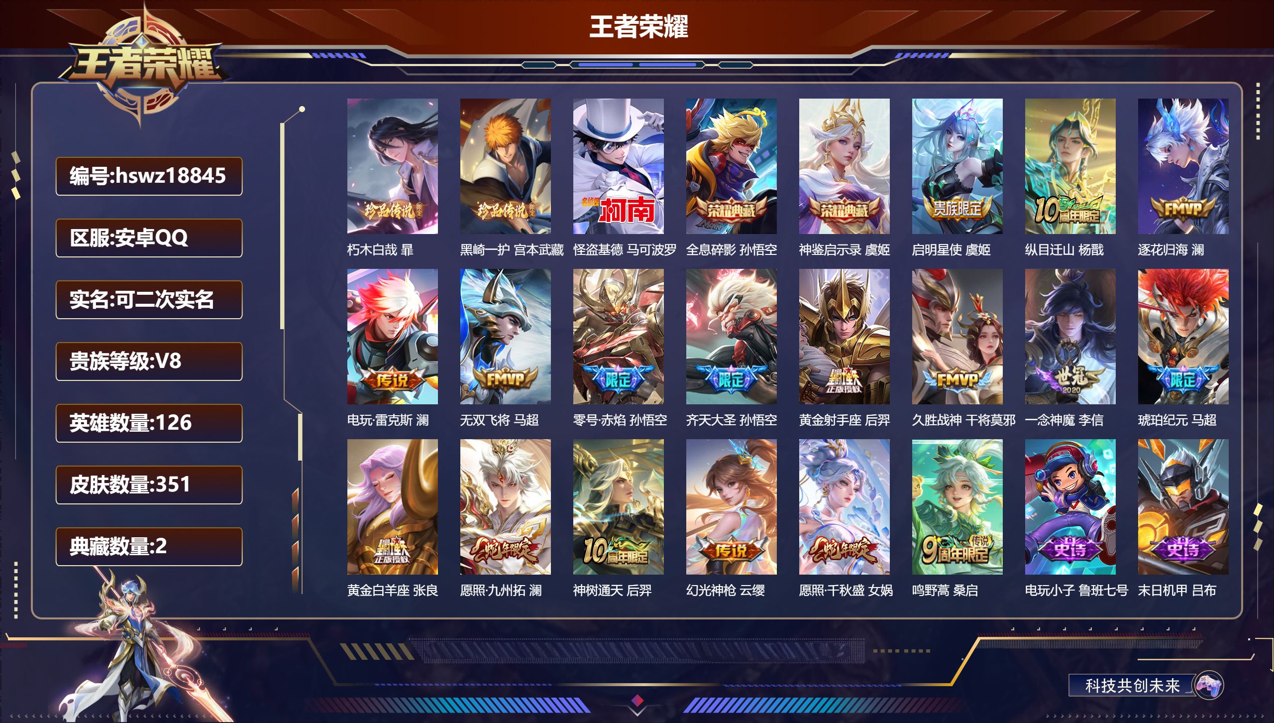PX_2306727-Q/荣耀王者/351皮肤/126英雄/2典藏/0珍品无双/0无双/3珍品传说/17传说/108史诗/8稀有英雄 【3,珍品传说】朽木白哉,暃,黑崎一护,宫本武藏,怪盗基德,马可波罗, 【2,典藏皮肤】全息碎影,孙悟空,神鉴启示录,虞姬, 【17,传说皮肤】启明星使,虞姬,纵目迁山,杨戬,逐花归海,澜,电玩·雷克斯,澜,无双飞将,马超,零号·赤焰,孙悟空,齐天大圣,孙悟空,黄金射手座,后羿,久胜战神,干将莫邪,一念神魔,李信,琥珀纪元,马超,黄金白羊座,张良,愿照·九州拓,澜,神树通天,后羿,幻光神枪,云缨,愿照·千秋盛,女娲,鸣野蒿,桑启, 【108,史诗皮肤】电玩小子,鲁班七号,末日机甲,吕布,紫霞仙子,露娜,百解令,蒙犽,高山流水,庄周,银河之约,李元芳,雪夜绮愿,周瑜,猫狗日记,大乔,妄想食味,姬小满,德古拉伯爵,刘邦,心灵战警,亚瑟,五谷丰年,鬼谷子,无心,元歌,巫礼祀神,少司缘,鬼剑武藏,宫本武藏,百相守梦,黄忠,星夜王子,白起,地狱燃心,司空震,摇滚巨星,嬴政,电玩高手,狂铁,顽趣,梦奇,百相守梦,关羽,修罗,橘右京,魅力维加斯,妲己,黄金分割率,诸葛亮,滕王阁序,弈星,偶像歌手,王昭君,荣光圣徽,蒙恬,女仆咖啡,妲己,赏金猎手,澜,猪悟能,猪八戒,舞动绿茵,蔡文姬,暗夜贵公子,嬴政,鹰眼统帅,狄仁杰,飞衡,韩信,孙行者,孙悟空,傩神司,兰陵王,李小龙,裴擒虎,光弋星穹,莱西奥,纤云弄巧,云中君,金属风暴,墨子,特工魅影,百里守约,猫狗日记,孙策,原初追逐者,百里玄策,逐浪之夏,李元芳,未来纪元,赵云,灵蛊蚀心,扁鹊,朱雀志,百里守约,雪豹·霜爪,百里守约,黎明之约,雅典娜,优雅恋人,嬴政,鸭鸭历险记,刘禅,魔术师,狄仁杰,龙之律动,狂铁,顽岩魄,蒙犽,皇家上将,赵云,冰冠公主,雅典娜,至尊宝,孙悟空,功夫厨神,程咬金,梁祝,上官婉儿,电玩·爆裂旋风,刘禅,天才门将,刘禅,圣诞恋歌,貂蝉,水晶猎龙者,花木兰,涂山容容,公孙离,破空之剑,亚连,怒海争锋,黄忠,圣诞狂欢,吕布,青焰无极,镜,魅语,不知火舞,器灵·浮梦炉,赵怀真,罗小黑战记,百里玄策,岱宗,典韦,圣诞老人,老夫子,星界战将,牛魔,永昼,夏洛特,地狱岩魂,廉颇,茶境仙,孙膑,蔷薇恋人,孙尚香,冰雪圆舞曲,甄姬,火炮绅士,黄忠,月团寄思,沈梦溪,千年之狐,李白,节奏热浪,阿轲,超时空战士,钟无艳,曙光守护者,铠,万灵启世,女娲,心灵骇客,安琪拉,箭羽风息,伽罗,乱世虎臣,张飞,百相守梦,周瑜,吟游魔法,明世隐,琥珀纪元,伽罗,万物之道,弈星,谪仙醉月,李白,绅士熊喵,刘禅,星界特工,马可波罗,缤纷独角兽,小乔,百相守梦,百里守约,真爱魔法,干将莫邪,时之恋人,孙尚香,水果甜心,孙尚香,狂想玩偶喵,蒙犽,化蝶舞,阿轲,江河有灵,阿古朵,幽灵船长,曹操,乘风破浪,夏侯惇,暗隐猎兽者,兰陵王, 【148,勇者皮肤】圆桌骑士,盾山,爱心护理,阿轲,沙漠行僧,达摩,大漠名商,沈梦溪,缤纷绘卷,张良,纽约教父,刘备,拳王,达摩,大发明家,达摩,龙舞盛年,沈梦溪,乐园追猎者,白起,丁香结,小乔,功夫炙烤,廉颇,铁甲之心,典韦,沉稳之力,孙尚香,幻夜卜梦,芈月,海盐诗旅,桑启,幻泉雾影,海月,醍醐杖,老夫子,归虚梦演,孙膑,汉昭烈帝,刘备,热血海滩,哪吒,白色死神,白起,黑桃队长,鲁班七号,黄金武士,典韦,落雪兰心,甄姬,阴阳师,狄仁杰,次元突破,哪吒,古海寻踪,张良,牛运亨通,牛魔,戏梦巡演,空空儿,功夫老勺,老夫子,西部大镖客,牛魔,鲨炮海盗猫,沈梦溪,海滩派对,项羽,完美运算,后羿,万华元夜,狄仁杰,克喵,鬼谷子,踏浪烽翎,莱西奥,演武夺筹,程咬金,红桃皇后,芈月,野性能量,吕布,哥特玫瑰,露娜,守护之力,大乔,无双福将,程咬金,原初探秘者,鬼谷子,潮玩探月行,猪八戒,天穹祈灯,鬼谷子,化身博士,扁鹊,阿尔法小队,后羿,五福同心,张飞,夜都怪侠,白起,星际陆战队,程咬金,幻乐之宴,鬼谷子,虹云星官,明世隐,潮玩牛仔,马可波罗,救世之瞳,扁鹊,死亡骑士,亚瑟,浪漫序章,刘备,敏锐之力,李白,危途狂花,戈娅,胡桃狂想曲,蒙犽,玩偶对对碰,安琪拉,掌控之力,诸葛亮,海滩丽影,钟无艳,圣弓游侠,后羿,落日弦歌,高渐离,忍·炎影,赵云,雪境奇遇,西施,炽热元素使,姜子牙,坚韧之力,苏烈,唤灵魔甲,刘禅,万事如意,刘备,擒涛扼浪,裴擒虎,乓乓大师,鲁班大师,探海日志,鲁班大师,天使之翼,孙膑,雾都夜雨,干将莫邪,兔女郎,花木兰,龙腾万里,关羽,流音漫舞,艾琳,金庭之子,兰陵王,未来纪元,宫本武藏,罗小黑战记,哪吒,千军破阵,苏烈,往忆晖光,明世隐,荣光之誓,亚瑟,花好人间,甄姬,万象初新,宫本武藏,聚星闪耀,钟无艳,潮玩造梦师,刘备,时尚教父,姜子牙,春野之旅,钟无艳,秘密基地,刘禅,教廷特使,韩信,黑猫爱糖果,李元芳,街头霸王,韩信,云中旅人,李元芳,妄想特派,李元芳,西部大镖客,孙悟空,紫罗兰之誓,妲己,重装意志,盘古,进击墨子号,墨子,蔬乡物语,李元芳,少女阿狸,妲己,蔚蓝守将,蒙恬,春野闲踪,苏烈,契约魔法,米莱狄,布丁狗之约,阿古朵,命运加冕,露娜,午后时光,王昭君,小满鸭,姬小满,灵野札记,张良,驱傩正仪,钟馗,潮玩士官长,雅典娜,神迹守卫,钟馗,鸭鸭历险记,沈梦溪,命运角斗场,狂铁,死霸装,白起,特工战影,狂铁,虚灵犬护,钟馗,漠中幻影,嫦娥,白执事,赵云,劲辣红锅,太乙真人,神迹守卫,孙悟空,剑破天穹,刘邦,苍威无极,项羽,铁骨偃魂,典韦,熔金海岸,周瑜,苍林狼骑,苍,天穹之誓,姜子牙,魅影绮裳,影,访茗客,马超,星梦巡礼,姜子牙,破阵·退雄兵,杨戬,谧流熔炉,太乙真人,群星魔术团,程咬金,暗都幽影,大司命,鹤鸣心笺,艾琳,