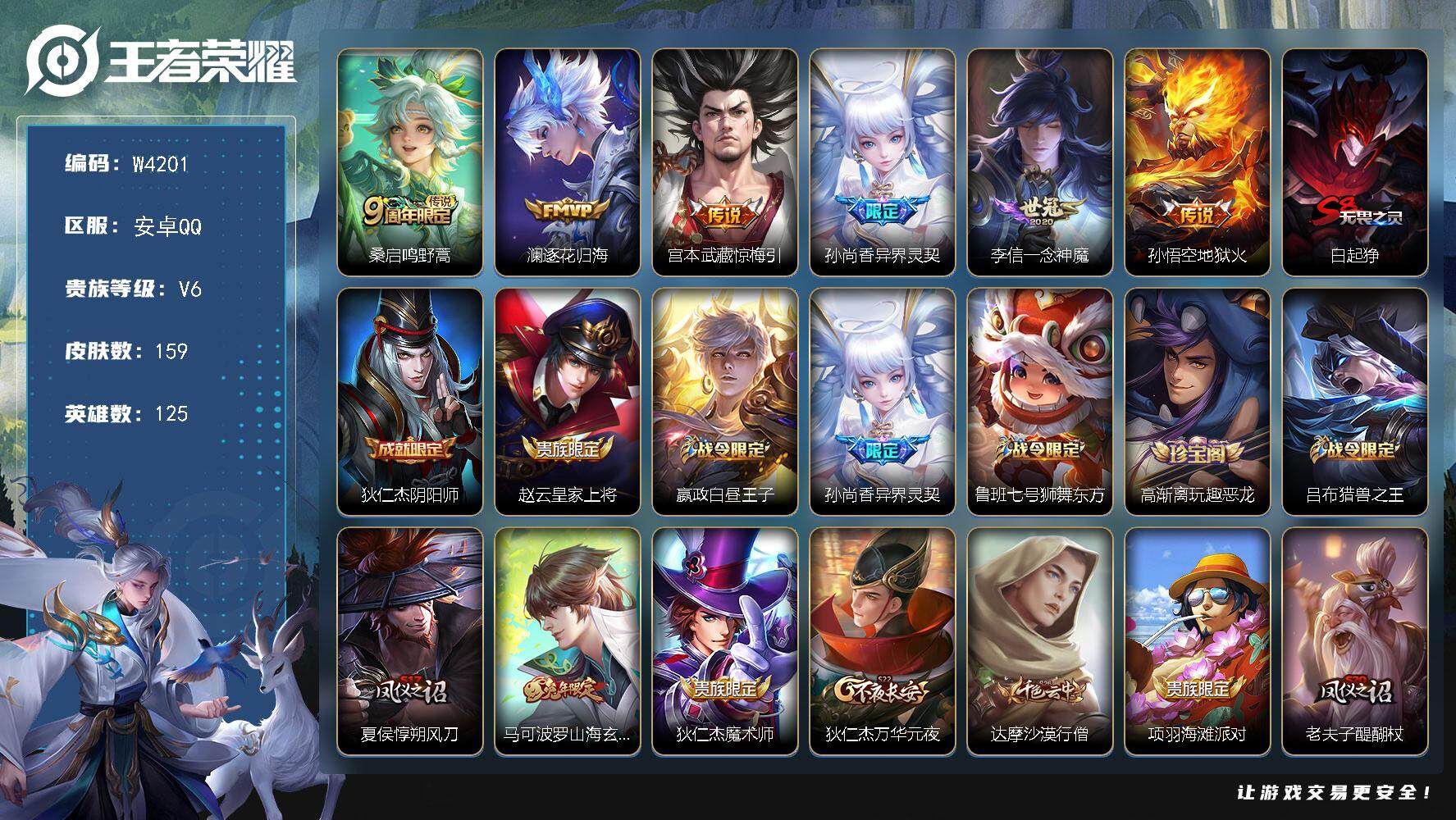 PX_2306688-【W4201】【亮点:3.9k低场次开局号】营地ID:475539566【热门:异界灵契,逐花归海,辉光之辰,孙行者】安卓q-无二次-贵-125英雄-159皮肤-6传说-51限定-5按键-贵族积分1.4w