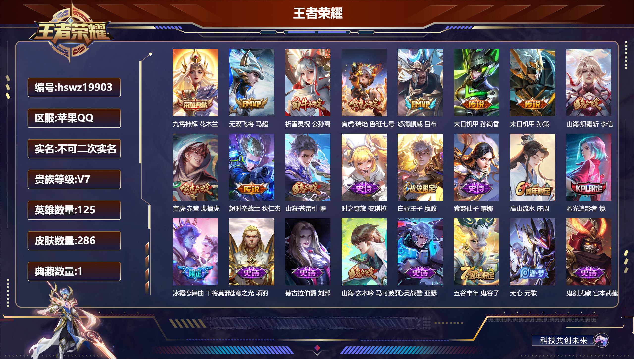 PX_2304812-Q/绝世王者/286皮肤/125英雄/1典藏/0珍品无双/0无双/0珍品传说/10传说/75史诗/7稀有英雄 【1,典藏皮肤】九霄神辉,花木兰, 【10,传说皮肤】无双飞将,马超,祈雪灵祝,公孙离,寅虎·瑞焰,鲁班七号,怒海麟威,吕布,末日机甲,孙尚香,末日机甲,孙策,山海·炽霜斩,李信,寅虎·赤拳,裴擒虎,超时空战士,狄仁杰,山海·苍雷引,曜, 【75,史诗皮肤】时之奇旅,安琪拉,白昼王子,嬴政,紫霞仙子,露娜,高山流水,庄周,匿光追影者,镜,冰霜恋舞曲,干将莫邪,苍穹之光,项羽,德古拉伯爵,刘邦,山海·玄木吟,马可波罗,心灵战警,亚瑟,五谷丰年,鬼谷子,无心,元歌,鬼剑武藏,宫本武藏,星夜王子,白起,地狱燃心,司空震,摇滚巨星,嬴政,顽趣,梦奇,修罗,橘右京,拒霜思,嫦娥,魅力维加斯,妲己,黄金分割率,诸葛亮,偶像歌手,王昭君,荣光圣徽,蒙恬,星界游侠,暃,晚萤,娜可露露,猪悟能,猪八戒,繁星吟游,蔡文姬,鹰眼统帅,狄仁杰,胡桃异想国,米莱狄,孙行者,孙悟空,李小龙,裴擒虎,纤云弄巧,云中君,金属风暴,墨子,逐梦之影,韩信,傲雪梅枪,韩信,特工魅影,百里守约,原初追逐者,百里玄策,逐浪之夏,李元芳,引擎之心,赵云,黎明之约,雅典娜,石田雨龙,后羿,优雅恋人,嬴政,魔术师,狄仁杰,皇家上将,赵云,至尊宝,孙悟空,辉光之辰,后羿,功夫厨神,程咬金,梁祝,上官婉儿,电玩·爆裂旋风,刘禅,天才门将,刘禅,圣诞恋歌,貂蝉,云间偶戏,元歌,水晶猎龙者,花木兰,一生所爱,露娜,圣诞狂欢,吕布,白龙吟,韩信,天狼溯光者,伽罗,地狱岩魂,廉颇,冰雪圆舞曲,甄姬,火炮绅士,黄忠,航海奇遇记,老夫子,千年之狐,李白,节奏热浪,阿轲,游园惊梦,甄姬,青龙志,铠,乱世虎臣,张飞,绅士熊喵,刘禅,缤纷独角兽,小乔,蓝屏警告,典韦,真爱魔法,干将莫邪,水果甜心,孙尚香,狂想玩偶喵,蒙犽,江河有灵,阿古朵,乘风破浪,夏侯惇,暗隐猎兽者,兰陵王, 【136,勇者皮肤】圆桌骑士,盾山,烛龙,曹操,爱心护理,阿轲,太极少年,赵怀真,星际陆战队,达摩,沙漠行僧,达摩,大漠名商,沈梦溪,缤纷绘卷,张良,纽约教父,刘备,拳王,达摩,大发明家,达摩,龙舞盛年,沈梦溪,乐园追猎者,白起,丁香结,小乔,功夫炙烤,廉颇,铁甲之心,典韦,沉稳之力,孙尚香,幻夜卜梦,芈月,爱与正义,程咬金,海盐诗旅,桑启,幻泉雾影,海月,朔风刀,夏侯惇,醍醐杖,老夫子,朔望之晖,女娲,归虚梦演,孙膑,汉昭烈帝,刘备,白色死神,白起,黑桃队长,鲁班七号,黄金武士,典韦,御旌,牛魔,阴阳师,狄仁杰,炼金王,扁鹊,次元突破,哪吒,古海寻踪,张良,牛运亨通,牛魔,科学大爆炸,项羽,功夫老勺,老夫子,西部大镖客,牛魔,鲨炮海盗猫,沈梦溪,虎啸剑宗,刘邦,海滩派对,项羽,完美运算,后羿,万华元夜,狄仁杰,制霸全明星,牛魔,演武夺筹,程咬金,红桃皇后,芈月,奇妙博物学,庄周,西部游侠,莱西奥,蜃楼王,庄周,猎兽之王,吕布,野性能量,吕布,哥特玫瑰,露娜,守护之力,大乔,无双福将,程咬金,瓷语鉴心,露娜,原初探秘者,鬼谷子,潮玩探月行,猪八戒,鸿运当头,亚瑟,天穹祈灯,鬼谷子,疑决卦,明世隐,化身博士,扁鹊,潮玩骑士王,亚瑟,五福同心,张飞,金色潮汐,朵莉亚,次元傲视,杨戬,星际陆战队,程咬金,幻乐之宴,鬼谷子,霸王丸,宫本武藏,虹云星官,明世隐,潮玩牛仔,马可波罗,救世之瞳,扁鹊,死亡骑士,亚瑟,敏锐之力,李白,危途狂花,戈娅,幽兰居士,张良,玩偶对对碰,安琪拉,掌控之力,诸葛亮,海滩丽影,钟无艳,圣弓游侠,后羿,忍·炎影,赵云,狰,白起,重明,芈月,炽热元素使,姜子牙,坚韧之力,苏烈,唤灵魔甲,刘禅,万事如意,刘备,擒涛扼浪,裴擒虎,乓乓大师,鲁班大师,妖精王,孙膑,探海日志,鲁班大师,天使之翼,孙膑,玩趣恶龙,高渐离,兔女郎,花木兰,龙腾万里,关羽,流音漫舞,艾琳,金庭之子,兰陵王,千军破阵,苏烈,零食大作战,姬小满,荣光之誓,亚瑟,花好人间,甄姬,万象初新,宫本武藏,聚星闪耀,钟无艳,潮玩造梦师,刘备,御銮,盾山,单词大作战,雅典娜,时尚教父,姜子牙,秘密基地,刘禅,穷奇,典韦,教廷特使,韩信,黑猫爱糖果,李元芳,街头霸王,韩信,云中旅人,李元芳,妄想特派,李元芳,西部大镖客,孙悟空,紫罗兰之誓,妲己,神迹守卫,墨子,重装意志,盘古,凯尔特女王,虞姬,进击墨子号,墨子,少女阿狸,妲己,混沌棋,弈星,御霄,米莱狄,蔚蓝守将,蒙恬,暖冬·兔眠,嫦娥,幻想奇妙夜,王昭君,驱傩正仪,钟馗,特工战影,狂铁,御狮,狂铁,漠中幻影,嫦娥,白执事,赵云,饕餮,太乙真人,劲辣红锅,太乙真人,星梦巡礼,姜子牙,经纬探寻者,盘古,暗都幽影,大司命,云械蓝图,云中君, 【65,其他皮肤】前尘,金蝉,战争骑士,夏侯惇,圣殿之光,刘邦,芝加哥教父,黄忠,潮流仙人,老夫子,三太子,哪吒,棒球奇才,沈梦溪,生化警戒,钟无艳,死神来了,曹操,花见巫女,伽罗,爱与和平,苏烈,第七人偶,干将莫邪,万圣前夜,小乔,灼热之刃,李信,熊喵少女,阿古朵,海之征途,孙策,木偶奇遇记,鲁班七号,福禄兄弟,鲁班七号,精灵王,后羿,冰刃幻境,镜,碧珀绯影,暃,海军大将,周瑜,星航指挥官,诸葛亮,魇语军师,司马懿,午夜歌剧院,元歌,启蛰,司空震,隐刃,兰陵王,霓裳曲,杨玉环,花间舞,公孙离,异域舞娘,貂蝉,街头旋风,裴擒虎,归虚梦演,鲁班大师,东海龙王,东皇太一,修竹墨客,上官婉儿,剑舞者,花木兰,维京掠夺者,苍,归虚梦演,蒙犽,激情绿茵,马可波罗,埃及法老,杨戬,归虚梦演,西施,阿摩司公爵,鬼谷子,画中游,桑启,年年有余,猪八戒,尼罗河女神,女娲,锦衣卫,狄仁杰,归虚梦演,曜,威尼斯狂欢,百里玄策,幸存者,马超,战争
