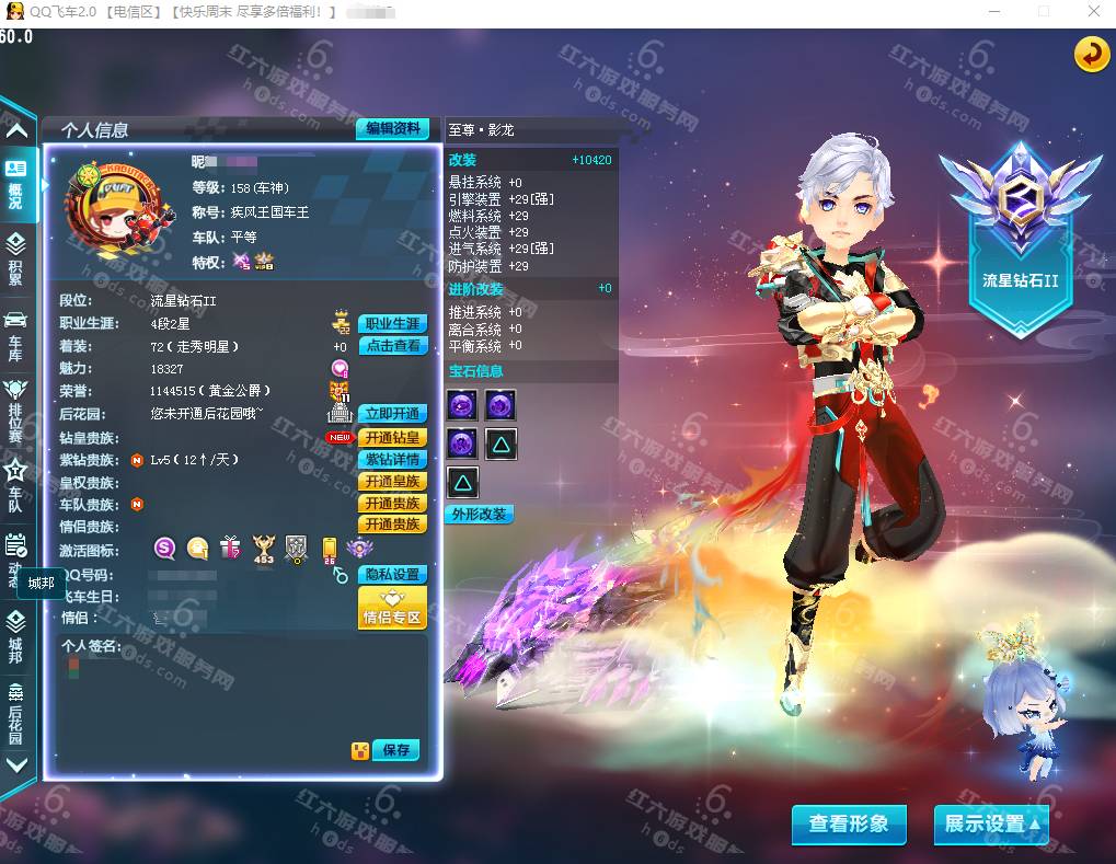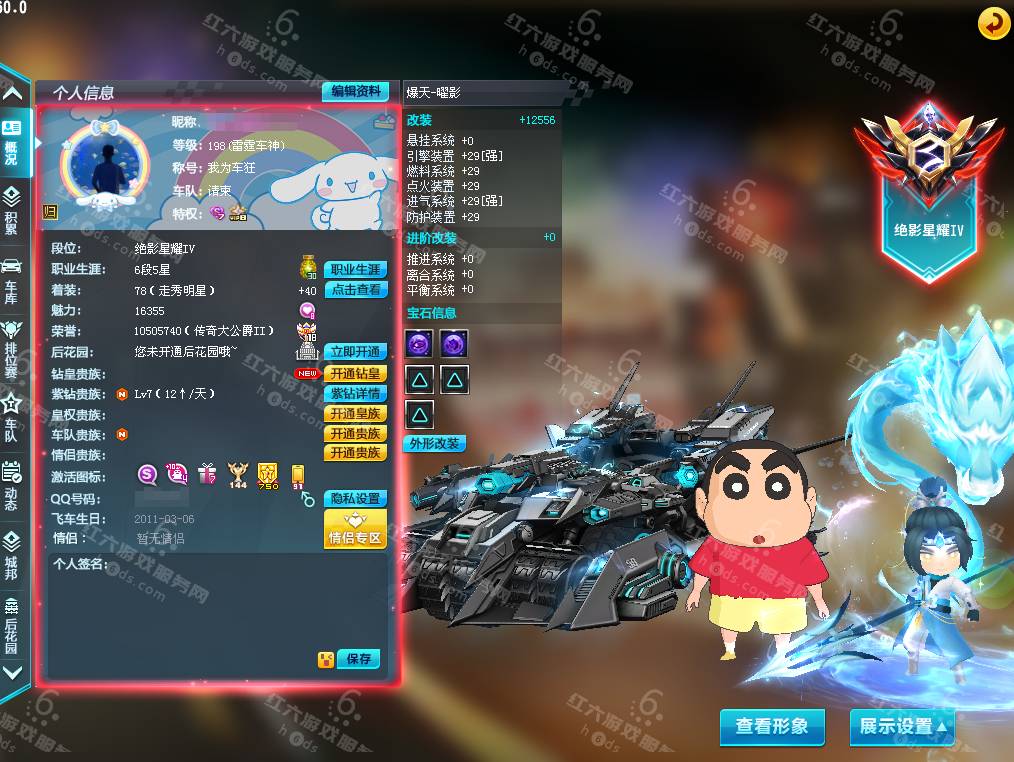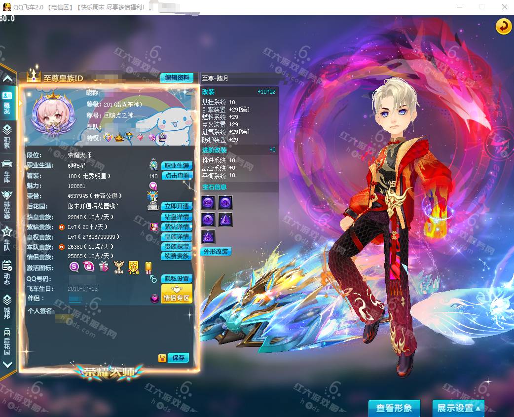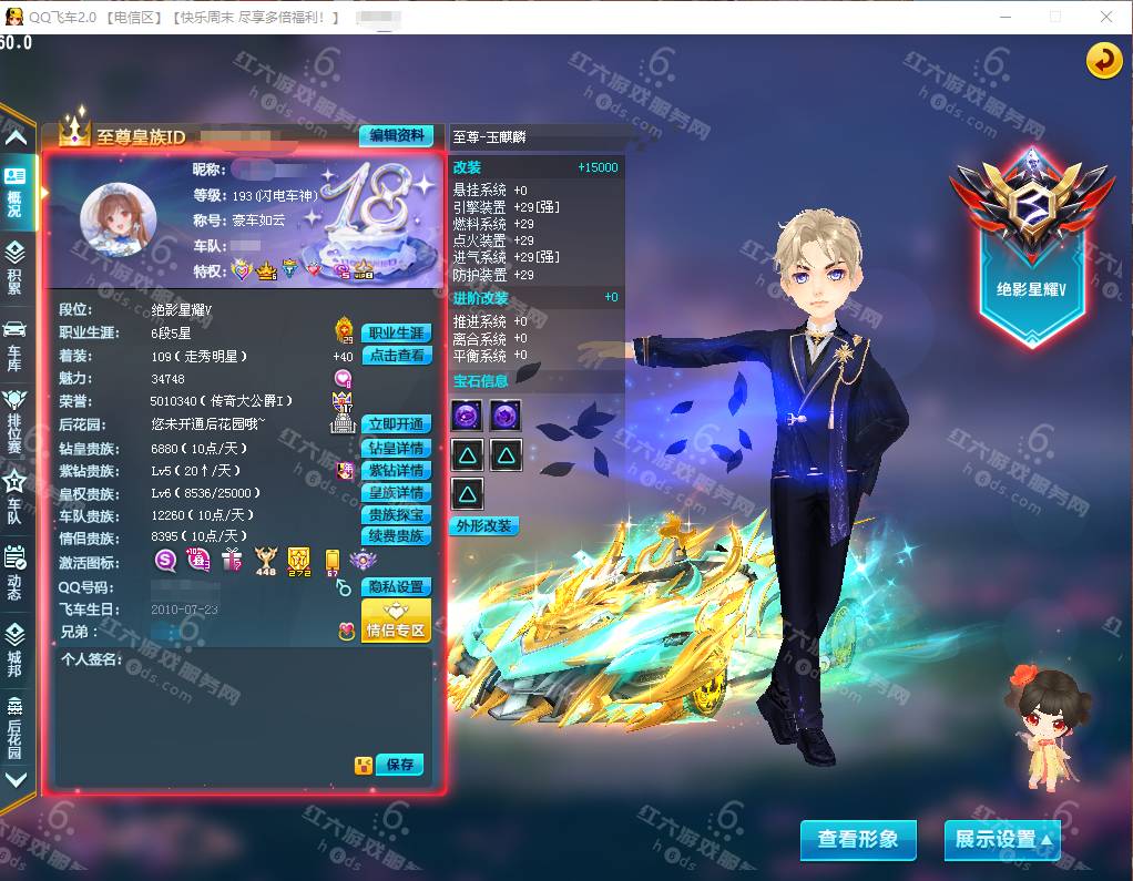 F16235,红六更号裙762771576【电信一区】红六自营,超核玩家,魅力6w,荣誉450w,紫7皇6,10S车:双四至尊火麒麟/玉麒麟+29,三四至尊影龙/烛龙+29,暴风雪/极光2级+29,暴风雪/remake+29,双四智慧之神/kitty+29,雷神之怒,风之使者,海神之刺,龙胆逆鳞,暗影龙骑,至尊王者剃刀,1T2,3页a车:双四应龙驭风+29,双四雷诺/幻梦/幻夜+29,三页骑宠:仙兽麒麟+10,小貂蝉+10,白金神兽+8,男套装20页:絮声如初/昼宇星辰/璀璨星芒/宫宴黑玫/星海祈愿/铃兰蝶舞/悠悠鹿灵/空谷幽兰/烛龙弄焰/幻雪夕光/星海祈愿发饰/金玉良缘发饰,38页女套装:悠悠鹿灵/铃兰蝶舞/棱彩织梦/天籁之声/烛龙弄焰/空谷幽兰/沧海龙吟/云沐时迁/青黛花戏/苍穹麒麟,12300R
